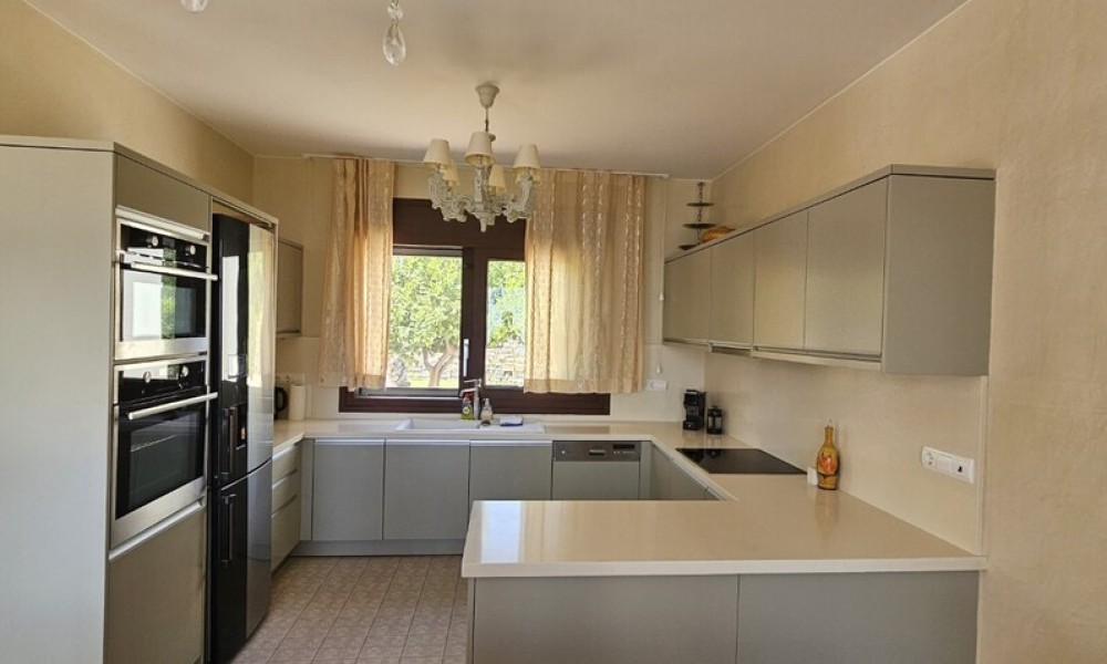 1st floor consists of 2 bedrooms, 2 bathrooms, one storeroom. A magnificent view of the sea, the mountain opens up from the windows. There are: air conditioning, awnings, a barbecue area. The owners will be leaving the furniture with the sale. There is an alarm system installed. Extras included with the property: parking space, garden. The property boasts a swimming pool of private use.