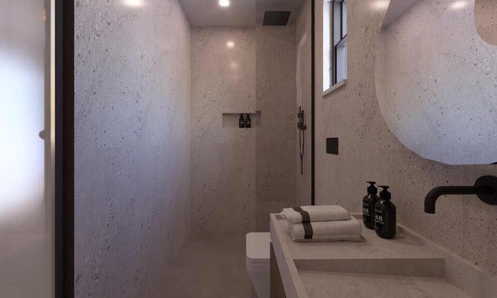 Ground floor consists of one bedroom, living room with kitchen, one shower WC.