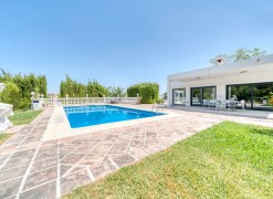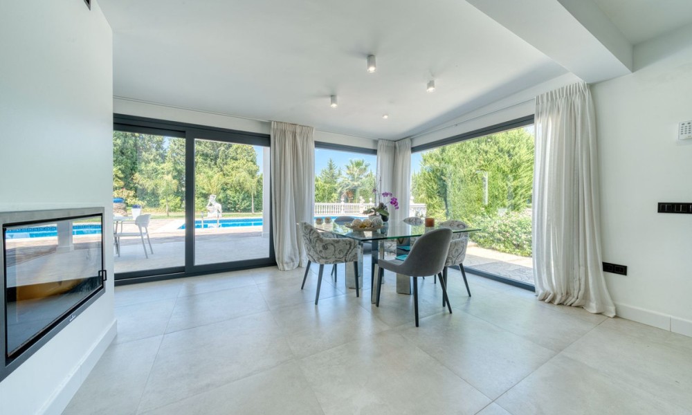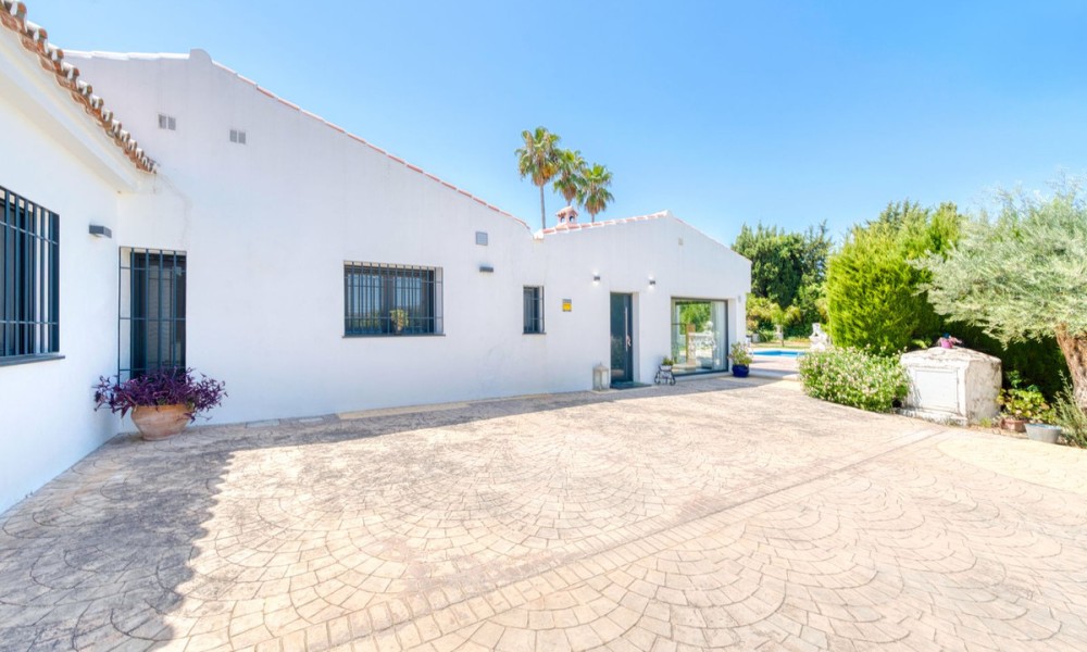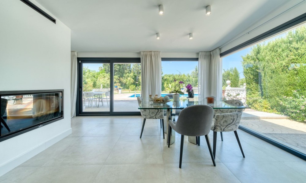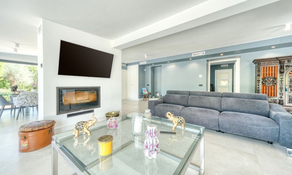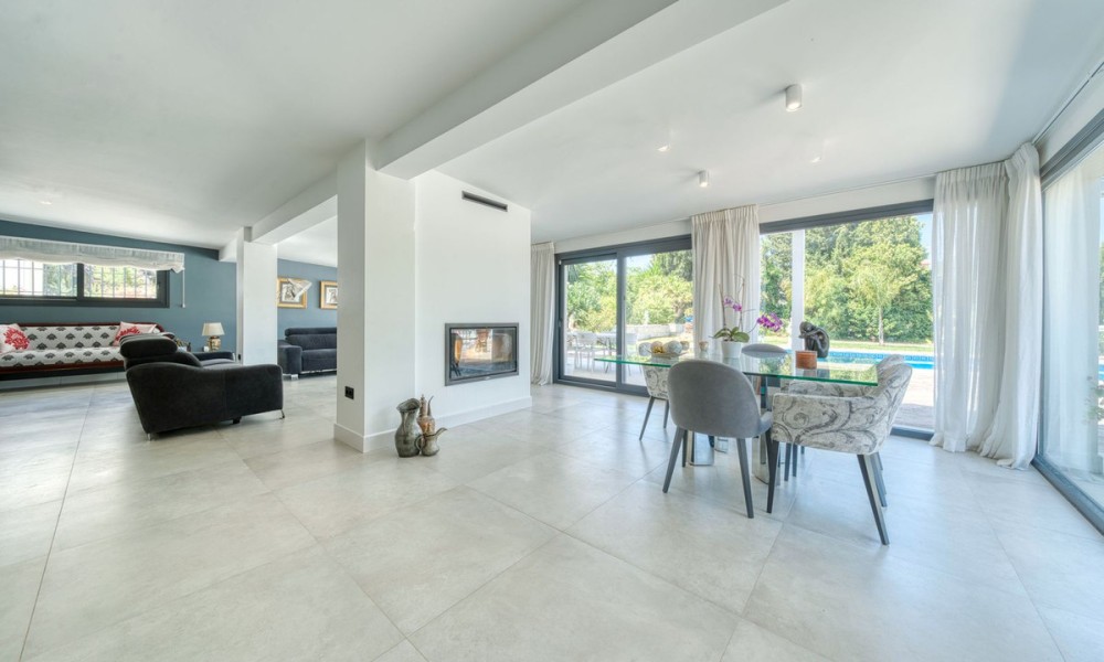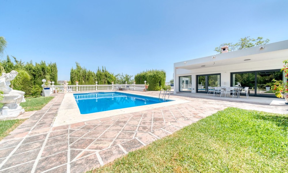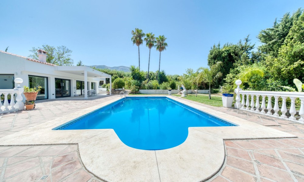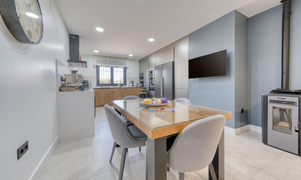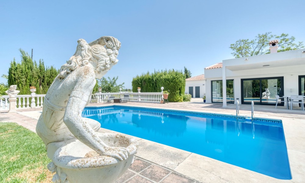 Stylish Countryside Villa with Expansive Flat Plot and Guest House Potential | Alhaurín el GrandeThis elegant single-level villa blends modern interiors with timeless Andalusian character. Set on a completely flat 4,500 square metre plot surrounded by mature gardens, it offers the perfect setting for relaxed indoor-outdoor living in total privacy. Inside, the spacious living area is filled with natural light and features a striking central fireplace. Floor-to-ceiling windows open directly onto a covered terrace, perfect for evening entertaining or quiet mornings with panoramic views. The fully equipped kitchen is generous in size, while all four bedrooms are beautifully finished. Two offer en suite bathrooms, and all are fitted with high-quality materials throughout.