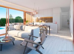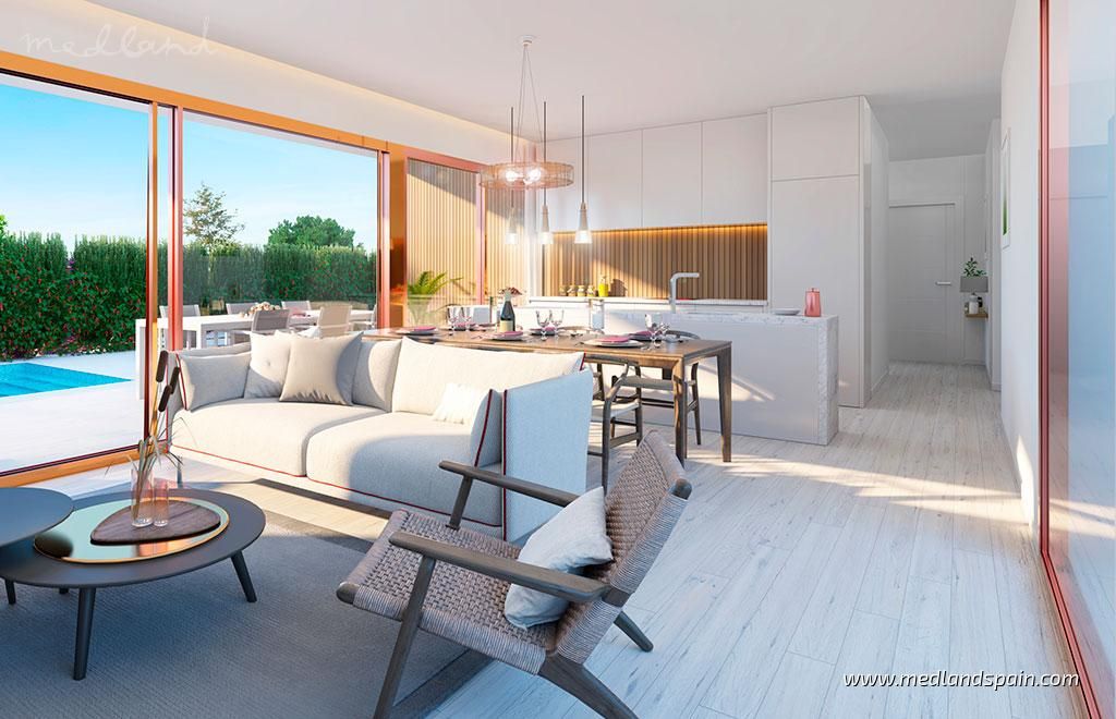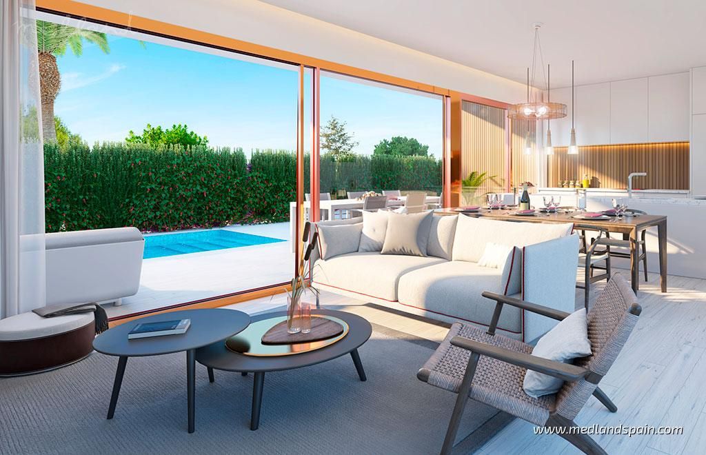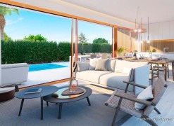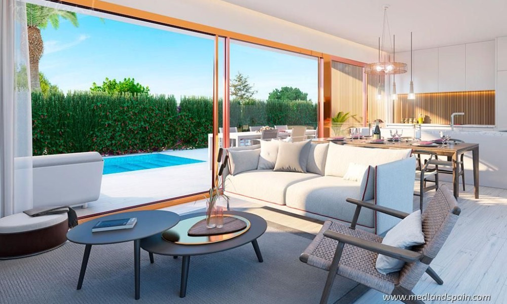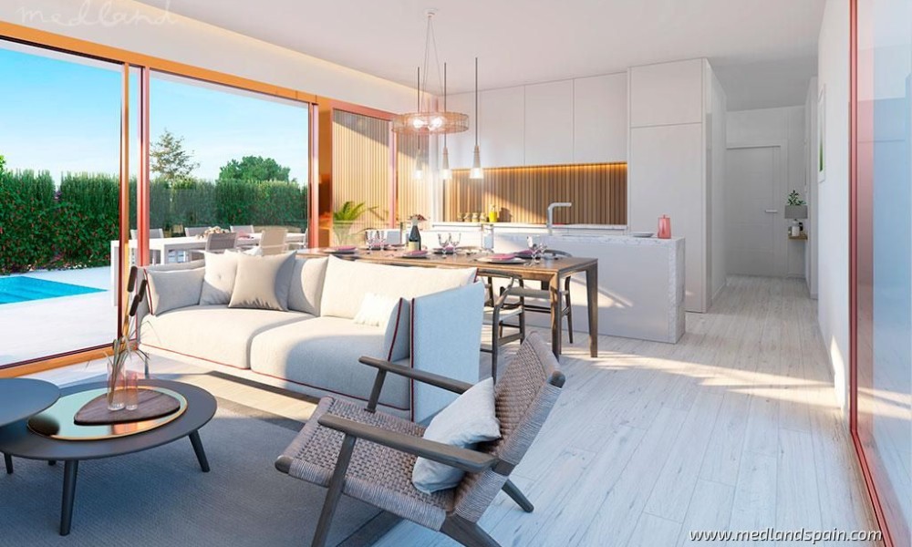 The main living area combines the lounge, dining area and kitchen, which opens a spacious terrace and garden area. All the master bedrooms have an en-suite bathroom.The villas are built with quality materials and include pre-installation for ducted A/C, fitted wardrobes, and parking on the premises. For an additional cost, it is possible to build a private pool.