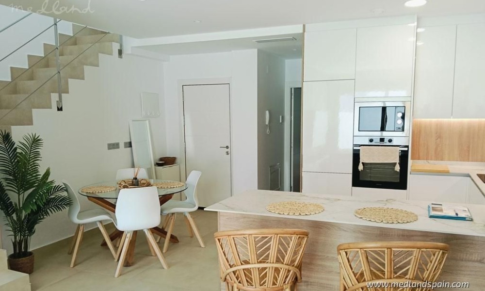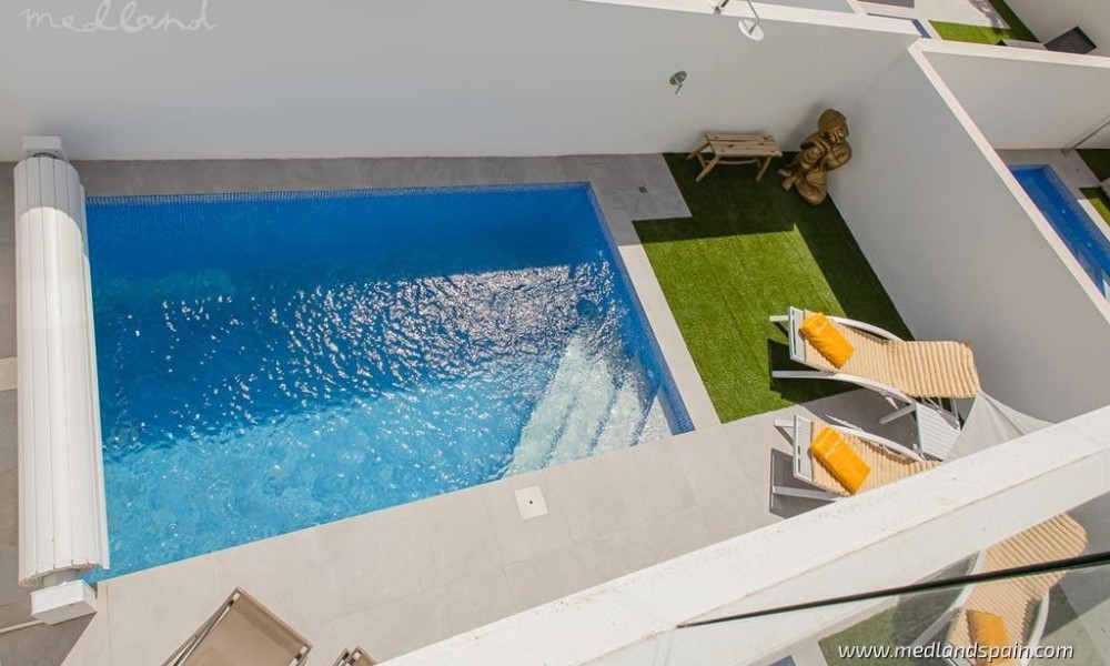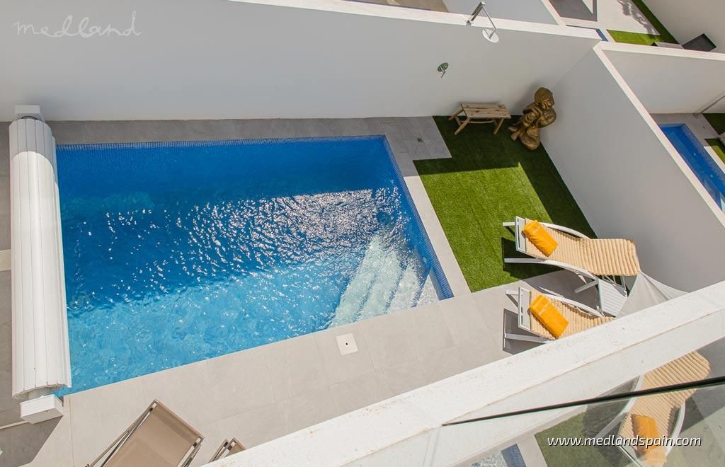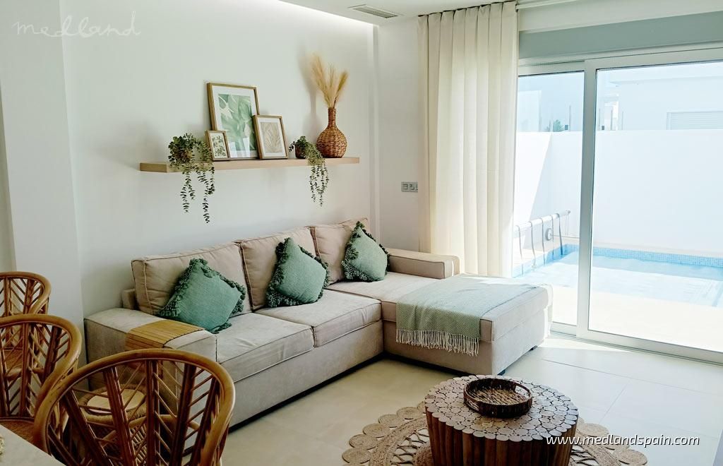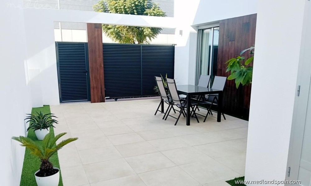 Modern villas with a private pool in San Fulgencio, on the Costa Blanca South. The town is less than 15 minutes away from the beaches of Guardamar, and is an ideal place for those who appreciate a peaceful environment, surrounded by cultivated fields, without giving up on all the services of a big city. There is range of services available in San Fulgencio, like schools, supermarkets, pharmacies, a large residential area called “La Marina”, as well as an excellent selection of leisure activities. The cities of Santa Pola, Guardamar and Torrevieja are between 15 and 25 minutes by car, while Alicante International Airport is only 35 minutes away.