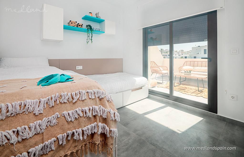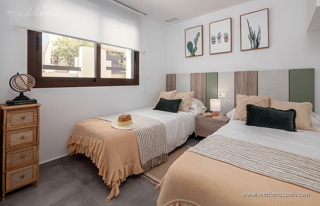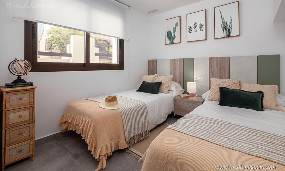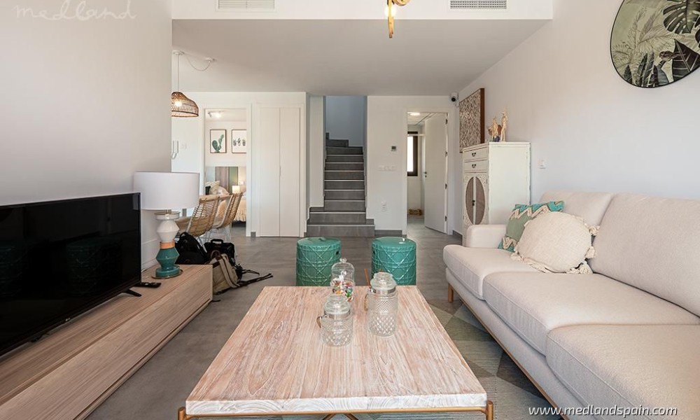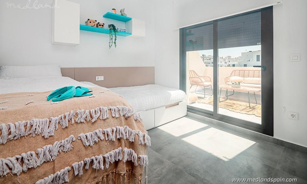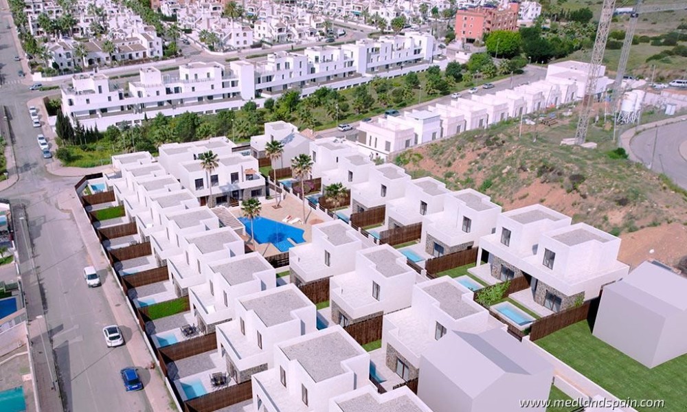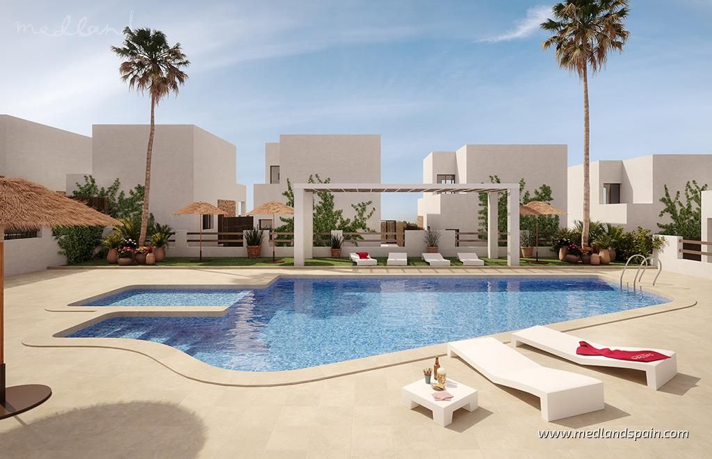 Residential complex in the popular Villamartín area on the Costa Blanca South. Very close to the Villamartín Golf Course, as well as the Villamartín Plaza, with a selection of bars and restaurants. The impressive La Zenia Boulevard shopping centre is a short drive from the complex, while the magnificent beaches of Playa Flamenca and La Zenia are only 15 minutes away by car.The complex has been designed with a Mediterranean feel and includes a communal area with a large pool and relax area, for all residents to enjoy. The project comprises detached villas on two floors, with 3 bedrooms and 2 bathrooms, with a choice of 1 or 2 bedrooms on the ground floor; and semi-detached villas on two floors, with 2 bedrooms and 2 bathrooms.