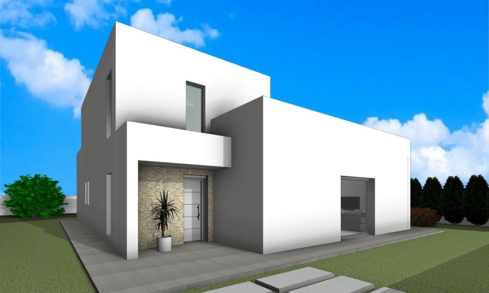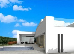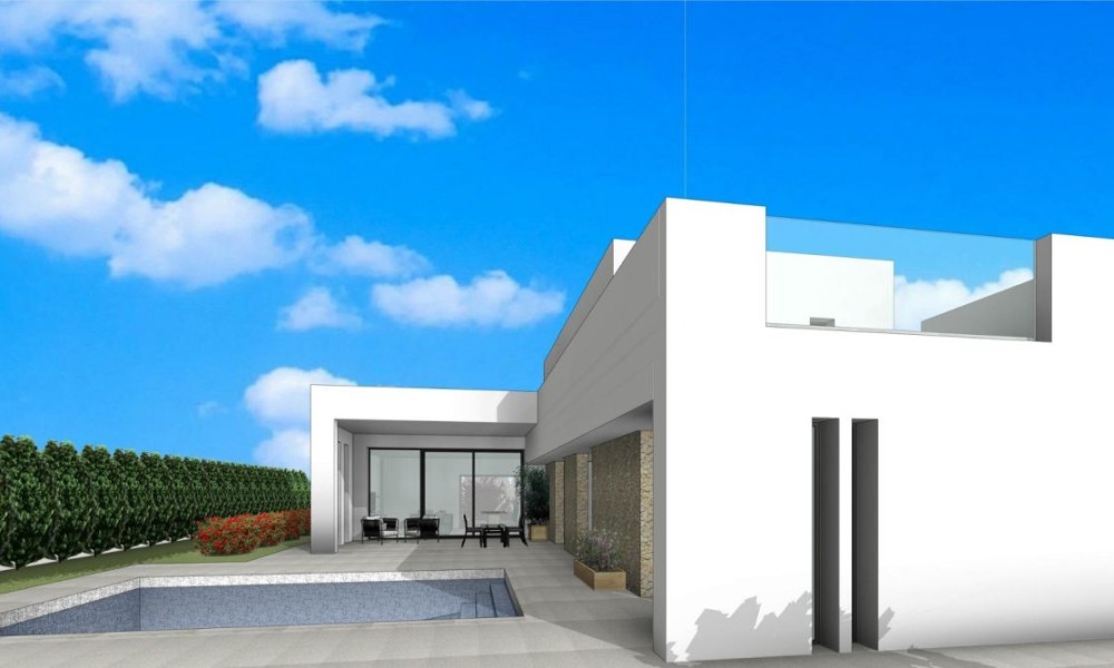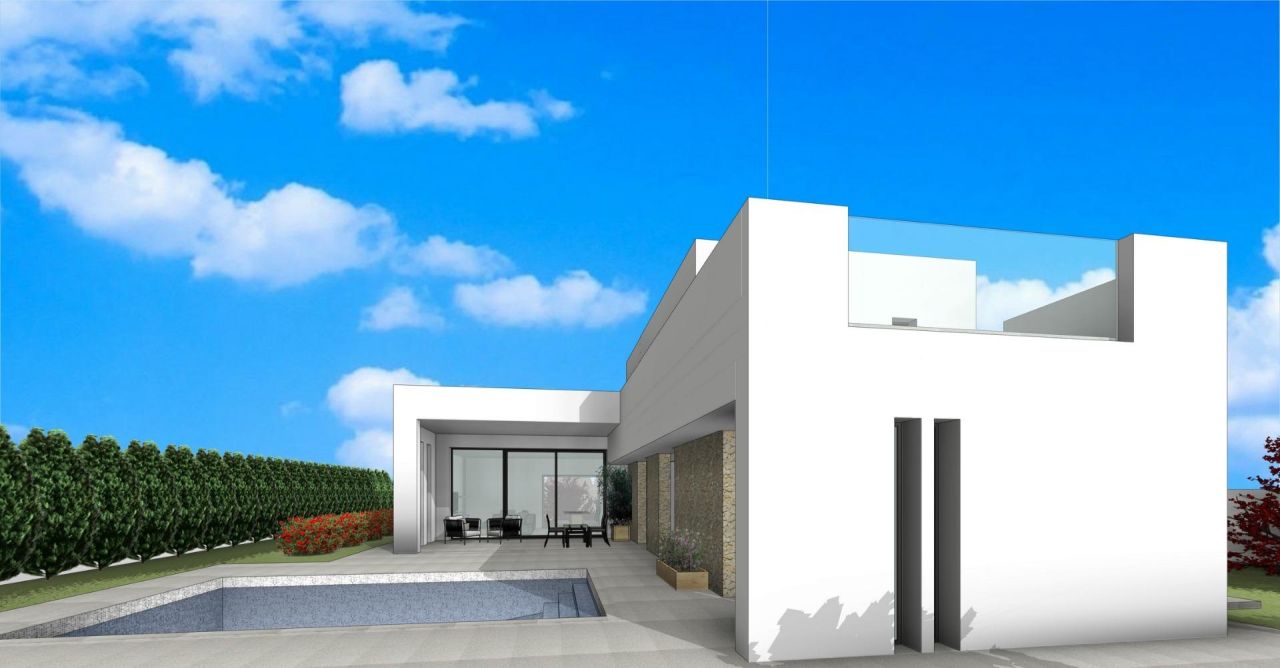 NEW BUILD VILLAS IN PINOSO Luxury new build villas in Pinoso (Alicante) with different layouts on 1 or 2 floors and 3 or 4 bedrooms, where you can enjoy idyllic views of the mountains, enjoy the sun and the tranquillity of the area. The villas will be built on rustic plots of 10.959 m2, of which about 2.000 m2 will be fenced, with all its water supplies, electricity, installation of a set of photovoltaic panels for self-consumption of electricity and waste water purification system by means of biological oxidation treatment plant. It will have top quality finishes and a very extensive luxury quality specifications. Equipped with 8x4m swimming pool with saline chlorinator, tiled pool perimeter, landscaped area with gravel, automatic motorised access gate to the plot (motor included). The homes will have pre-installation of air conditioning with hot and cold machine included, water aerothermal system, night areas with motorised blinds, built-in wardrobes finished and lacquered in white, porcelain tiling, pre-installation of fireplace in the living room, bathrooms fully finished with all their components and accessories of the highest quality and armoured door. Emphasize the quality of construction of the house for its insulation with thermo-clay bricks, plasterboard with rock wool, single-layer facade, windows with thermal bridge, aluminium shutters and Glass-Sun glass.