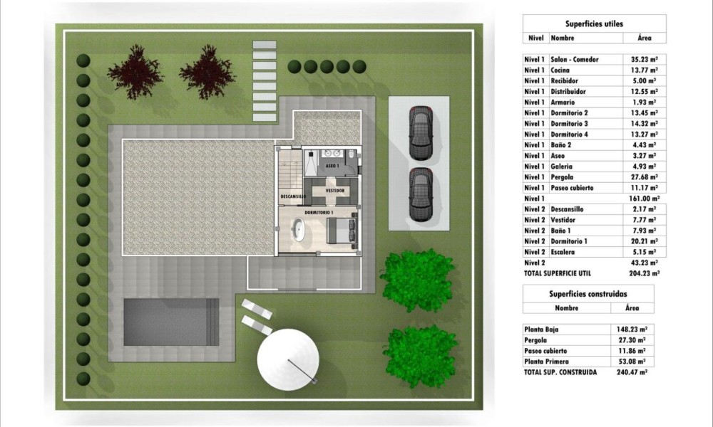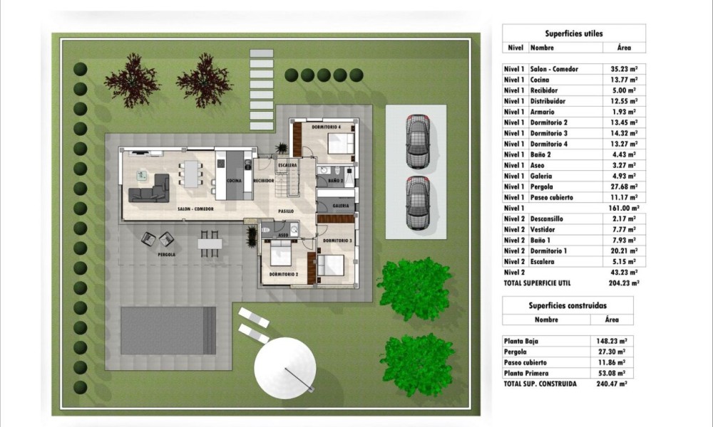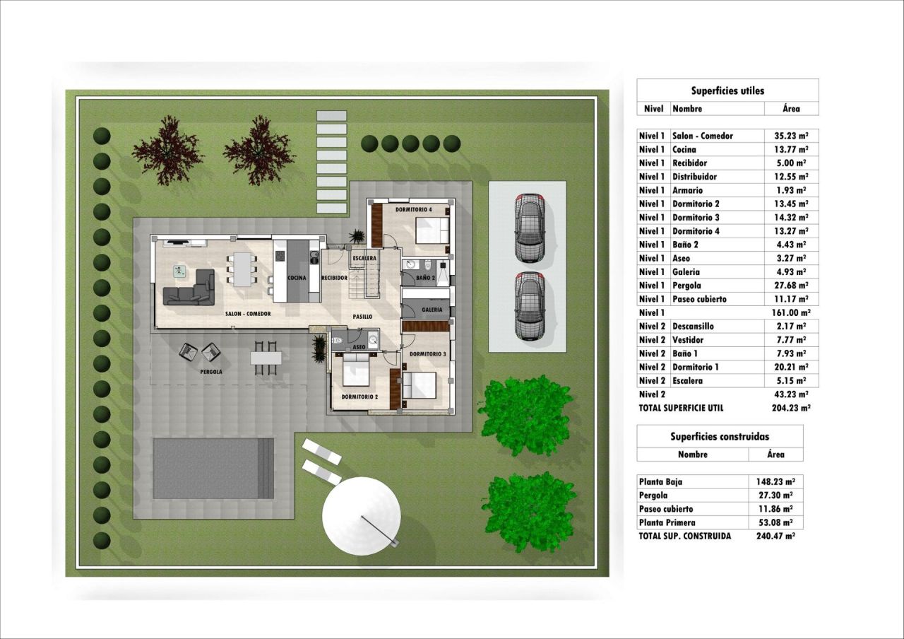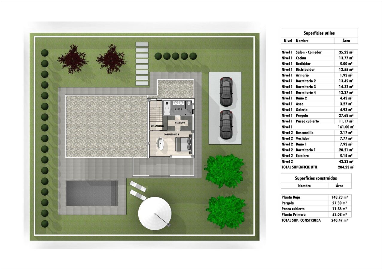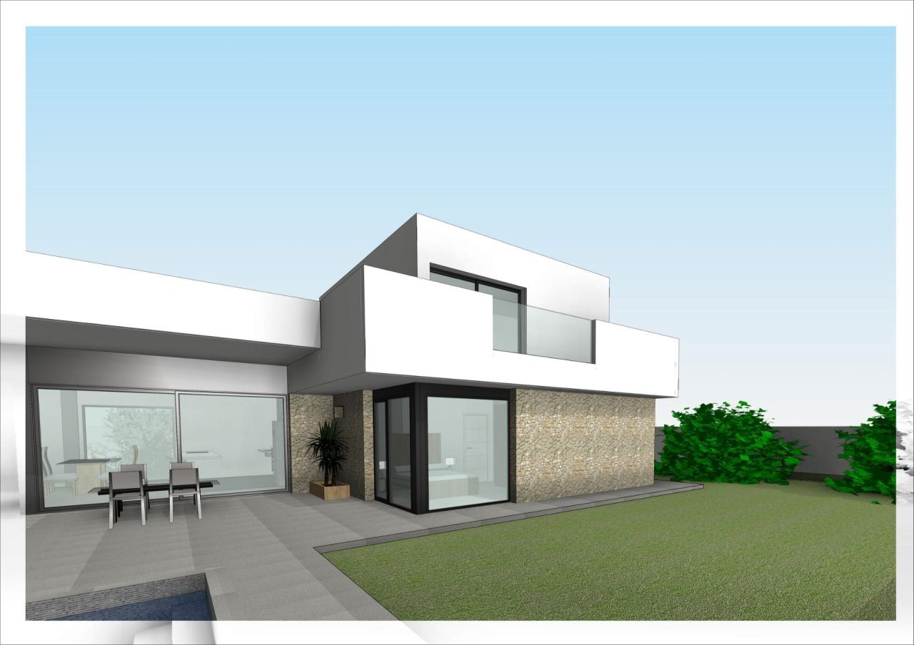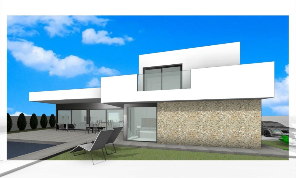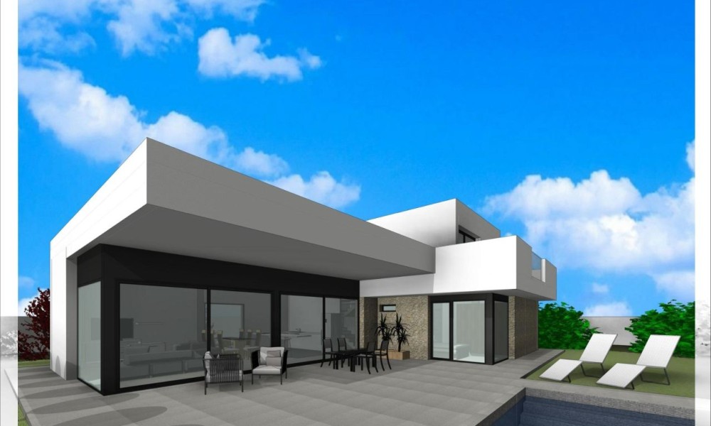 NEW BUILD 4 BEDROOM VILLA ON 2 FLOORS IN PINOSO~~New build luxury villas in Pinoso (Alicante) with different layouts in 1 or 2 floors and 3 or 4 bedrooms, where you will be able to enjoy idyllic views to the mountains, enjoy the sun and the tranquillity of the area.~~This villa consists of 2 floors, on the second floor there are 3 bedrooms, 1 bathroom, 1 toilet, kitchen-living-dining room, garden and private pool. On the second floor, the master bedroom with en-suite bathroom, dressing room and terrace.~~The villas will be built on rustic plots of 10.959 m2, of which about 2.000 m2 will be fenced, with all its water supplies, electricity, installation of a set of photovoltaic panels for self-consumption of electricity and waste water purification system by means of biological oxidation treatment plant. ~~It will have top quality finishes and a very extensive luxury quality specifications.~~Equipped with 8x4m swimming pool with saline chlorinator, tiled pool perimeter, landscaped area with gravel, automatic motorised access gate to the plot (motor included). ~~The homes will have pre-installation of air conditioning with hot and cold machine included, water aerothermal system, night areas with motorised blinds, built-in wardrobes finished and lacquered in white, porcelain tiling, pre-installation of fireplace in the living room, bathrooms fully finished with all their components and accessories of the highest quality and armoured door.