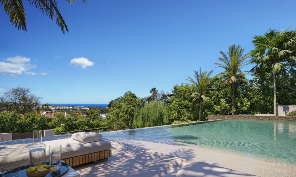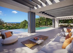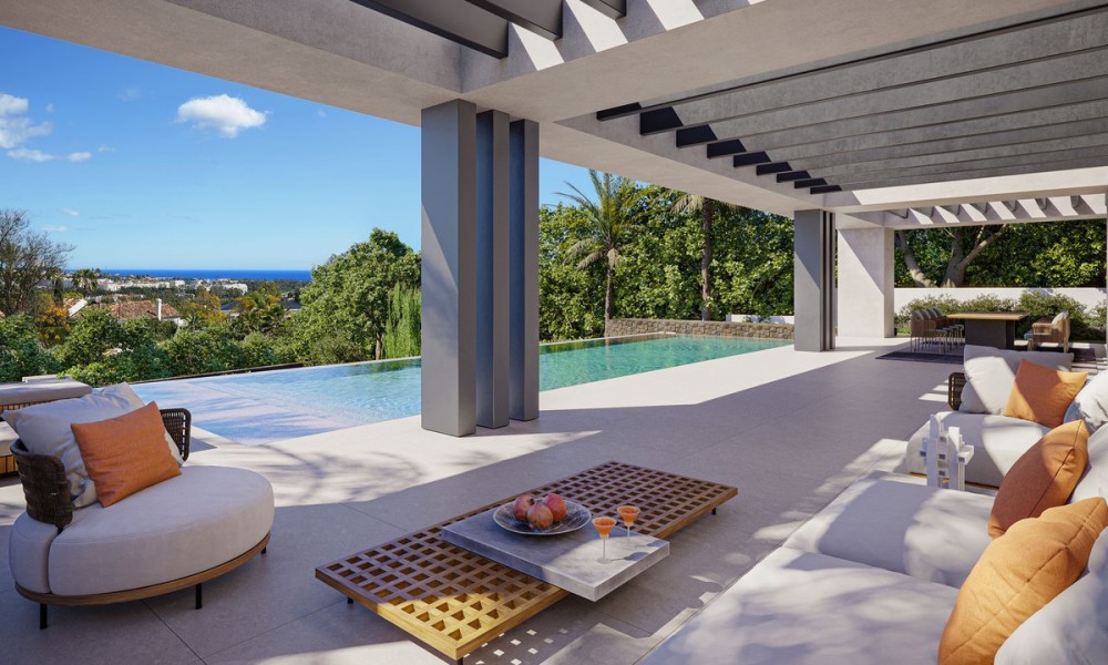 Enormous five bedroom detached villa located in the sought after gated area of La Quinta. The villa offers fantastic sea views, built over three levels with the first floor having two guest en-suite bedrooms and a fantastic master en-suite, each bedroom having access to a beautiful sunny terrace from where you can enjoy the sea views. The basement level offers a private gym, home cinema, laundry room, machine room and a private garage for multiple vehicles. The ground floor has a large open plan luxury kitchen, a fabulous living/dining area that leads out to stunning terrace, landscaped gardens and a one of a kind 17 metre long infinity pool.