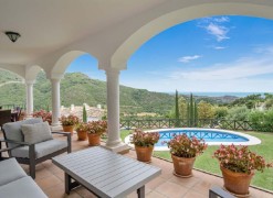 This beautiful villa is located in the gated community in Benahavis surrounded by nature which provides a lot of tranquility and quietness to the property. The property is distributed in three levels with excellent panoramic sea and mountain views. You enter the villa on the main floor with an open plan reception hall followed up by a spacious open plan living room, dining area and kitchen with a lot of natural light. The fully equipped kitchen was just renovated 3 years ago and also has a separate dining area. Alongside this open living area you will find 2 bedrooms sharing 1 bathroom.