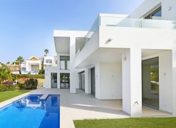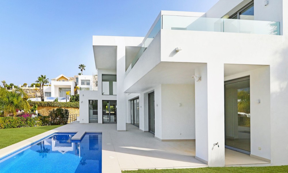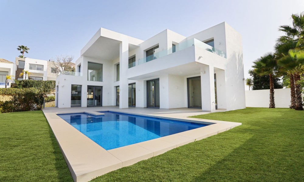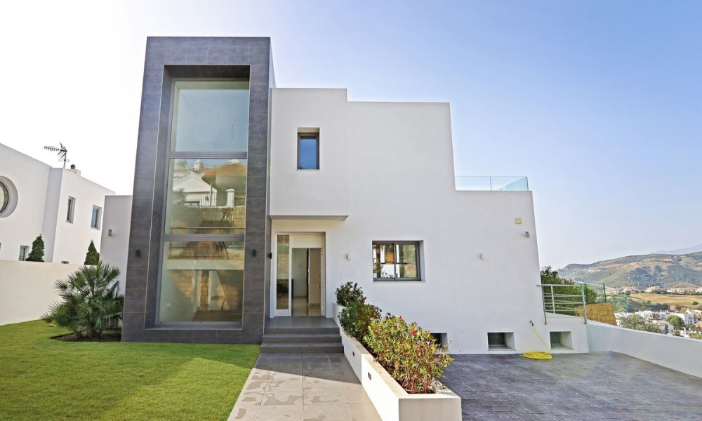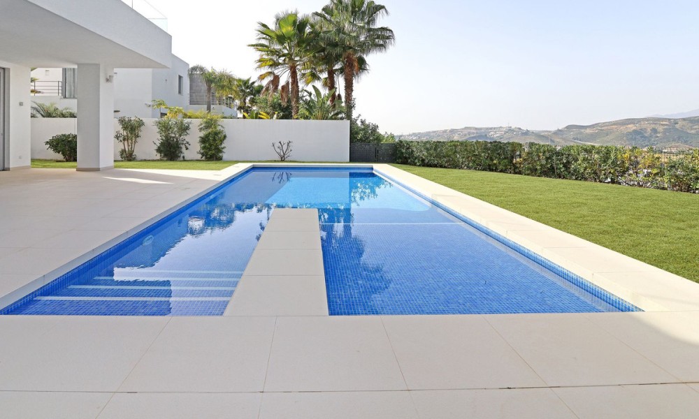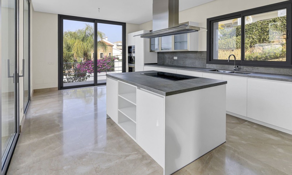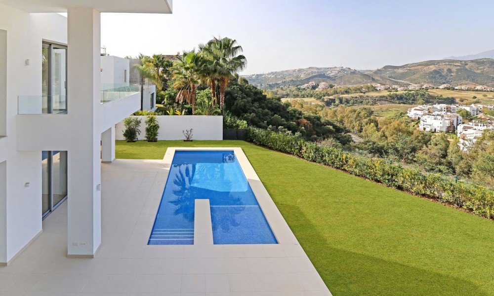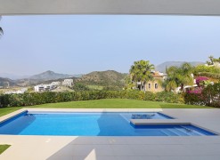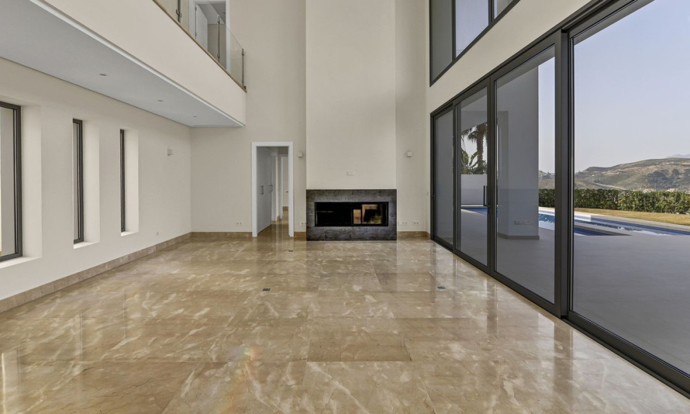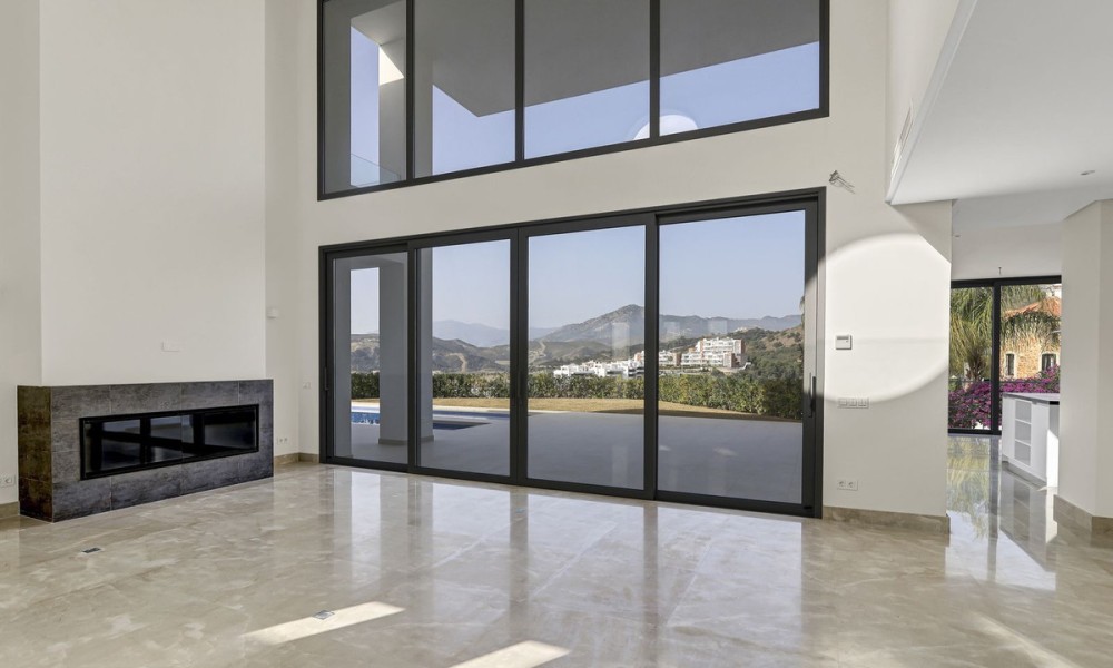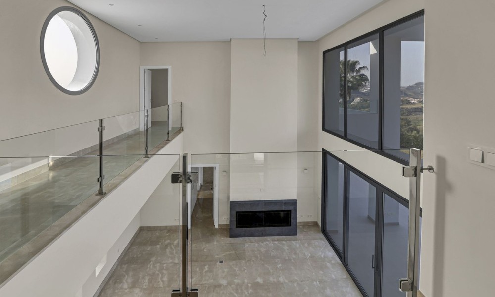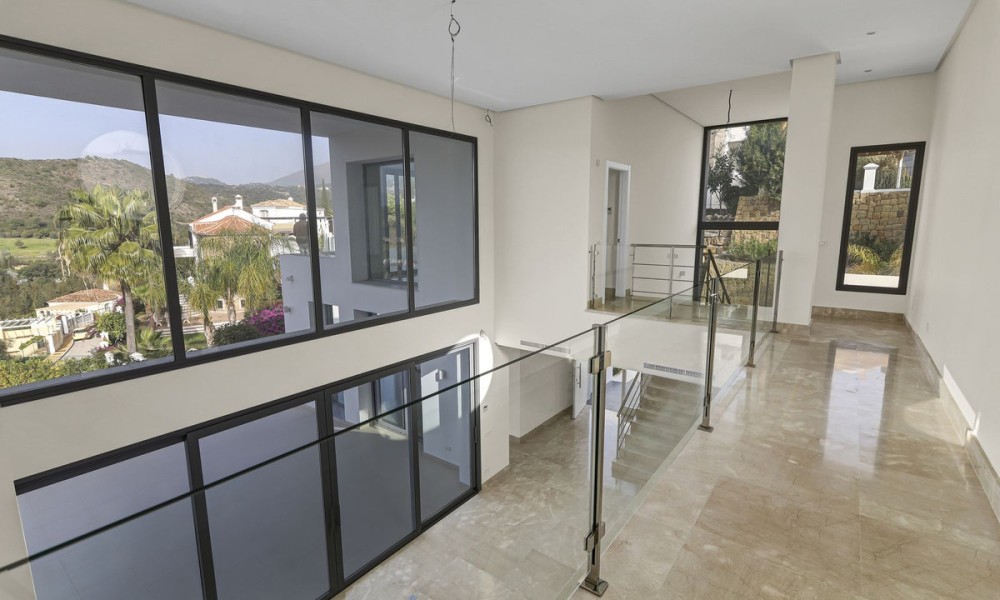 Stunning new-built masterpiece in Benahavis . Nestled in a gated community, this 5-bedroom gem offers a Southwest to west facing orientation, enjoy the sun’s warm embrace all day long. Prepare to be captivated by the breathtaking views of majestic mountains and sparkling glimpses of the serene sea.On the main floor, and you’ll be greeted by an expansive living and dining area, high ceilings and a cozy fireplace, creating a perfect ambiance for relaxation and entertainment. With direct access to the meticulously landscaped garden and inviting pool area, you can seamlessly blend indoor and outdoor living.Fully fitted kitchen, equipped with top-of-the-line Bosch appliances, ensuring that every meal prepared is a culinary delight. On this floor, two elegantly designed guest bedrooms share a well-appointed bathroom, while a convenient guest toilet adds an extra touch of luxury.First floor, where the epitome of comfort awaits.