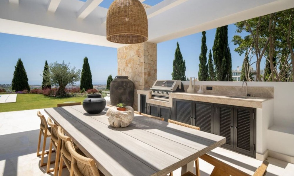Stunning new-build villa by the esteemed architect and interior design firm GC Studio. Sitting on a generous elevated plot, offers to residents an exclusive and sophisticated lifestyle.The property lies on a plot boasting stunning landscaping and manicured gardens. A private pool adds to the allure of the outdoor space, as well as the numerous chill-out areas. Residents can also enjoy an outdoor kitchenette with a BBQ, ideal for entertaining guests or simply enjoy a meal outdoors.The property is dotted with plenty of floor to ceiling windows, ensuring that plenty of natural light will flood the interior spaces. The interior design is impeccable, displaying the finest collection for furniture and decorations. The interiors have been designed to maximise modern comfort, whilst remaining aesthetic and functional.