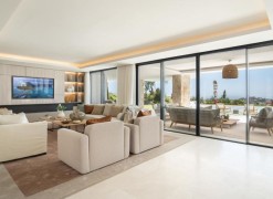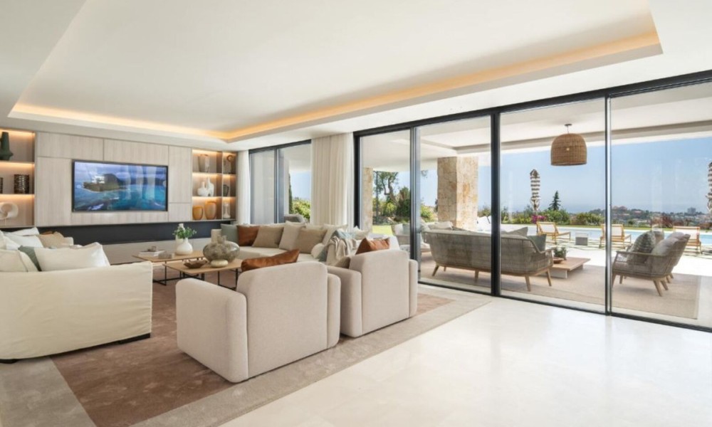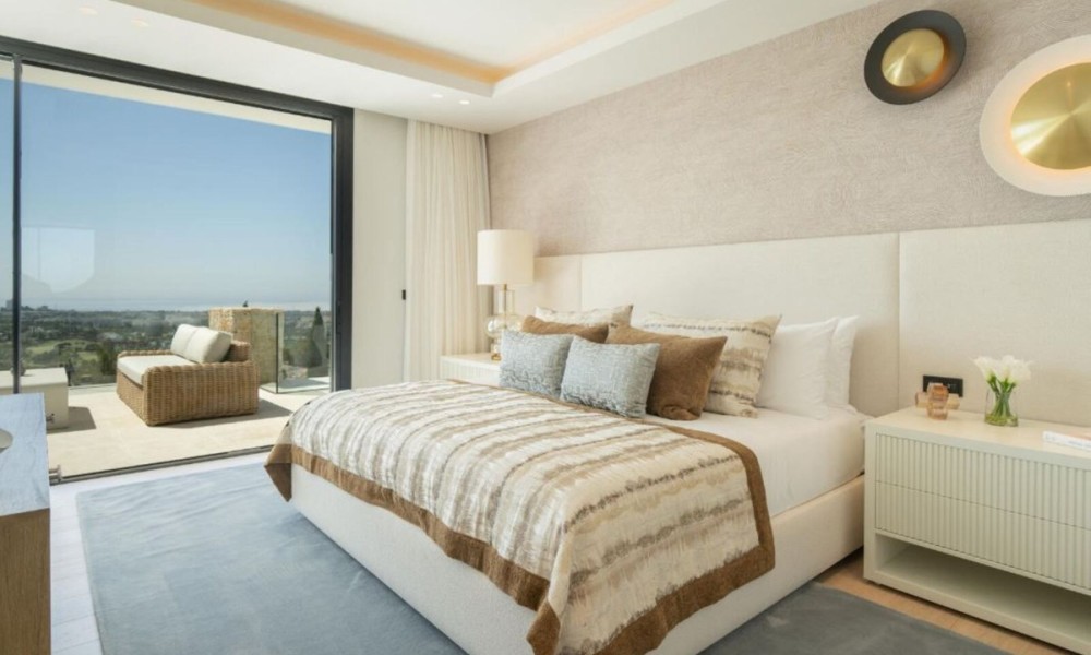 The living and dining areas are seamlessly connected to the modern kitchen. The kitchen boasts a stunning kitchen island and plenty of storage space, ensuring the kitchen is the ideal space for cooking and entertaining.Villa boasts stunningly appointed bedrooms, with the master bedroom stealing the spotlight. The master bedroom is an ideal private oasis, exuding comfort and style. The bedroom is connected to a private terrace that sports panoramic views of the surrounding area and Mediterranean sea.Lavish array of amenities, including a fully equipped home gym, a cinema room and a SPA with a sauna and indoor pool, allowing residents to enjoy luxurious 5-star amenities in the comfort of their own home.