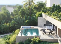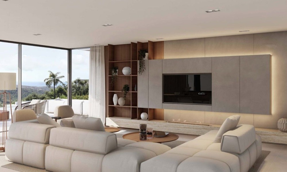 Perched in one of the most scenic locations within Monte Mayor Valley, this contemporary turnkey luxury villa seamlessly integrates with its lush hillside surroundings in a prestigious residential community. Designed with elegance and functionality in mind, the villa offers a harmonious blend of modern architecture and natural beauty.Spanning three levels, the property features three en-suite bedrooms, a guest cloakroom on the main level, and an additional restroom by the pool. The upper floor provides space for a gym, a covered terrace, and an outdoor kitchen, while the garage, located at the top of the villa, accommodates two cars with additional outdoor parking available. High ceilings and floor-to-ceiling windows flood the interiors with natural light, enhancing the sense of spaciousness and creating a seamless connection with the breathtaking landscape.The open-plan kitchen and bathrooms are fully equipped, and underfloor heating is installed throughout the entire home, ensuring year-round comfort.