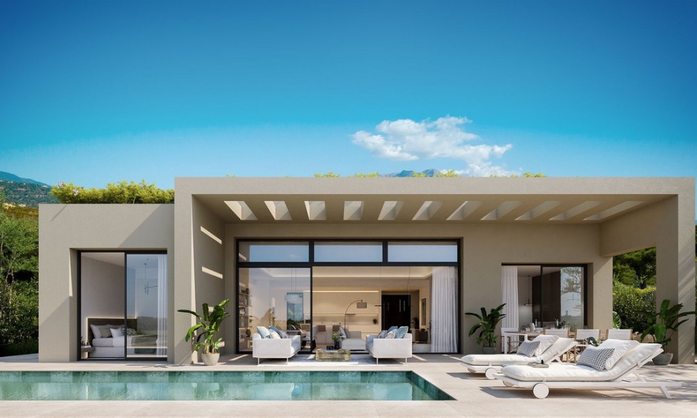 Brand new contemporary villa designed to elevate coastal living, Villa 133 is a stunning new-build property set for completion in early 2026. Spread over two expansive levels, it offers five luxurious bedroom suites and a spacious open-plan layout enhanced by 3.8-meter-high ceilings and uninterrupted sea views.The main floor features a light-filled living area, a fully equipped modern kitchen, and a guest WC. Two en-suite bedrooms on this level enjoy direct access to the private terrace and swimming pool. The master suite is exceptionally appointed with a generous bedroom, an elegant bathroom, and a full dressing room.