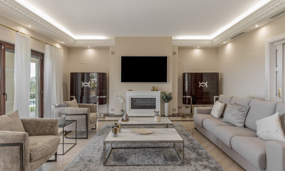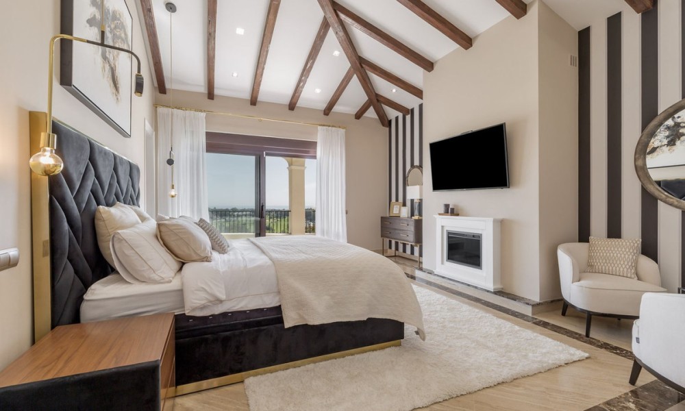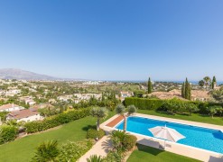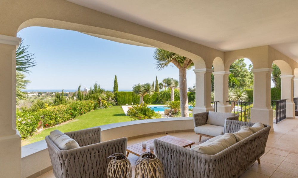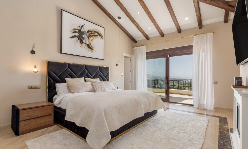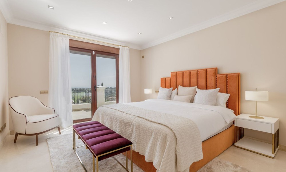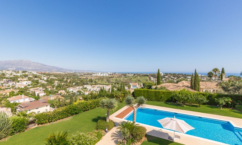Stunning Renovated Villa with Sea Views, Heated Pool, and Guest Apartments in Tranquil Paraiso Alto, BenahavísSet within the prestigious enclave of Paraiso Alto in Benahavís, this expansive 11-bedroom, 12-bathroom residence offers a rare blend of space, privacy, and refined Mediterranean living. Fully renovated in 2019 and sold turnkey furnished, this 817 m² villa on a 2,000 m² plot provides an unparalleled family retreat with exceptional indoor and outdoor living spaces.Originally built in 2002 and thoughtfully modernized, the villa harmonizes traditional Andalusian architecture with contemporary comfort. The design retains classic elements like a central tower and elegant terraces, while incorporating large-scale windows, refined finishes, and modern infrastructure including underfloor heating and air conditioning throughout.Spanning three levels, the villa is organized for comfort and flow. A grand staircase and private elevator connect each floor. The entrance hall opens to sea views, leading to a large lounge with terrace access. The central kitchen, located in the property’s signature round tower, is bathed in natural light from surrounding windows—offering a striking space for everyday living and entertaining.The main and upper levels host six spacious en-suite bedrooms, each offering privacy and comfort. The upper bedrooms open directly onto a wraparound terrace that showcases panoramic views over the Mediterranean coastline and lush greenery.The lower level is designed to offer full independence to both guests and staff. A self-contained guest apartment features two bedrooms, two bathrooms, a lounge, and a kitchen. Additional rooms on this level include a staff apartment and two further bedrooms—perfect for extended family, visitors, or live-in service.Whether for family life or hosting, the villa offers multiple zones for entertainment. A cozy upper-level lounge or office in the tower provides a quiet retreat, while several terraces and garden spaces allow for stylish outdoor dining, lounging, and gatherings throughout the year.A standout feature is the private heated pool set within a manicured garden—ideal for year-round enjoyment. With generous sunbathing space and a peaceful ambiance, this area echoes the leisure experience of a boutique Mediterranean resort.