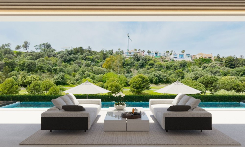 Contemporary Frontline Golf Villa Project | La Alquería, BenahavísA striking brand-new villa project set frontline to the prestigious Atalaya Golf course, this contemporary masterpiece offers exceptional design, high-end materials, and sweeping golf views in one of Benahavís’ most sought-after residential areas. Spread across three levels, the villa boasts 616m² of built space plus 131m² of terraces, blending modern architecture with natural surroundings. Designed for effortless luxury living, the open-plan layout flows seamlessly through bright interiors to expansive outdoor spaces.