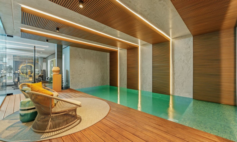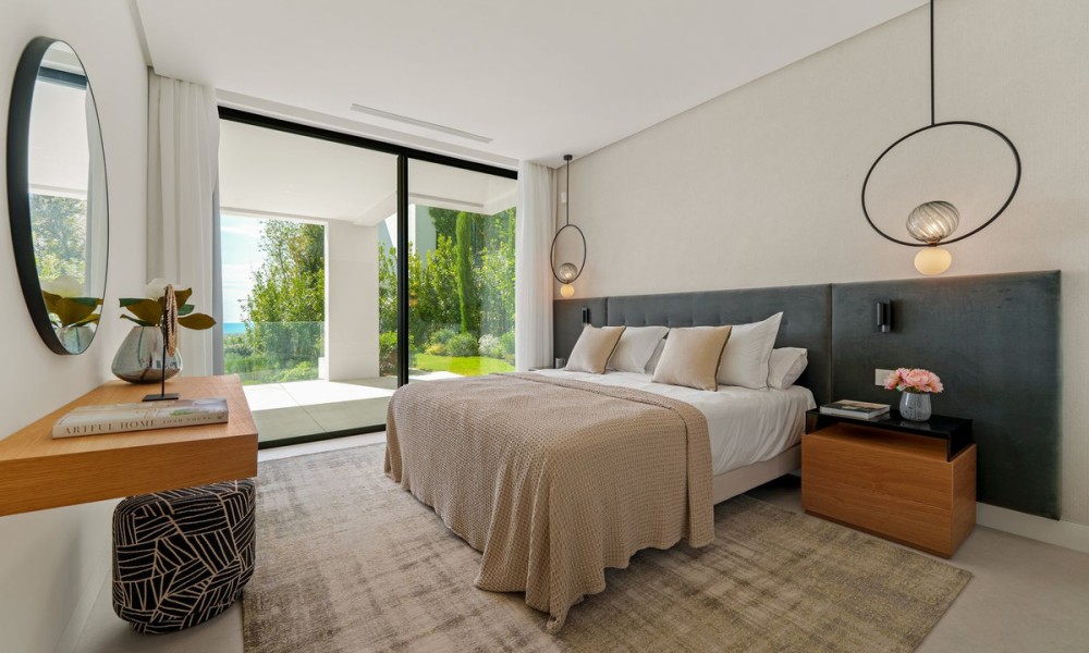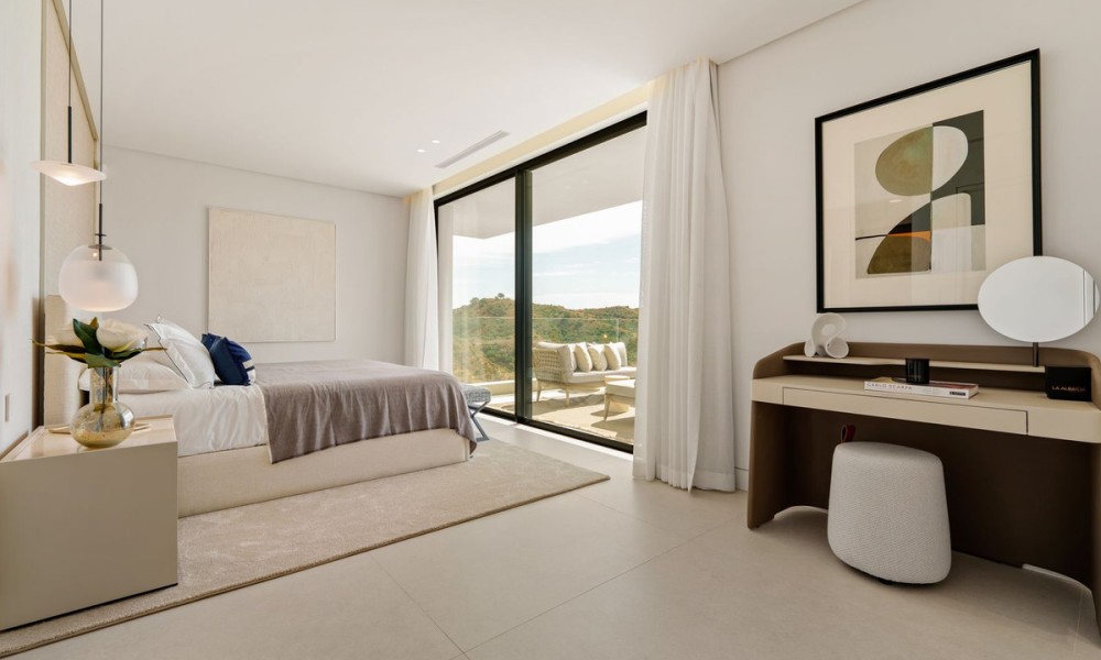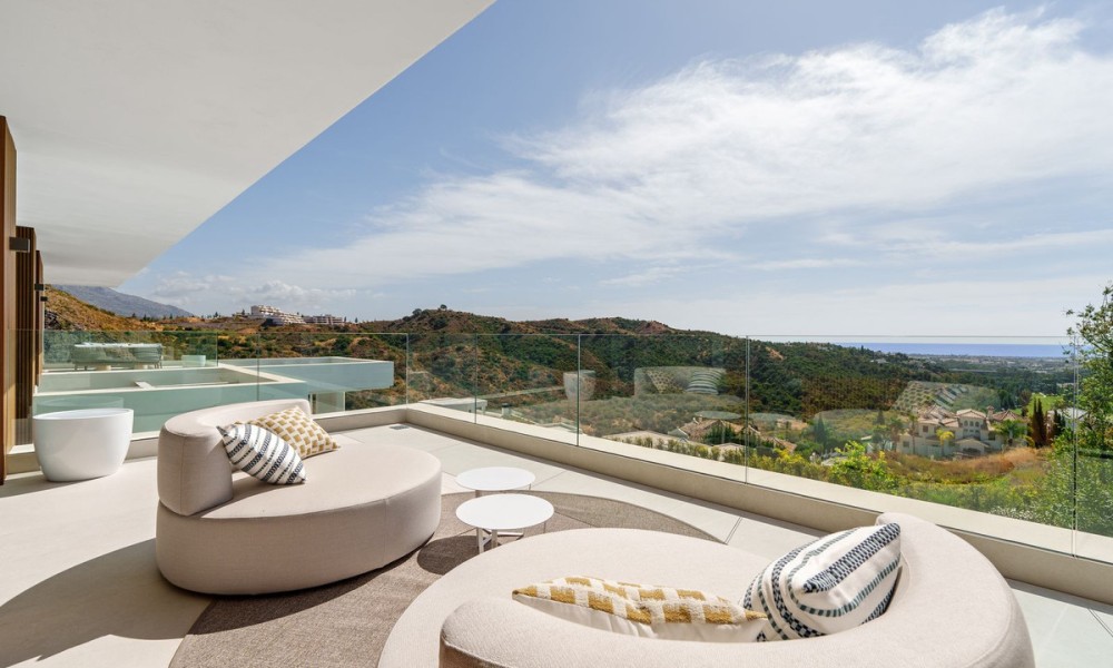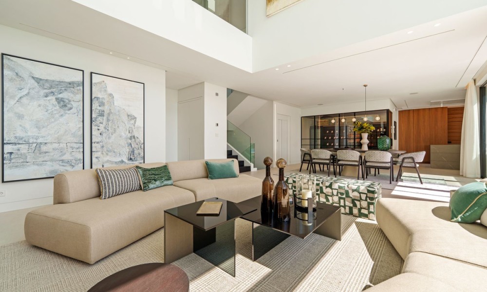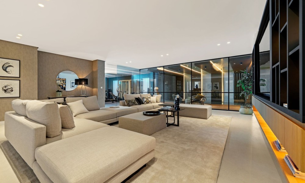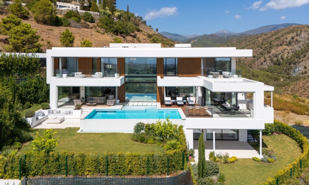 This exceptional contemporary villa showcases a seamless fusion of architectural precision and functional design. Clean lines, expansive glazing, and a minimalist aesthetic define its style, while an emphasis on natural light and open space creates a timeless sense of sophistication and tranquility.Spanning three levels across 636 m², the home is centred around an open-plan concept that fluidly connects the living, dining, and kitchen areas to multiple terraces. Floor-to-ceiling windows frame breathtaking mountain and Mediterranean views, while elegant interior finishes and integrated lighting enhance the feeling of space and refinement.The villa offers six spacious bedrooms, each with an en-suite bathroom designed to the highest standards. The master suite enjoys panoramic views, a private terrace, and a luxurious bathroom with spa-inspired details, ensuring a serene personal retreat.Additional guest suites are positioned for privacy, offering both comfort and independence. Their layouts make the home ideal for hosting friends, extended family, or live-in staff.A dedicated entertainment level includes a bespoke cinema and games area, creating the perfect space for social gatherings and family enjoyment. Thoughtfully designed for both relaxation and recreation, the home caters to the demands of a modern lifestyle.An entire floor is dedicated to wellness, featuring a private indoor pool, fully equipped gym, and luxurious spa facilities.