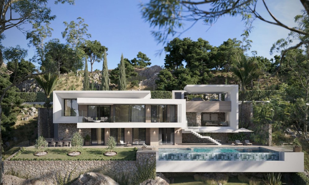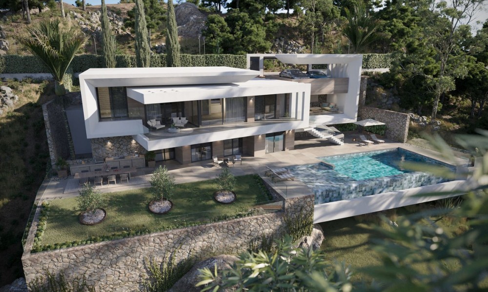 Set within an elevated hillside enclave, this contemporary residence showcases clean architectural lines, natural stone detailing and expansive glazing designed to maximise light and views. The layout centres around open-plan living and dining areas that flow seamlessly onto generous terraces, creating a strong connection between interior and exterior spaces ideal for modern Mediterranean living.The main sleeping quarters include a spacious principal suite with private bathroom and direct terrace access, while additional bedrooms are well-proportioned, offering comfort and privacy for family or guests. The design allows for flexible use of spaces, suitable for guest accommodation, a home office or staff quarters if required.Outdoor living is a defining feature, with large terraces and an infinity-style pool creating an ideal setting for entertaining, relaxing and enjoying the climate year-round.
