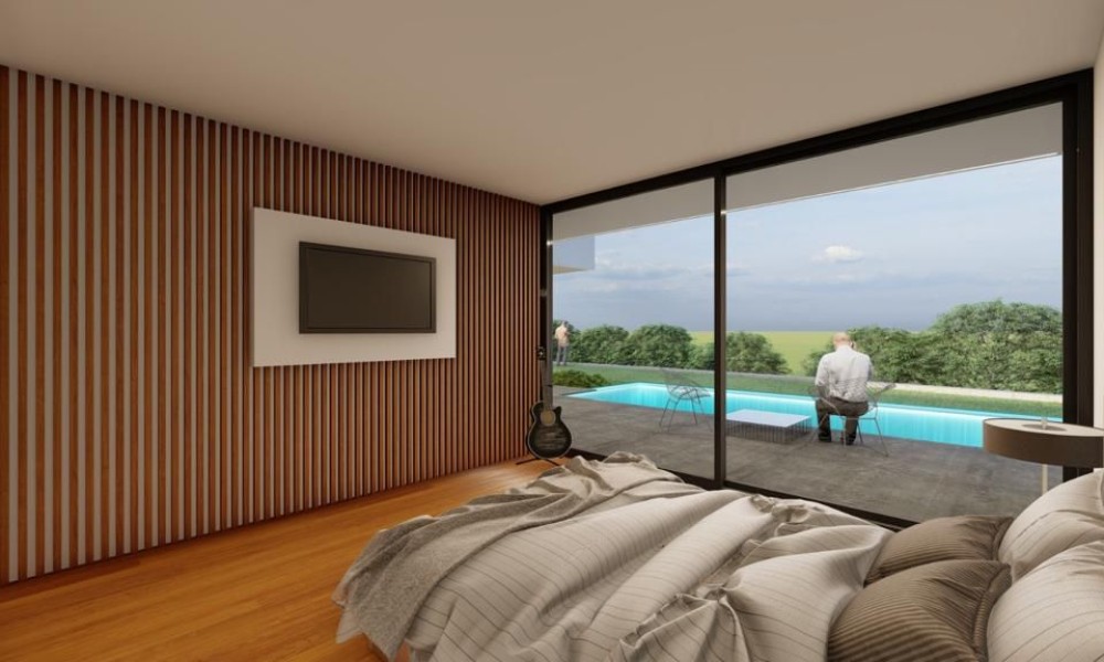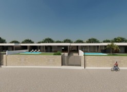 New 3 bedroom villa, ground floor, with equipped kitchen, laundry, VMC, electric shutters, Led lighting, suite, electric blinds, central heating, heat recovery, automated gates, two cars garage, garden, barbecue and swimming pool.