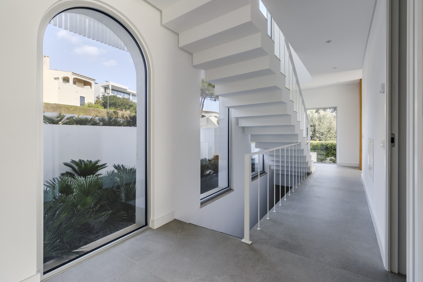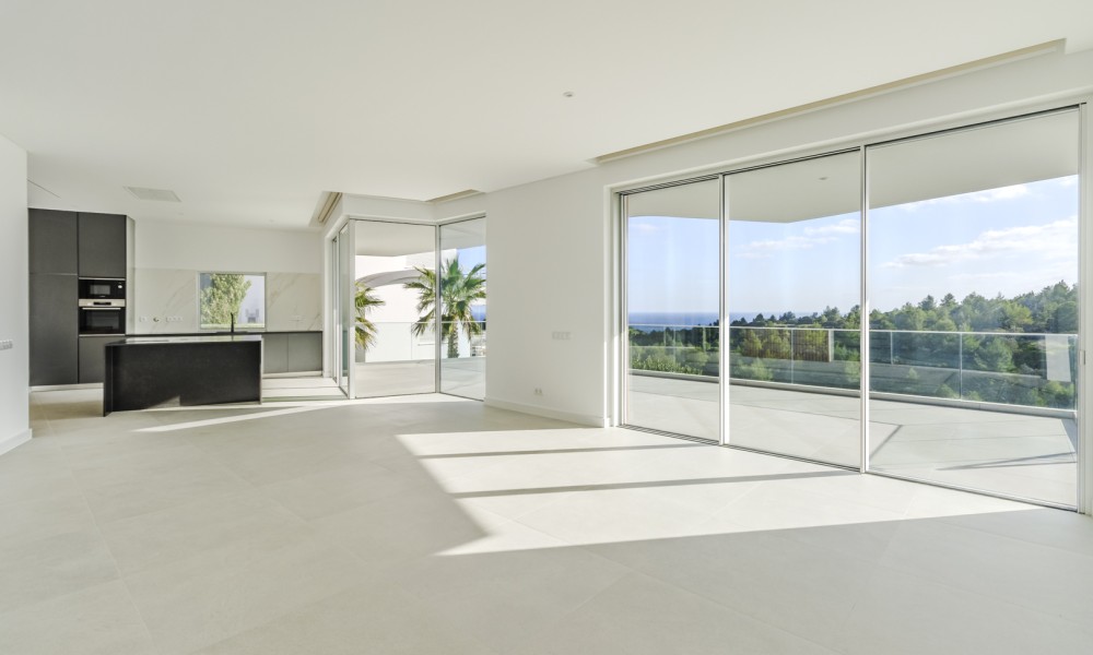 Sitting in a prime hillside location between Burgau and Salema, this stunning villa offers breathtaking sea views, a sleek contemporary design, and an abundance of space, blending luxurious interiors with expansive south-facing terraces.The villa is thoughtfully designed to maximize the flow between indoor and outdoor living, with every room opening onto sun-drenched terraces that showcase the spectacular ocean views.The entrance level features a spacious open-plan living and dining area that leads onto a beautiful balcony, perfect for entertaining or simply soaking in the vistas. A modern, fully fitted kitchen complements this level, providing both functionality and style.Upstairs, three generously sized bedrooms, each with en-suite bathrooms, enjoy their own private south-facing balconies. A stunning glass ceiling above the stairway and hallway bathes this floor in natural light, enhancing the villa’s bright and airy atmosphere.