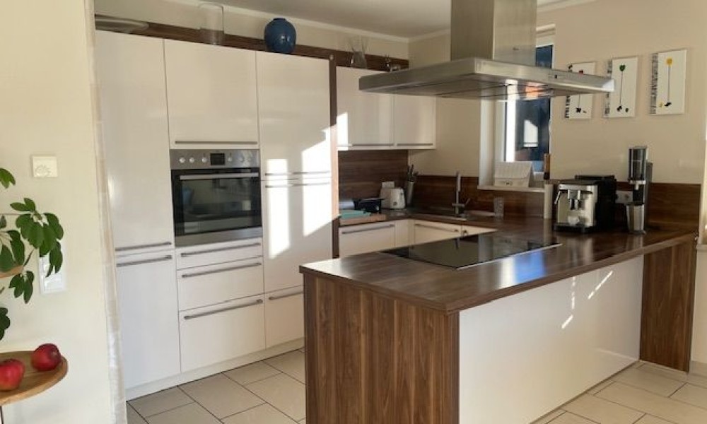 Unique living in Bad Kleinkirchheim: Dream house near the Nockalm Lift.Welcome to Bad Kleinkirchheim, where nature, relaxation and adventure come together! This generous, modern designed house is ideally located next to the Nockalm Lift, in the middle of Carinthia’s popular ski area, golf, cycling and hiking paradise. Here you will enjoy a sunny location and breathtaking views of the majestic Kaiserburg Castle.Your new home in the heart of the Nockberge mountainsWith a living area of no less than 300 m², this solidly built house offers plenty of space and comfort. It is only 15 years old, excellently insulated and equipped with durable pellet heating. Modern furnishings, a large balcony and four garage spaces complete the property.The first floor is furnished with three spacious bedrooms, a study and two stylish bathrooms. The large living/dining room offers direct access to a spacious south-facing terrace, where you can enjoy the sun and spectacular views at any time of day. Ideal for those looking for a place with enough space to work from home, in the middle of the beautiful surroundings of the Kärntner Nockberge.