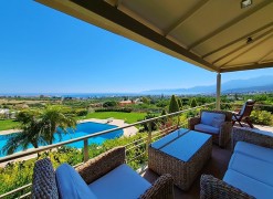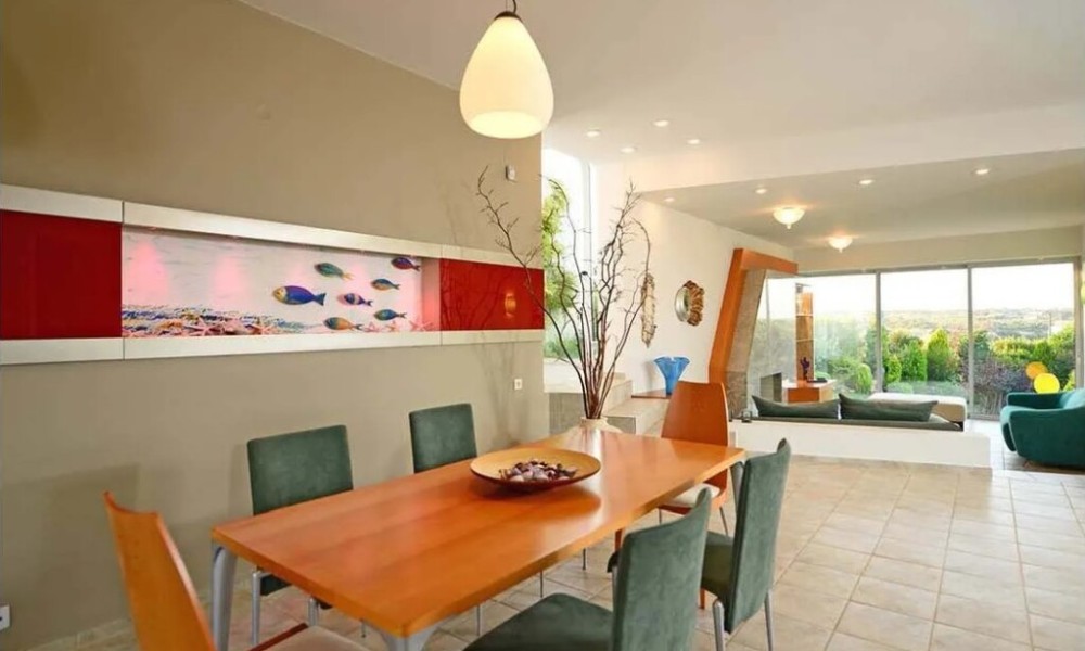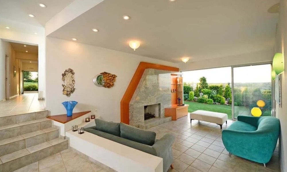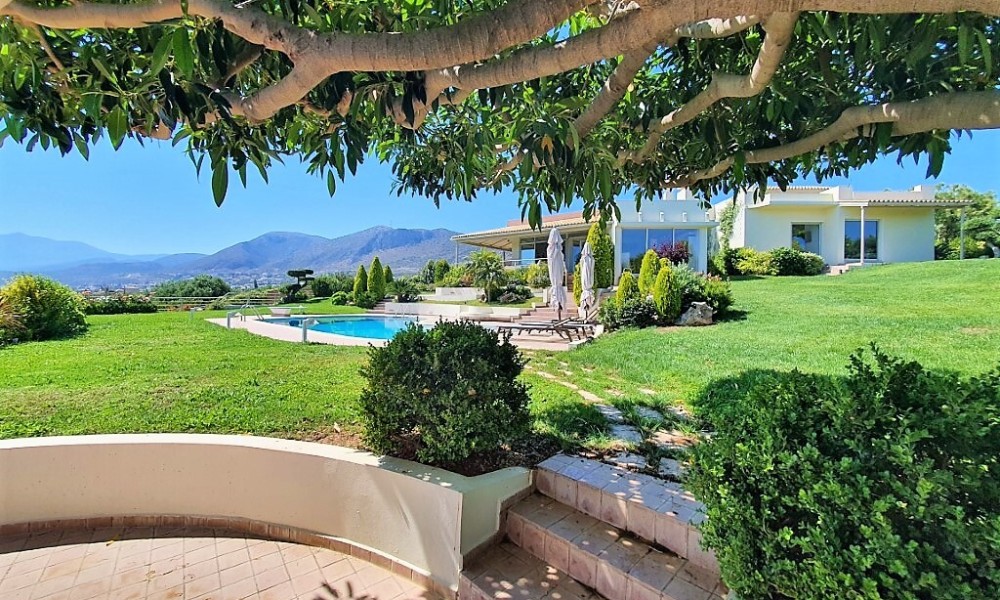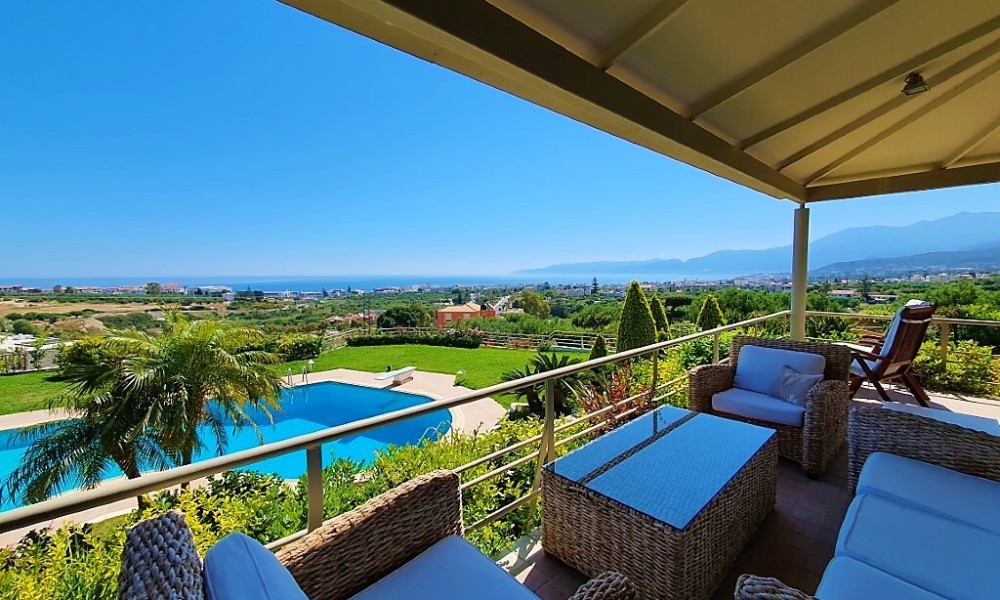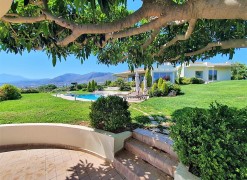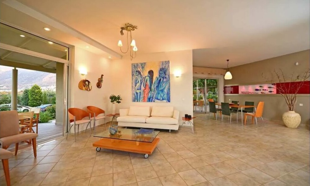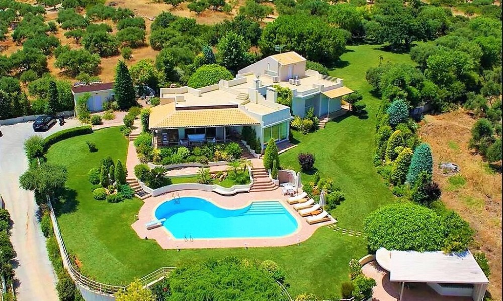 For sale 1-storey villa of 253 sq.meters in Crete. Villa consists of 5 bedrooms, 2 living rooms, one kitchen, one dining room, one bathroom, 4 shower WC, one storeroom. The property offers a roof garden. A magnificent view of the city, the sea, the mountain, the forest opens up from the windows. There are: solar panels for water heating, a fireplace, air conditioning, heating, a barbecue area. The owners will be leaving the furniture with the sale. There is an alarm system installed. Extras included with the property: parking space, garden. The property boasts a swimming pool of private use.