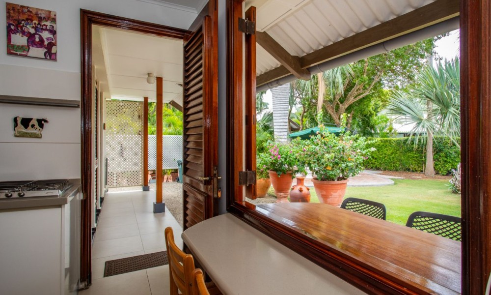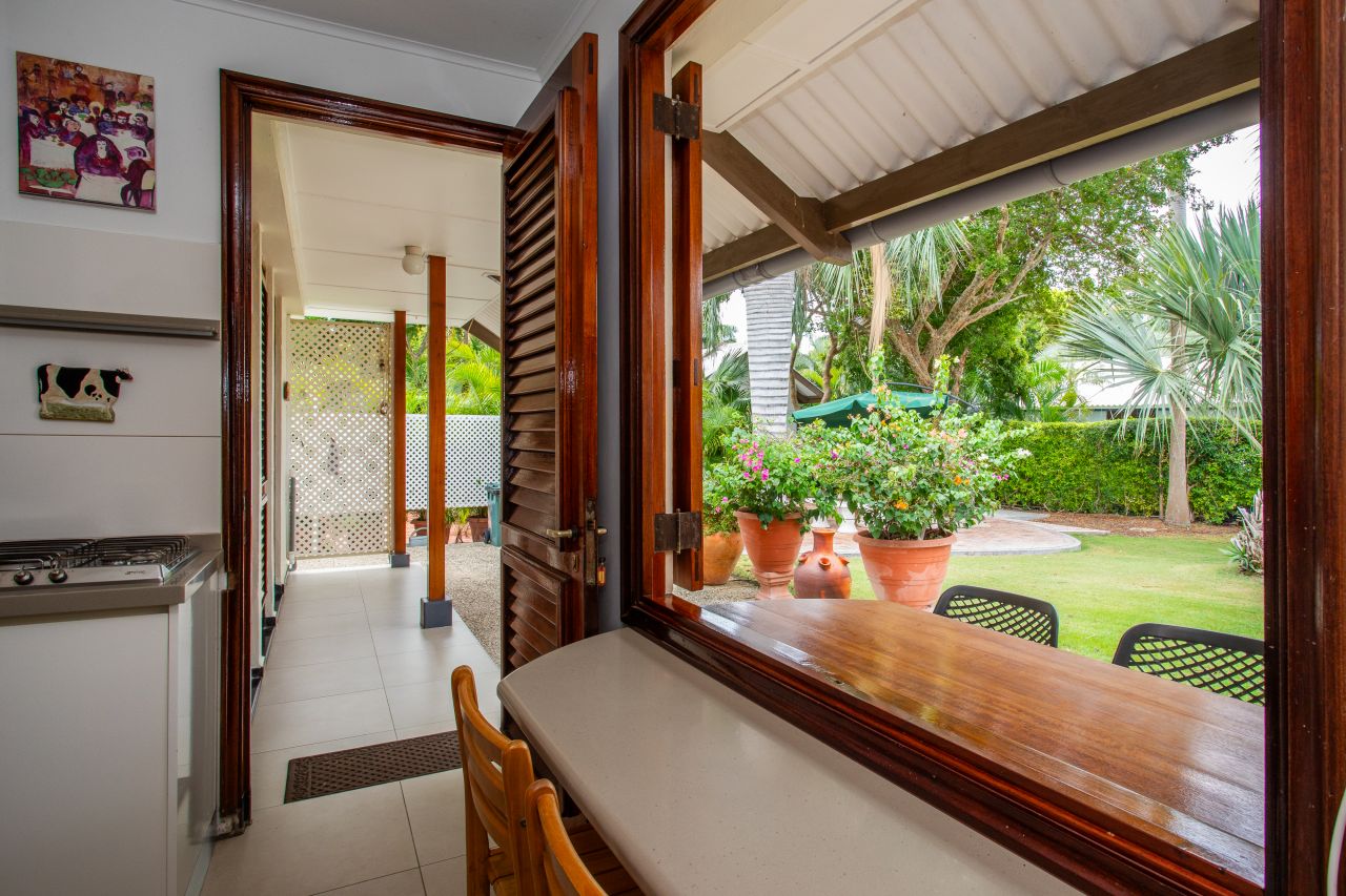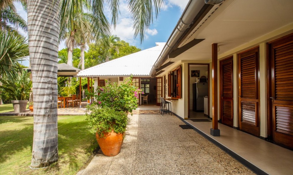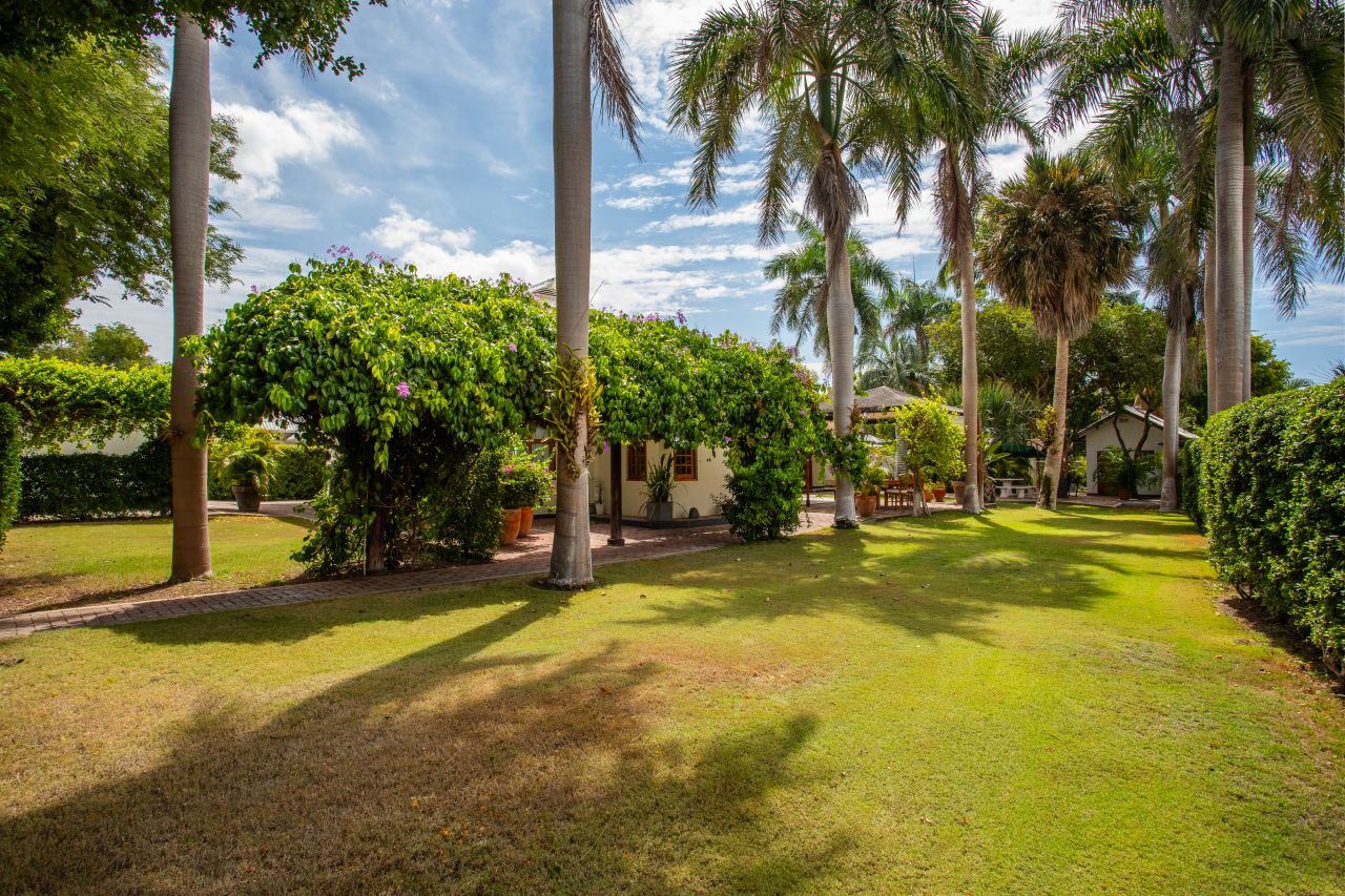 In the last bedroom, a door leads you to a hallway that ultimately guides you to the heart of the home: the kitchen. This well-appointed culinary space boasts modern conveniences such as a Bosch dishwasher, an oven, and a stovetop. A large window in the kitchen invites natural light to flood the room and offers a convenient bar area, both inside and outside, where you can savor your morning coffee or evening cocktails.Explore the Tranquil Garden and AmenitiesFrom the kitchen, a door leads you to the outside, revealing a trio of doors that unveil a laundry room, an additional bathroom, and a storage closet. The garden surrounding your tropical villa is a true oasis, adorned with swaying wayaka and lush palm trees, creating an enchanting tropical paradise.A quaint small house nestled within the garden serves as a versatile tool and workspace, providing ample room for your creative pursuits or DIY projects. On the opposite side of the garden, a separate apartment awaits, complete with a kitchenette and a private bathroom, making it ideal for guests or as a potential source of rental income.The front of the villa boasts a capacious garage that easily accommodates two cars, providing convenience and security for your vehicles. With this well-maintained property, your tropical haven comes complete with all the amenities you could desire.The Importance of a Skilled Curacao RealtorNow that you’ve fallen in love with the idea of owning this magnificent tropical villa in Emmastad, it’s crucial to understand the role of a proficient Curacao realtor in making your dream a reality. Curacao’s real estate market is unique, and having a knowledgeable guide is essential.A skilled realtor, like International Fine Living, with expertise in the Curacao market can help you navigate the intricacies of buying a house on the island. They are well-versed in the local property landscape, including the nuances of different neighborhoods like Emmastad. A reputable realtor can provide you with invaluable insights into market trends, property values, and potential investment opportunities, ensuring that you make an informed decision.Moreover, a trusted realtor can streamline the buying process, helping you with essential tasks such as negotiating offers, arranging property inspections, and handling the paperwork required for a smooth transaction. Their expertise ensures that you receive the best possible value for your investment while minimizing potential pitfalls.In Conclusion: Your Dream Home Awaits in Emmastad, CuracaoContact our realtor Militza Scoop today to begin your journey to paradise.
