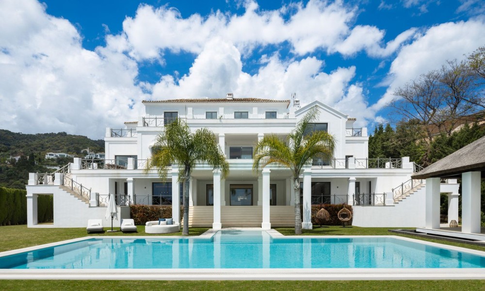 This stunning villa in El Madroñal offers panoramic sea views, total privacy, and over 1,370 m² of elegant living space. Set on a 5,000 m² plot, the home features five en-suite bedrooms, a private spa with heated indoor pool, gym, and massage room, plus a full entertainment wing with cinema, bar, and wine cellar. Traditional Andalusian architecture blends with modern luxury, including an elevator, underfloor heating, and air conditioning throughout. Beautifully landscaped gardens, a gazebo with outdoor kitchen, and multiple terraces complete this exceptional property—just 10 minutes from Puerto Banús, Marbella’s beaches, and the charm of San Pedro Alcántara.This magnificent villa blends contemporary comfort with classic Andalusian charm, creating an elegant estate in the heart of El Madroñal. Traditional elements such as an interior courtyard, tiled rooflines, and wrought iron detailing meet modern architectural volumes, natural light, and expansive glazing—resulting in a timeless residence defined by refinement, warmth, and grandeur.Spanning an impressive 1,372 m² across four levels, the home is centered around a double-height entrance hall leading to a spacious living room with panoramic windows. A formal dining room and large kitchen with a breakfast area and adjoining laundry room provide ample space for family living and entertaining. An elevator connects all floors, ensuring convenience throughout the residence.The second floor is dedicated to three generous en-suite bedrooms, including a stunning master suite complete with a luxurious bathroom, dressing room, and direct access to a private terrace with sea views. Each bedroom is designed for privacy and tranquility, surrounded by the natural beauty of the setting.The main level includes two en-suite guest bedrooms and a flexible office/library that can serve as an additional bedroom. A separate independent room provides extra accommodation or staff quarters, ideal for hosting or live-in service.