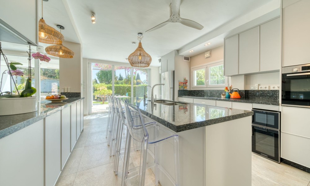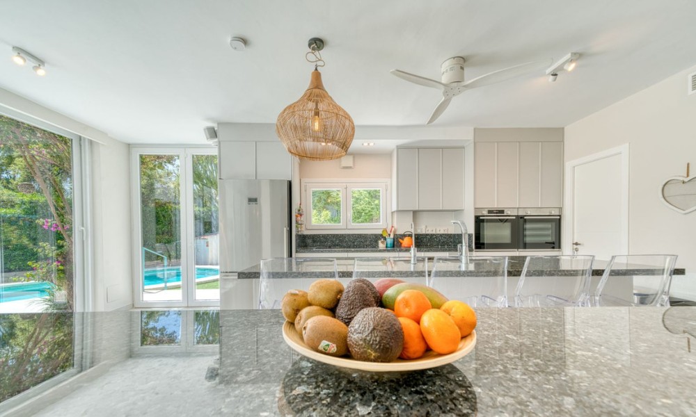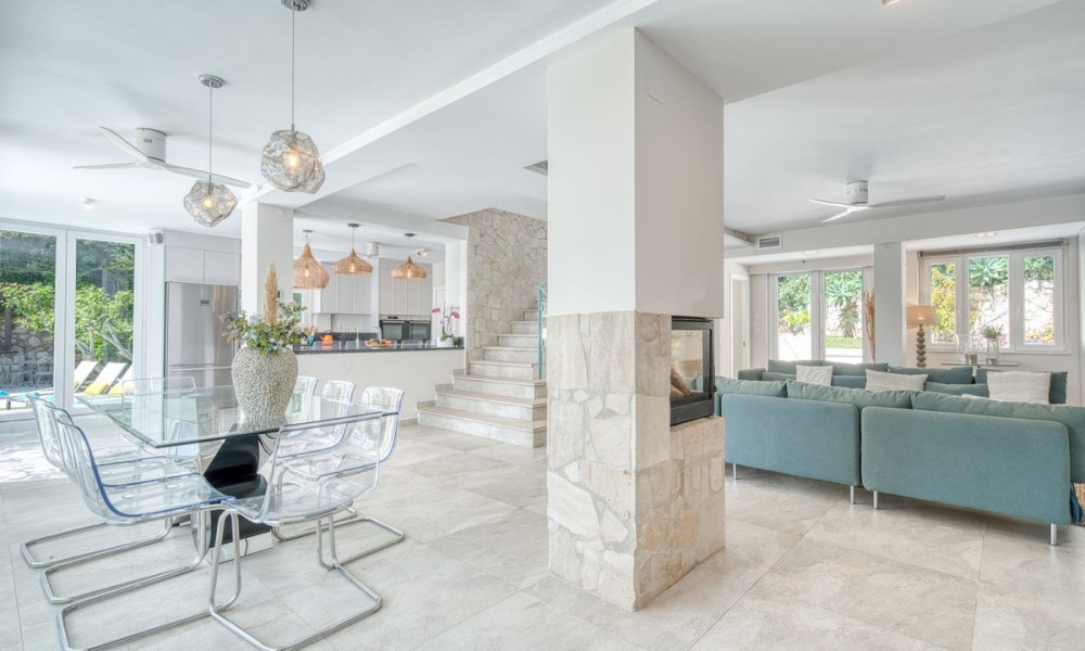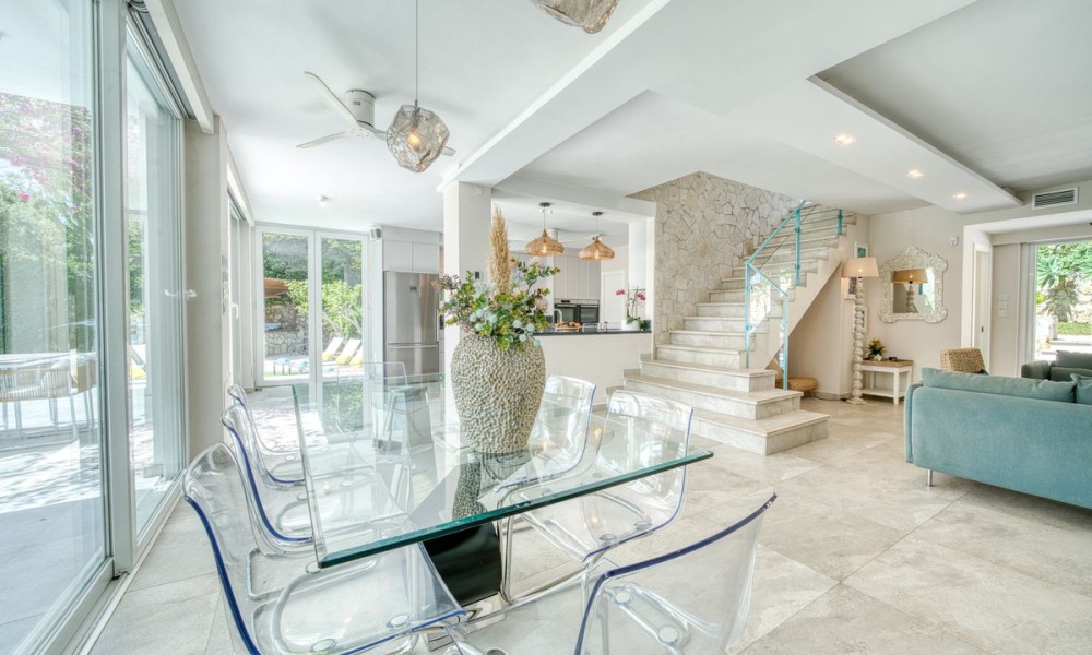 Elegant Contemporary Smart Villa with Proven Rental Income | El Rosario, Marbella EastSet within the established residential enclave of El Rosario, this refined villa offers a rare combination of privacy, modern design and strong investment appeal. Positioned on a 1,097 m² plot with 342 m² built, the property benefits from a southwest orientation with abundant natural light and sunset views. The interior features a seamless open-plan layout connecting living, dining and kitchen areas to terraces, gardens and a private pool, creating an ideal setting for indoor-outdoor living.
