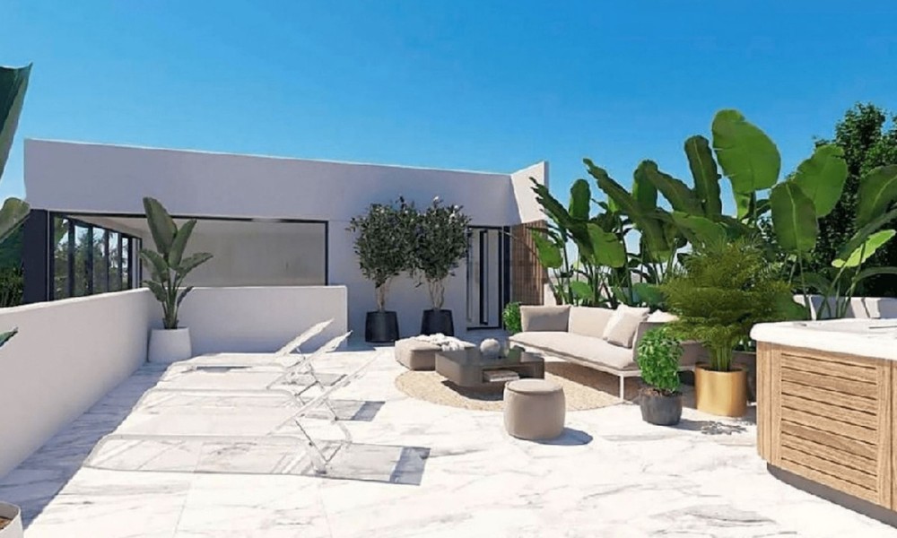 The villa briefly comprises, living room, an American style open plan kitchen adjacent to the dining room, laundry room, three double bedrooms and two bathrooms. The villa complete with a private garden and swimming pool, and a jacuzzi located on the roof top terrace.