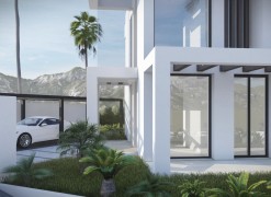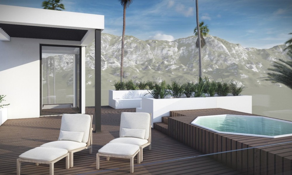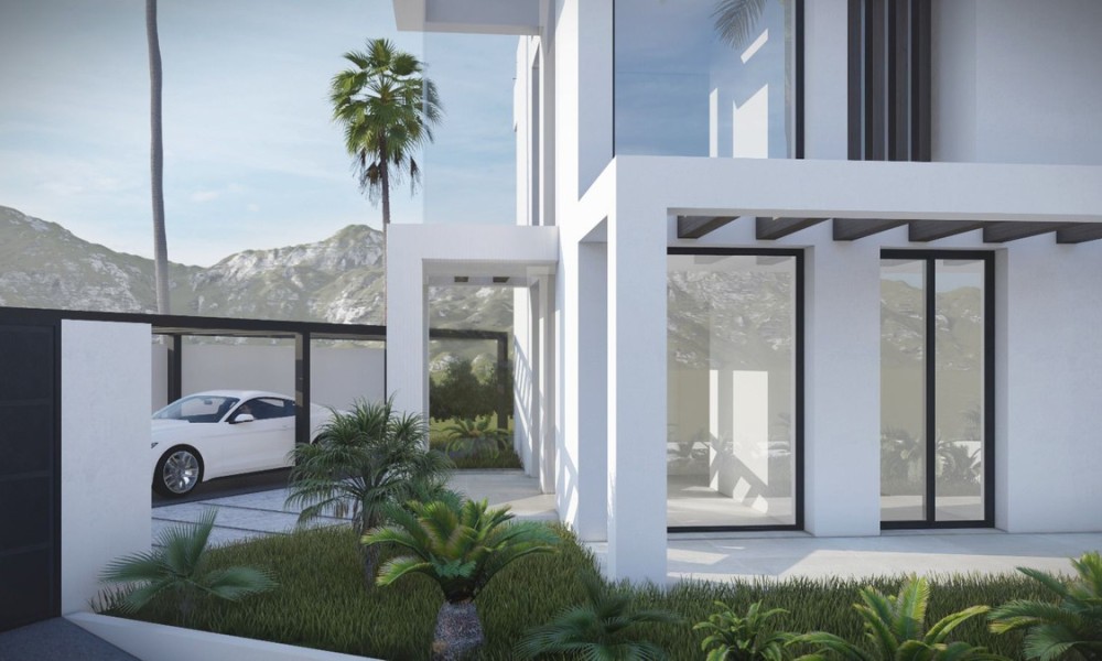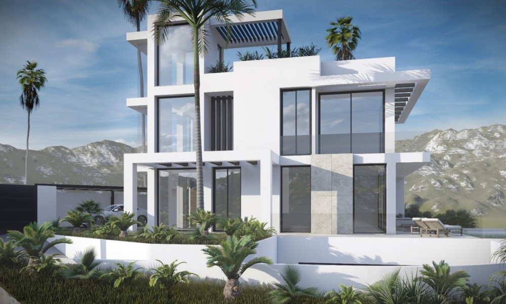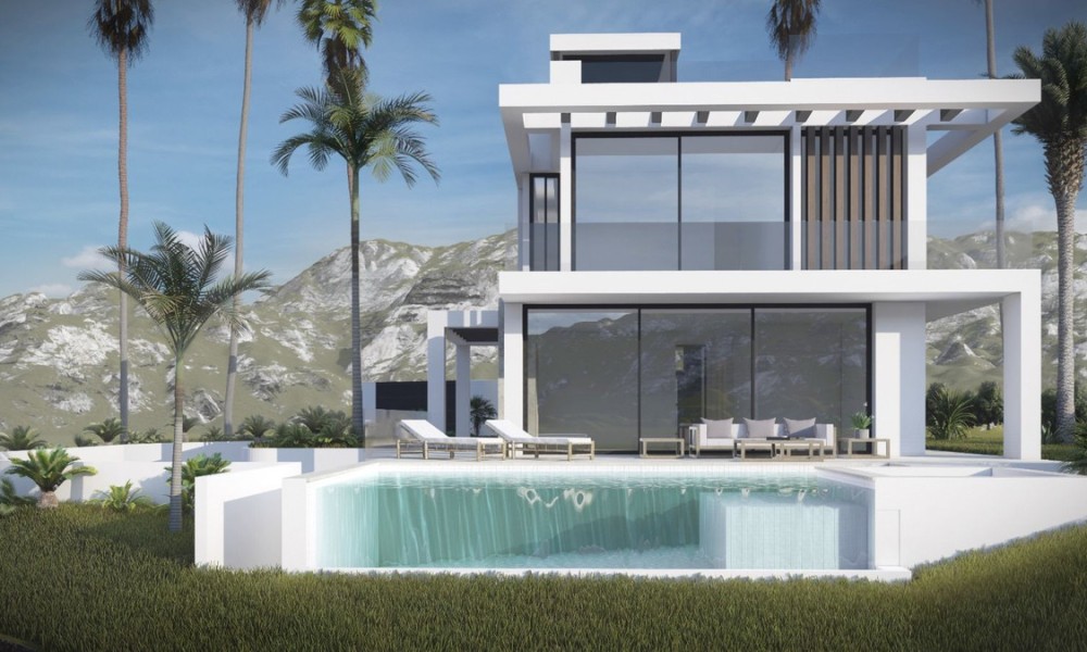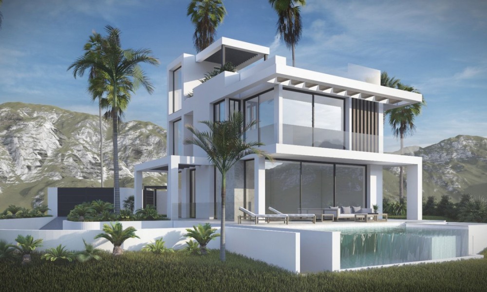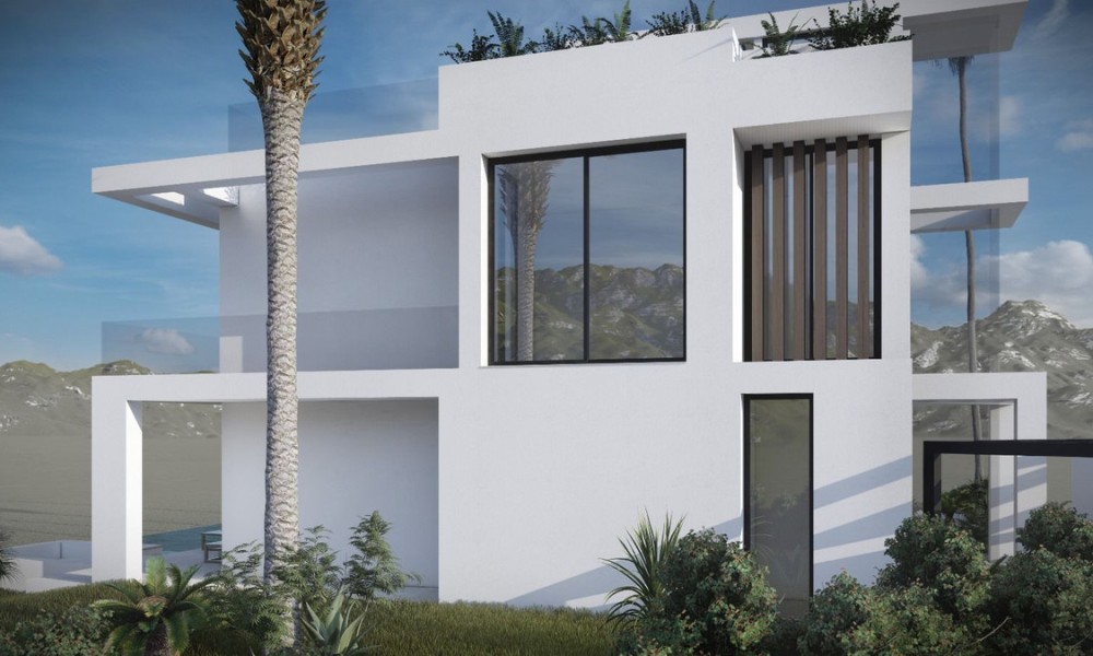 Stunning contemporary villa, available for construction upon request, is set in the sought-after urbanization of Buenas Noches, west of Estepona. The project will commence once a buyer is secured, with an estimated completion time of approximately two years.Situated on a 570 m² plot, the villa boasts 312 m² of built space, complemented by expansive terraces. The property features four bedrooms and three bathrooms, with a south-to-west orientation that ensures abundant natural light throughout the day. Ideally located, it is just a short distance from the beach and a mere 10-minute drive to Estepona’s port and town center.On the ground floor, the villa offers an open-plan living and dining area, complete with a fireplace for added warmth and ambiance. The fully fitted kitchen is equipped with high-end appliances, ensuring both functionality and style. This level also includes a guest bedroom with an en-suite bathroom, an additional room that can be used as a bedroom or office, a guest toilet, and direct access to covered and open terraces, the garden, and the pool area.