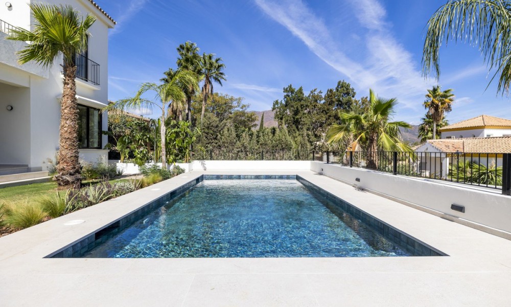 Refined Coastal Living with Striking Design | EsteponaThis beautifully crafted villa sits on a 1,054 m² plot just five minutes from the heart of Estepona, offering the perfect blend of luxury, privacy, and nature. Surrounded by greenery yet close to top restaurants and amenities, it’s a serene escape with unbeatable convenience. Inside, clean lines and minimalist elegance define the space, with five spacious bedrooms, five bathrooms, and high-end finishes throughout. Expect premium touches like AXOR fittings, Miele appliances, a Quooker tap, wine cooler, and underfloor heating in the bathrooms.