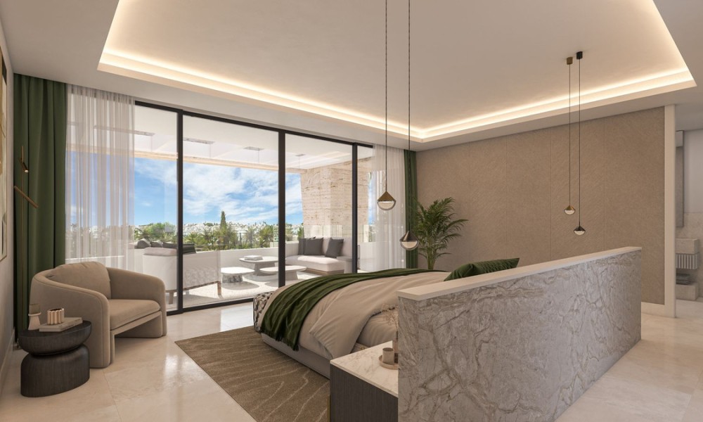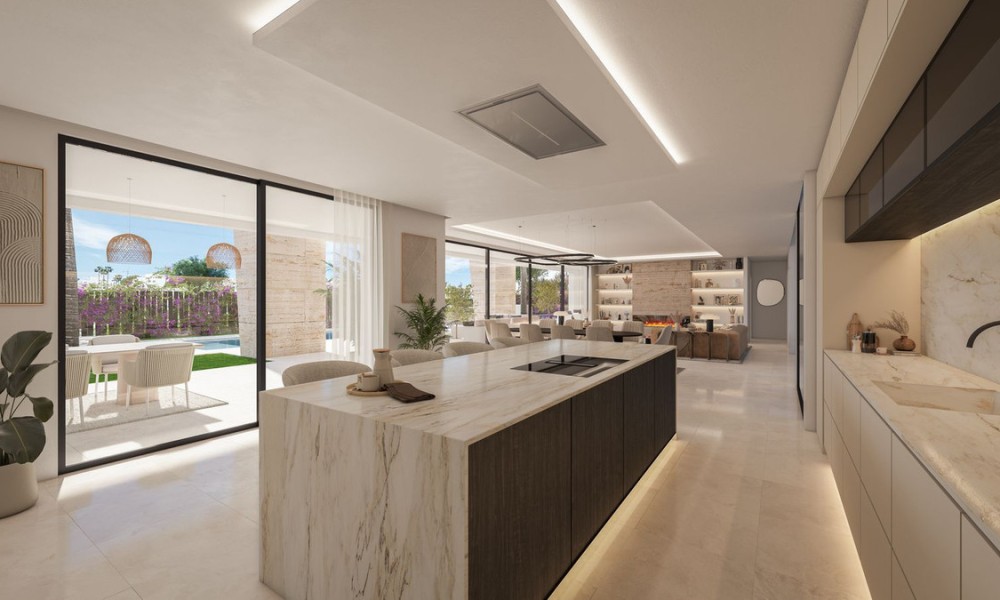 Expansive terraces, rooftop decks, and private gardens surround each villa. The Mediterranean landscaping, automatic irrigation, and ambient lighting create inviting spaces for outdoor dining, sunbathing, and socialising.Each home includes secure, gated access and either a covered carport or basement garage with two private parking spaces and a storage room. Motorized gates and cobblestone streets enhance the community’s upscale yet tranquil atmosphere.The gated community features 24-hour CCTV surveillance, smart alarm systems, and remote access controls. Villas are equipped with KNX home automation to manage climate, lighting, and sound from a smartphone or tablet.Set just above the golf course, the villas offer open views of the surrounding fairways, Sierra Bermeja mountains, and lush gardens. Their southwest orientation ensures optimal sunlight throughout the day, particularly on the rooftop terraces.Located in the peaceful enclave of El Campanario, just 10 km from Marbella and Puerto Banús and 15 km from Estepona, The Club Villas combine privacy with accessibility. Beaches, fine dining (such as Trocadero and Marbella Club), international schools, supermarkets, and medical centres are all within 5–15 minutes. El Campanario itself offers a family-friendly atmosphere with a kids’ club, tennis and paddle courts, coworking spaces, and a Mediterranean restaurant open to the public—making this one of the most balanced lifestyle offerings on the Costa del Sol.
