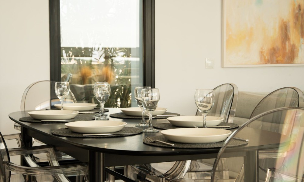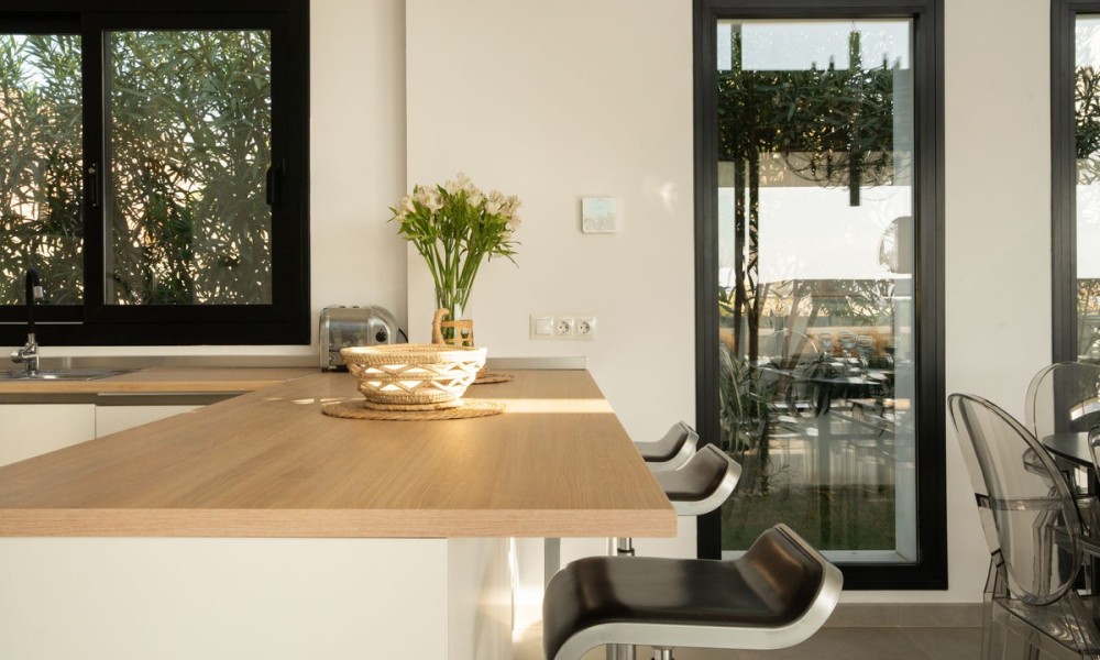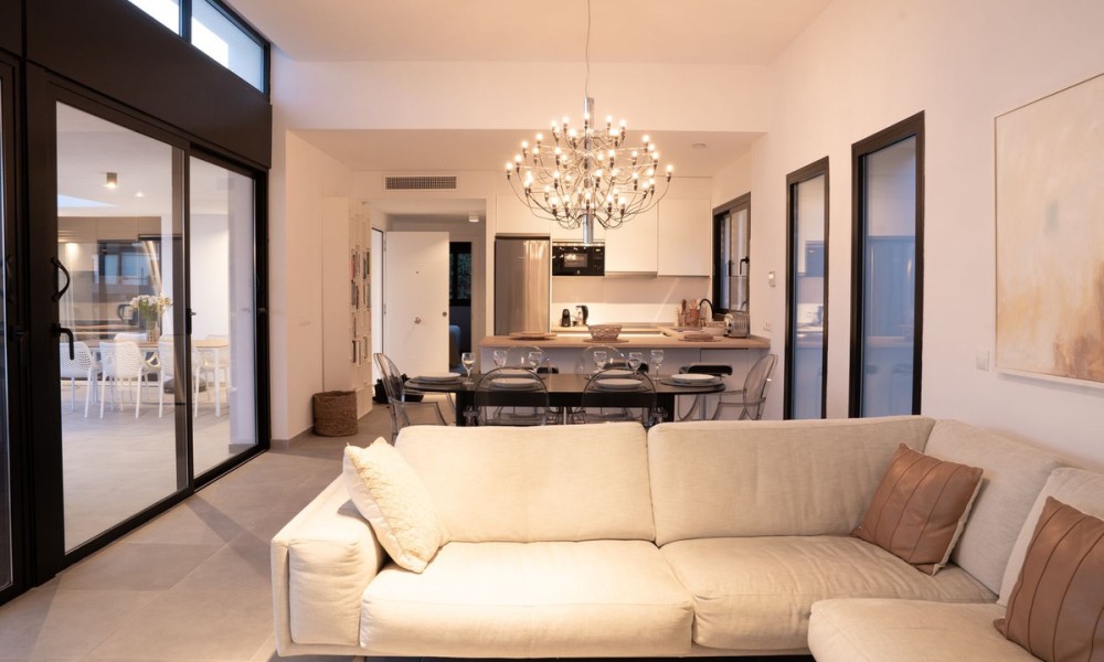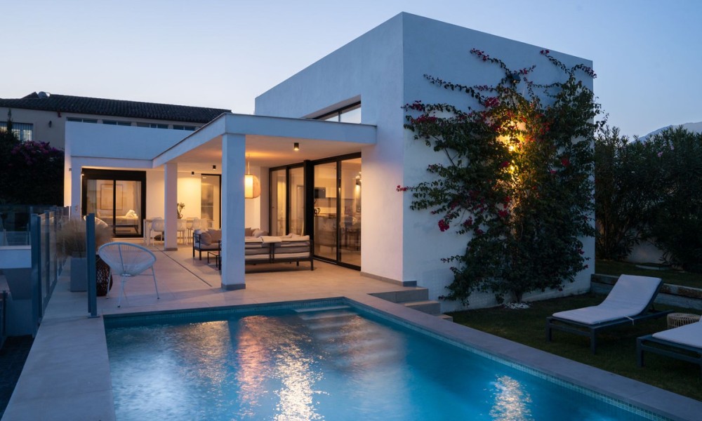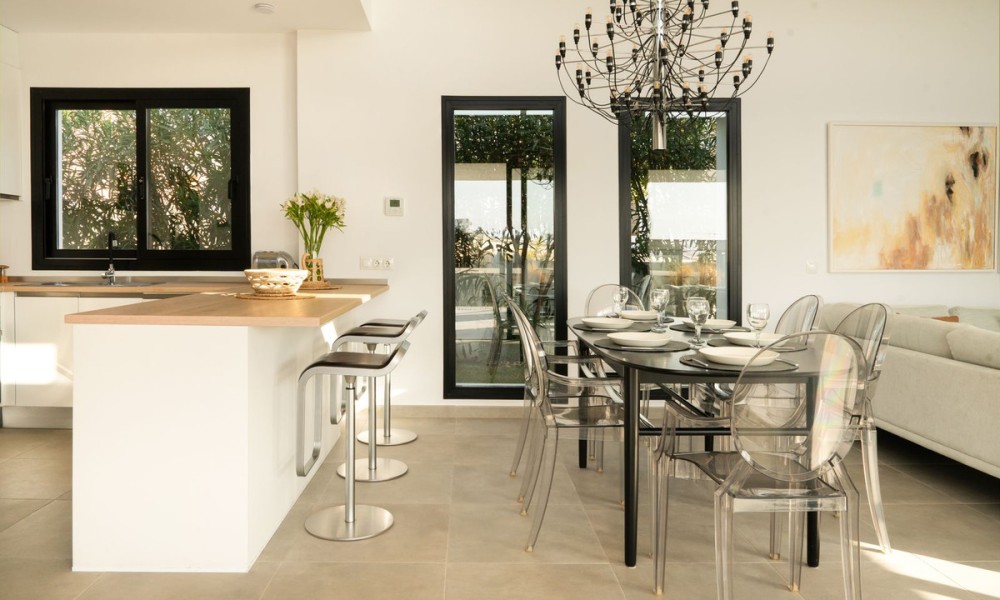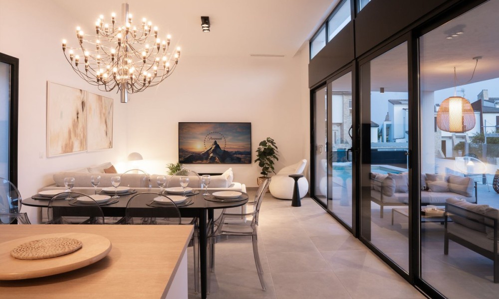 Contemporary Mediterranean Villa with Private Pool | Valle Romano, EsteponaThis striking contemporary villa in Valle Romano blends clean modern architecture with warm Mediterranean character, creating a home that feels both refined and welcoming. Light-filled interiors, quality materials, and thoughtful design come together to deliver a lifestyle-focused residence that balances style, comfort, and functionality with ease.The open-plan living areas flow seamlessly onto the terrace and garden, creating a natural indoor-outdoor connection that defines Mediterranean living. Large windows frame the surrounding greenery and flood the home with natural light, while the open kitchen becomes a central social space, ideal for both family life and entertaining. The layout feels effortless, bright, and intuitive.The main sleeping quarters offer three well-proportioned bedrooms and two modern bathrooms, with underfloor heating in the bathrooms adding everyday comfort. Designed for privacy and tranquillity, the bedroom distribution works beautifully for both families and guests. A naturally lit 80 m² raw basement provides outstanding flexibility, offering the opportunity to create a guest suite, gym, cinema room, wellness space, staff accommodation, or independent apartment, allowing the home to evolve with your lifestyle.