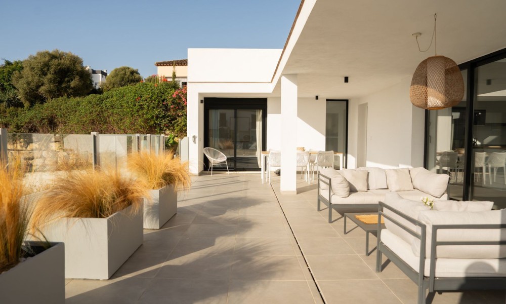 Outdoor living is a defining feature, with multiple terraces for dining, lounging, and entertaining. The private swimming pool and manicured garden create a peaceful, resort-style environment that feels private and relaxing, ideal for long summer days and outdoor living. Climate control throughout the property ensures year-round comfort, while the setting within a gated community offers both privacy and security.Just five minutes from Estepona town, the villa enjoys a superb location close to the promenade, La Rada Beach, the marina, and the restaurants and cafés of Estepona Old Town. Valle Romano Golf Club is moments away, providing a scenic backdrop and sporting facilities, while supermarkets, international schools, and daily amenities are all within easy reach.A beautifully balanced contemporary home that delivers design, lifestyle, and location in equal measure. A refined Mediterranean villa offering privacy, comfort, and effortless living in one of Estepona’s most convenient residential settings.