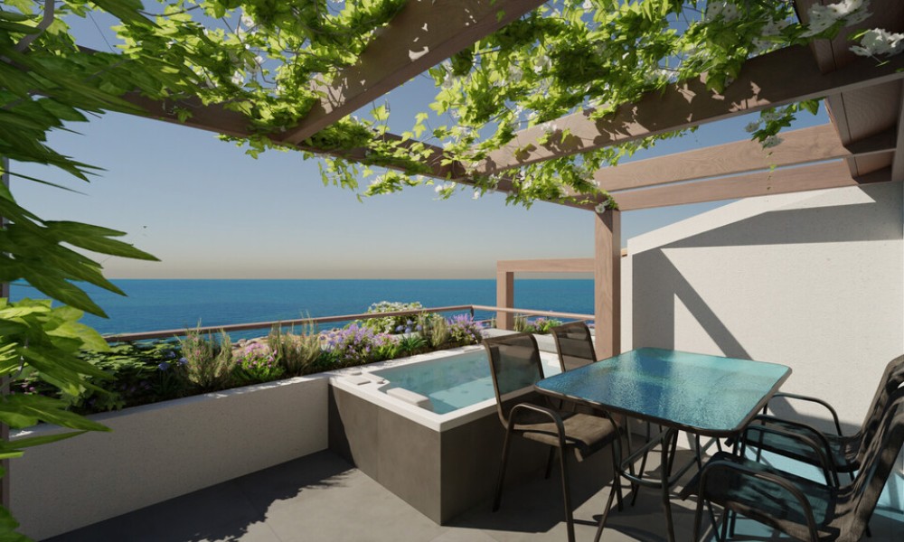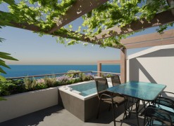Loft consists of one shower WC, one office. A magnificent view of the sea opens up from the windows. There are: solar panels for water heating, air conditioning, heating. The owners will be leaving the furniture with the sale. Extras included with the property: garden. The property boasts a swimming pool of private use.