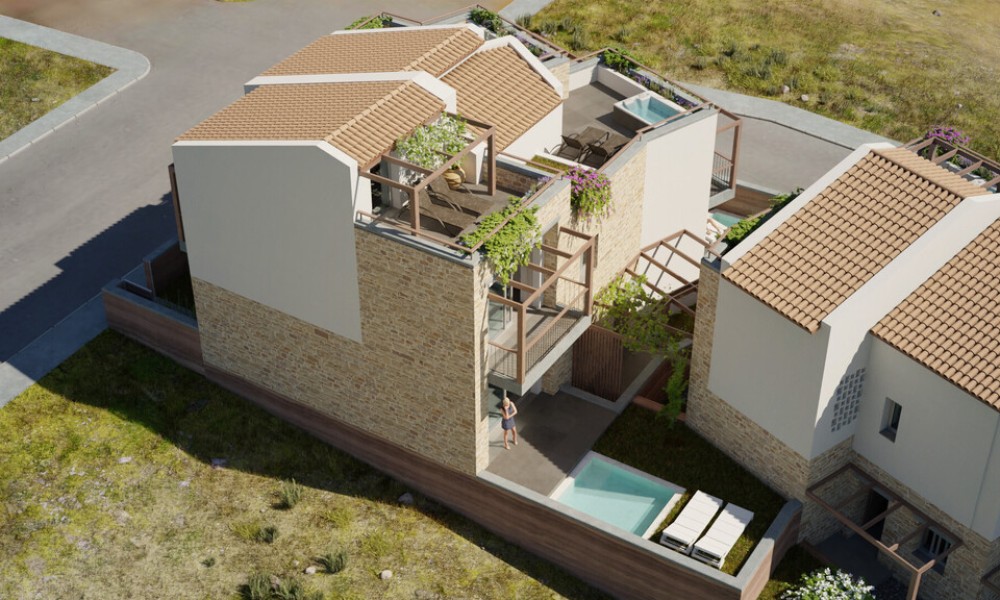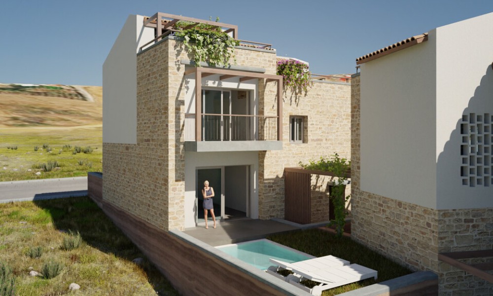 For sale under construction 3-storey villa of 102 sq.meters in Crete. Ground floor consists of living room with kitchen, one WC.