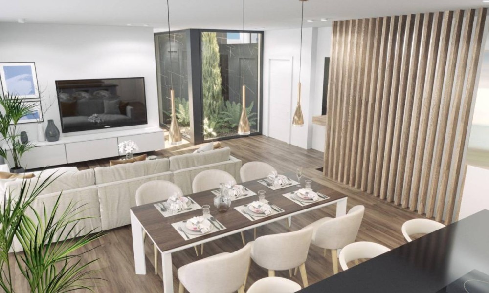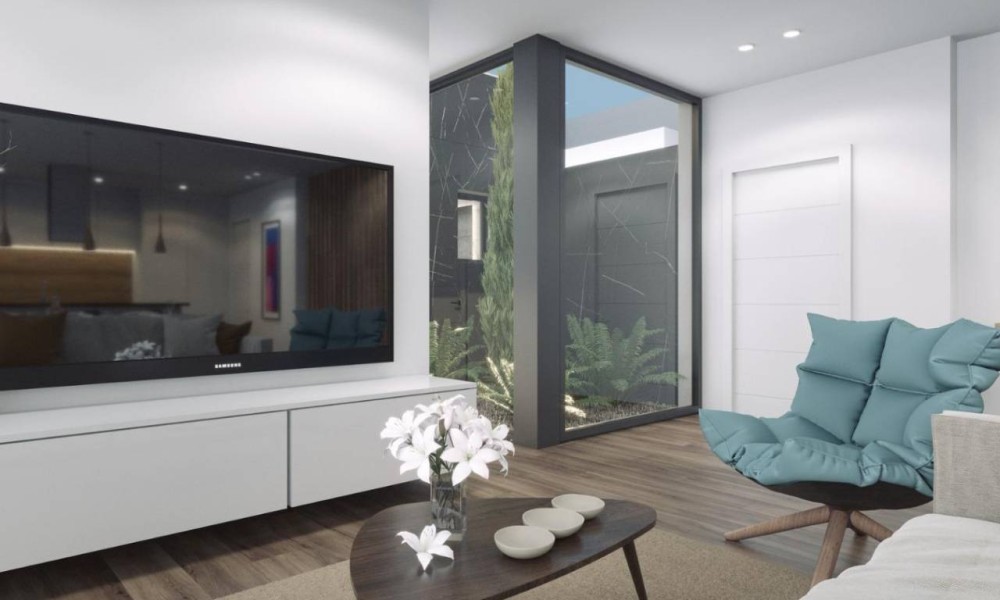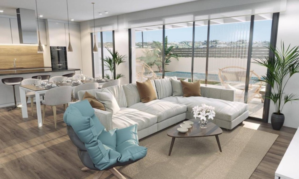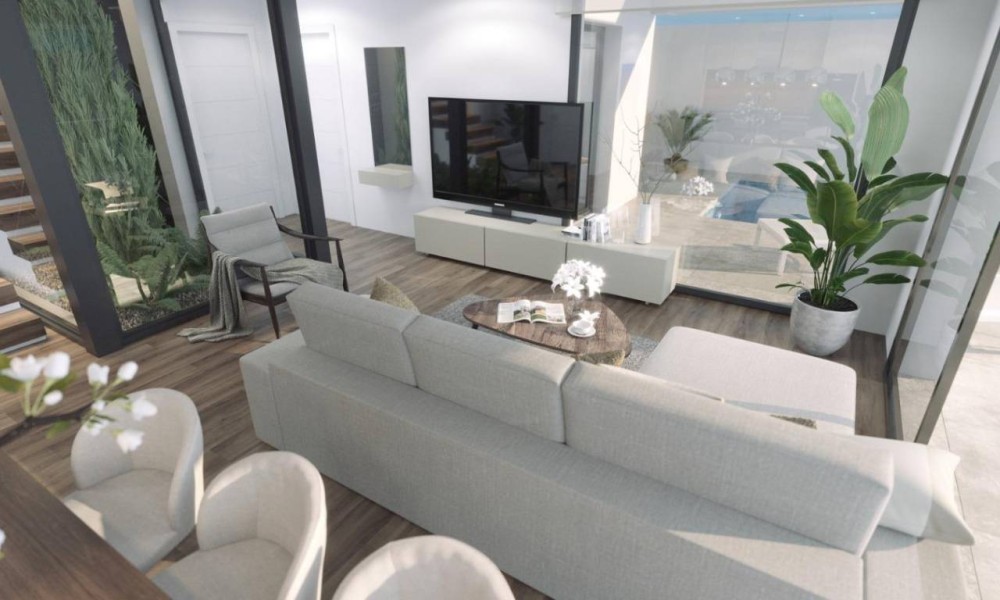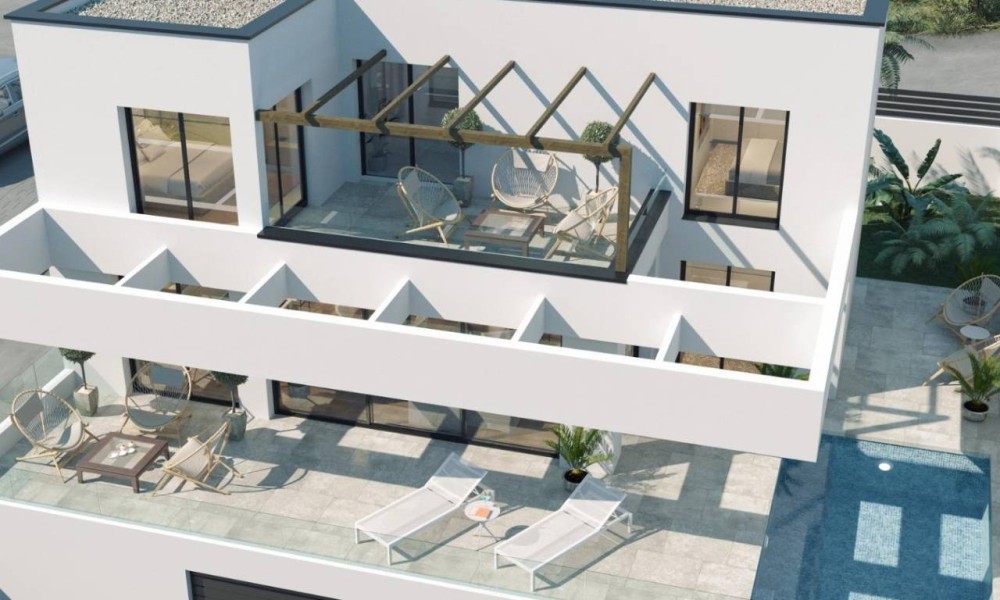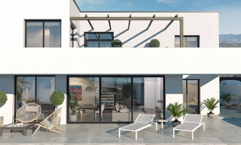 - Fully equipped sliding wardrobes and dressing rooms.- Production of domestic hot water through a heat pump system with a 100L accumulator tank, with the support of solar panels on the roof.- High-grade electrical installation 9.2kw.- Installation of air conditioning through ducts with machines included.- Minimalist design kitchens, fully equipped with island, furniture and appliances included.- Private pool with lighting and beach area with pavement or artificial grass.- Fully customisable multipurpose basement, depending on the model with a garage area for a vehicle and pre-installation for an electric vehicle.Villas is located in a privileged environment on the Costa Blanca, in an elevated area at the foot of the mountains, surrounded by nature and other similar urbanisations, with excellent views of the sea and its surroundings. Very well connected by road with the nearby town of Finestrat, 10 minutes by car from shopping censers, the A7 motorway, the beaches and the nearby towns of Benidorm and Villajoyosa, and 30 minutes from the city of Alicante and its international airport.