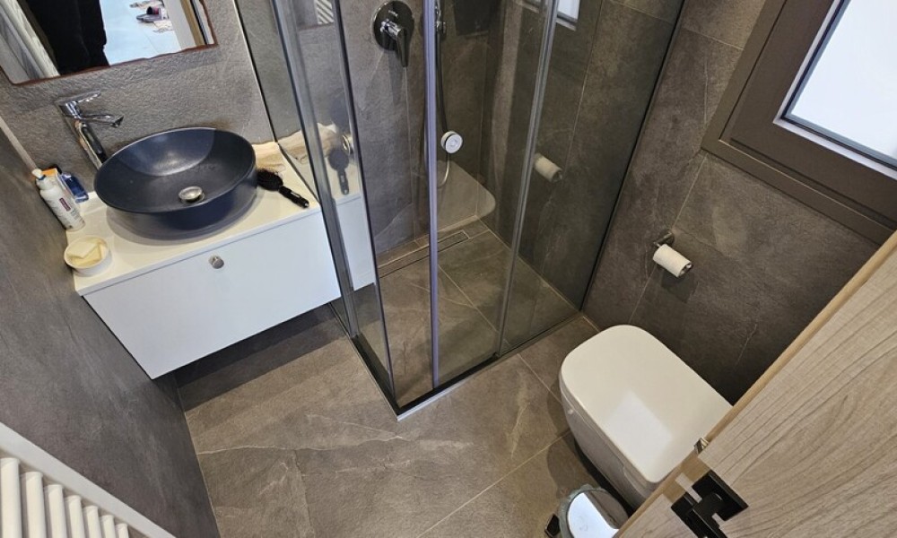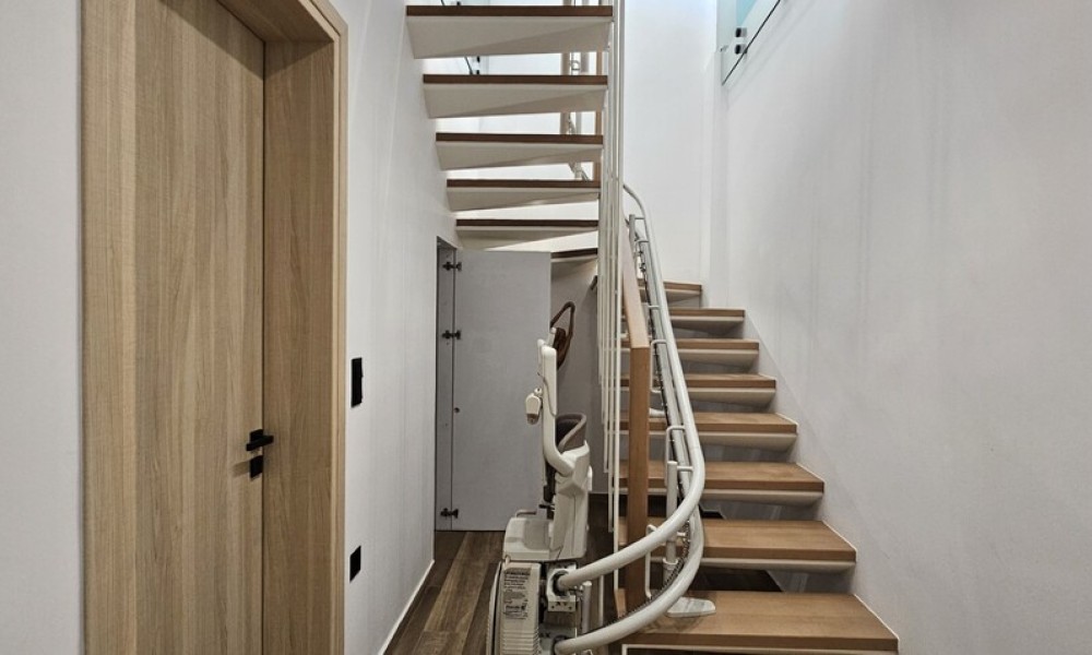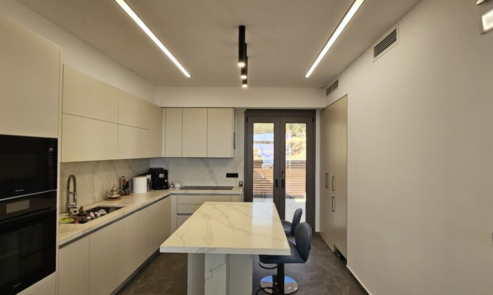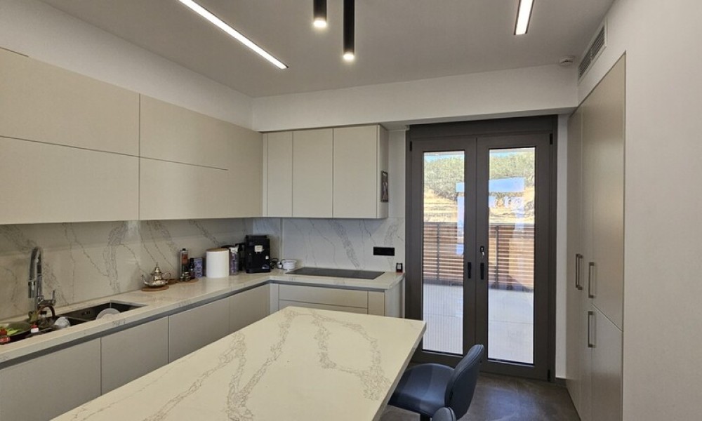 1st floor consists of living room with kitchen, one shower WC, one storeroom. A magnificent view of the city, the sea, the mountain, the forest opens up from the windows. There are: solar panels for water heating, air conditioning, heating. The owners will be leaving the furniture with the sale. Building has an elevator. There is an alarm system installed. Extras included with the property: parking space, garden. The property boasts a swimming pool of private use.