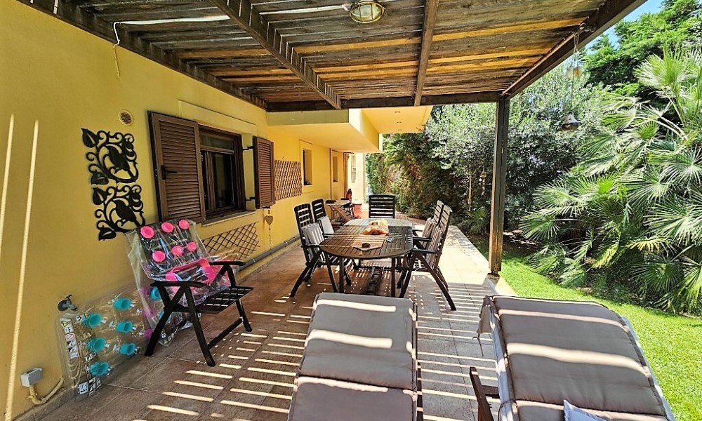 A magnificent view of the city, the sea, the mountain, the forest opens up from the windows. There are: solar panels for water heating, a fireplace, air conditioning, awnings, heating. There is an alarm system installed. Extras included with the property: parking space, garden. The property boasts a swimming pool of private use.