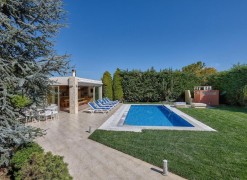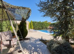 1st floor consists of 3 bedrooms, 2 bathrooms. A magnificent view of the city, the mountain, the forest opens up from the windows. There are: solar panels for water heating, a fireplace, air conditioning, heating, a barbecue area. The owners will be leaving the furniture with the sale. There is an alarm system installed. Extras included with the property: parking space, garden. The property boasts a swimming pool of private use.