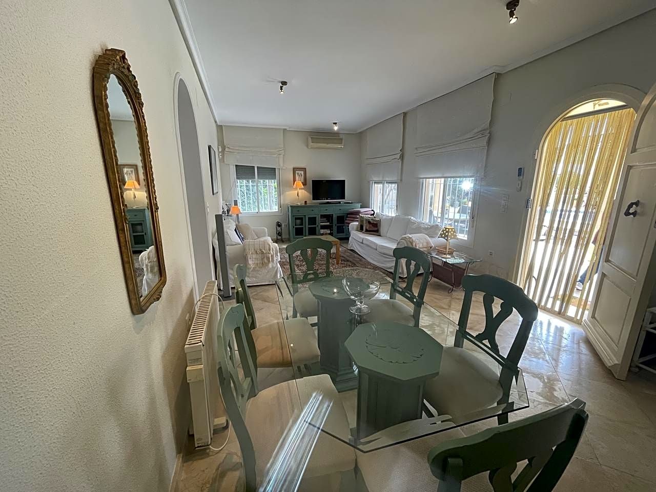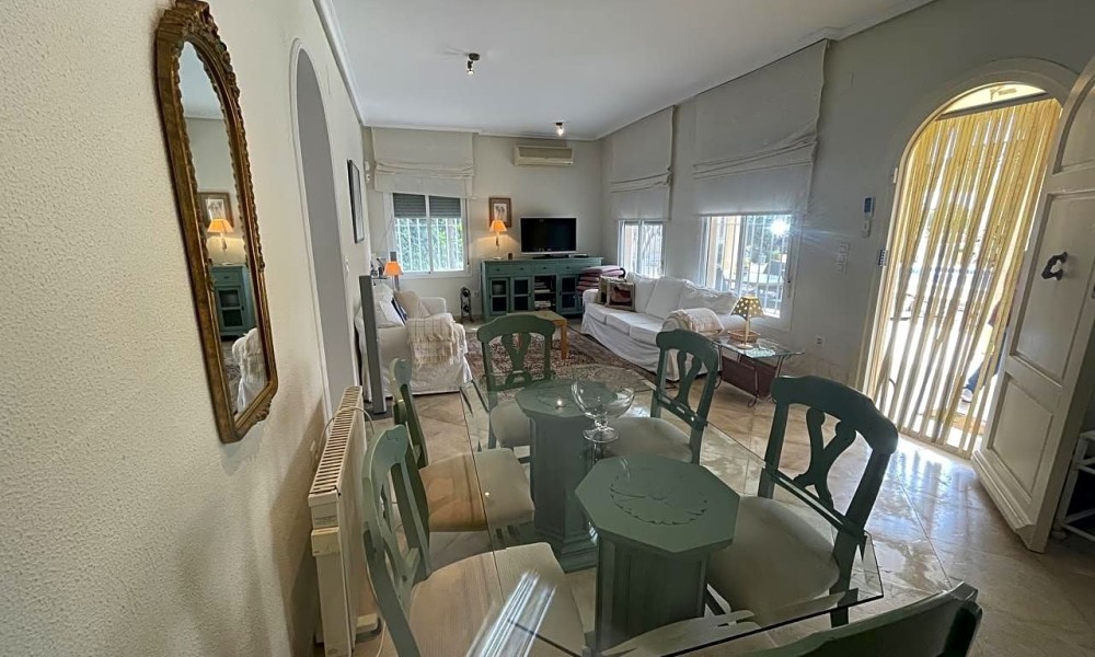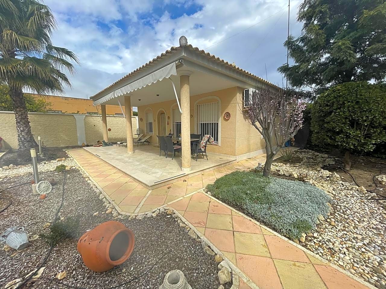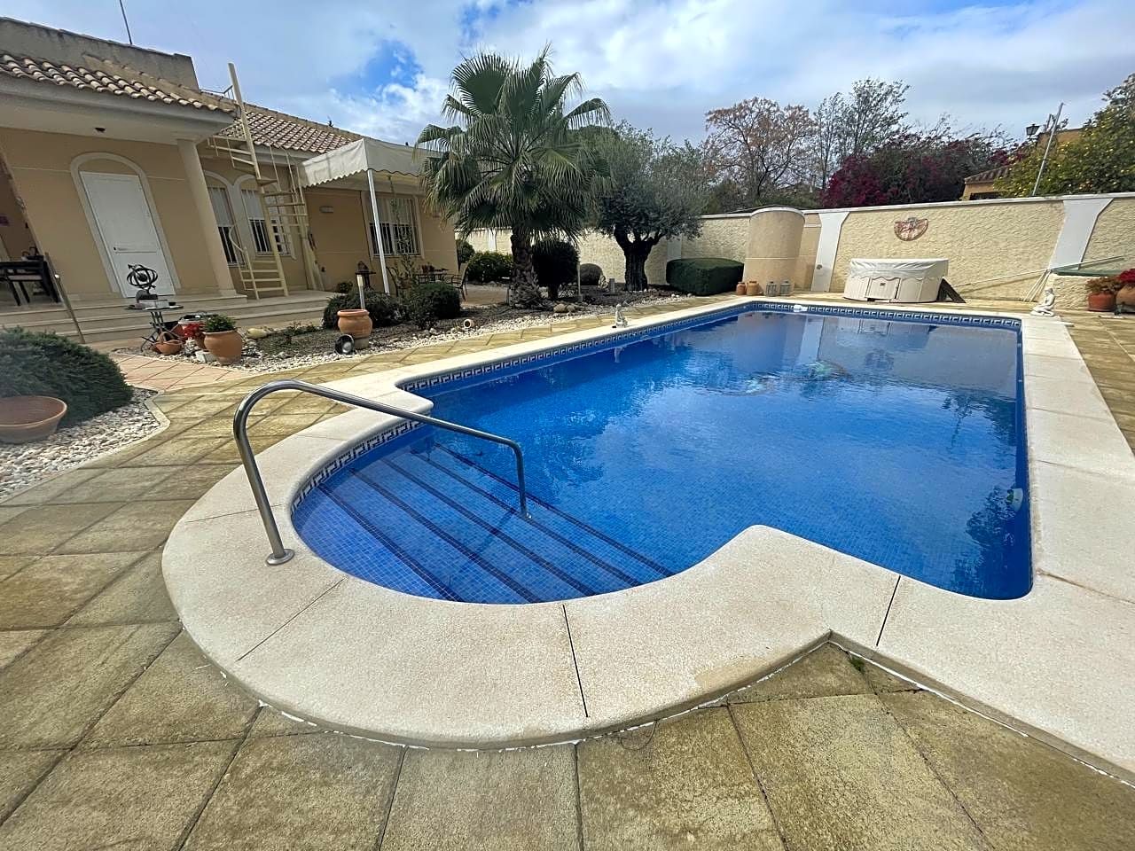Beautiful villa made up of three individual Mediterranean-style houses located on a 1,585 m2 plot, the main house, the guest house and the service house, which can also be another guest house, a lifestyle house in Hinojos, Located in the Las Animas Urbanization, just a 10-minute walk from the town center. Urbanization Las Animas is a small community of Spanish, German, Dutch, French and other European clients, located in the Coto Doñana pre-park, in a very quiet area but at the same time close to all services, shops and a Magnificent quality of restaurants and bars, approximately twenty minutes from Seville airport, twenty-five from Matalascañas Beach and fifteen minutes from Coto Doñana and El Rocio.FIRST HOUSE: We will talk about the “MAIN HOUSE WITH FIREPLACE”. This and the other villas were built in 2003 with very high quality, perfect distribution and large spaces in all parts of the house. It has an entrance hall, dining room, two bedrooms and two full bathrooms, one of them with a Jacuzzi cabin. A true family home with all the charms, where everyone will be delighted to live. At the Hall level of the house we have an elegant, simple, bright entrance, giving way to the magnificently sized living room giving access to the bedroom area through a short corridor and the bathrooms. A beautiful kitchen on the right side with a laundry room – pantry leading to the double terrace, of majestic dimensions with views of the garden, pool and an outdoor toilet with separate shower and Jacuzzi that will delight any time of the year with its water. hot. The whole house has independent Air Conditioning in two wings of the house to be put to the interest of the owner. It also has all the parts Calor for high quality radiators.SECOND HOUSE: The “CHAMING GUEST HOUSE”.
