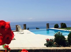 A magnificent view of the city, the sea, the mountain opens up from the windows. There are: solar panels for water heating, air conditioning, heating. The owners will be leaving the furniture with the sale. Extras included with the property: parking space, garden. The property boasts a swimming pool of private use.