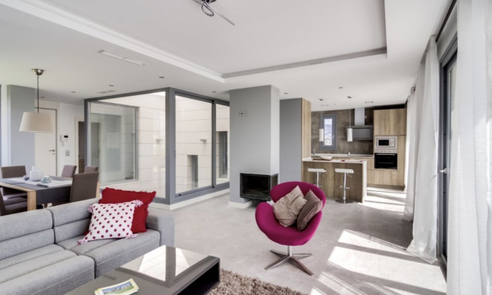 Stunning selection of 18 front line golf detached villas located inside the exclusive Cerrado del Águila Golf course, on the Mijas Costa. These super exclusive properties are just 3.7 km from the nearest beach and even closer to the largest shopping mall on the Costa del Sol where you can find all restaurants, shops, Cinema’s and supermarkets among other amenities. The villas are very private, with each home facing south with spectacular sea, mountains and golf views. These fantastic villas are split over three levels, briefly comprising of, at entrance level, a large hallway leading first to a guest toilet, the dining area, a very spacious lounge and separate modern fully fitted kitchen with top quality appliances – here you have a bespoke option to have this entire level constructed in an open plan design, connecting the dining room, lounge and kitchen areas together. The lounge and kitchen areas will be directly connected with the super large private terrace through modern floor to ceiling windows. The private garage will be also located at this level.