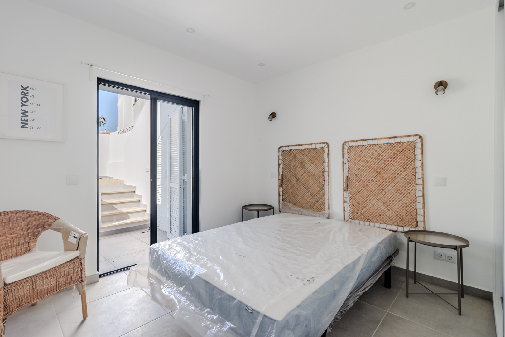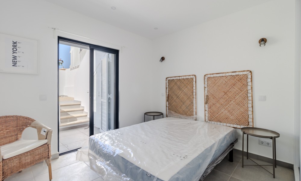 The ground floor offers a spacious living and dining area, seamlessly connected to the brand-new kitchen, making it perfect for hosting gatherings. The two double bedrooms, including the master en-suite, provide comfort and privacy, with one overlooking a private terrace at the back of the villa and the other overlooking the pool south facing terrace. The family bathroom adds convenience and completes the ground floor layout.The upper level of the villa is independent and accessible by the back terrace staircase, this offers flexibility, with another good-sized room and a separate entrance, along with its own bathroom.