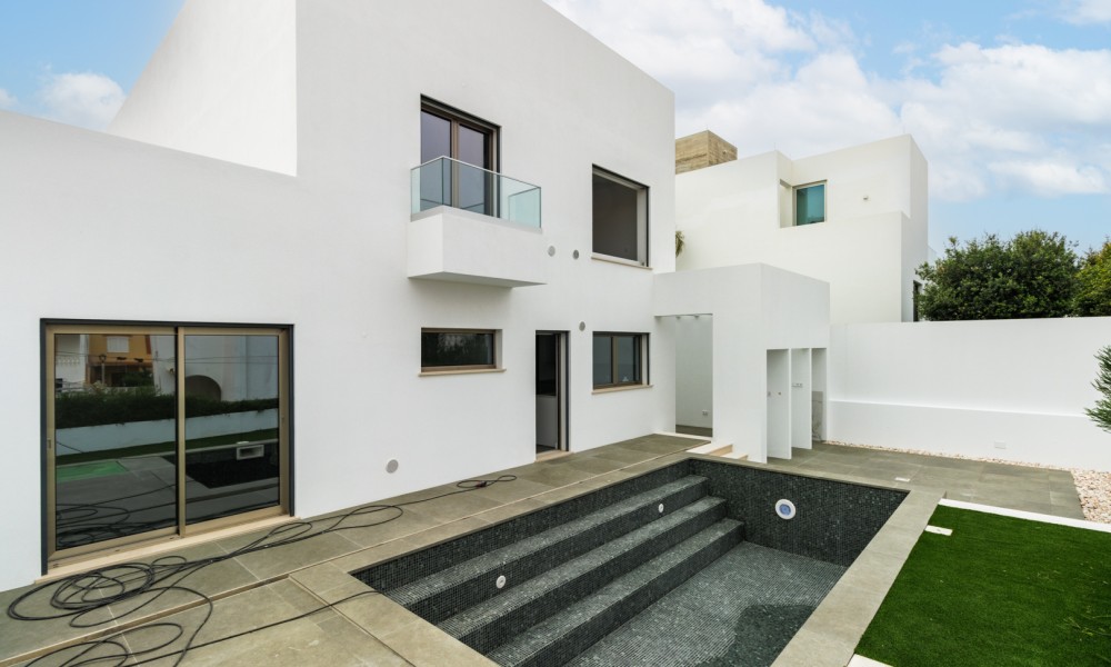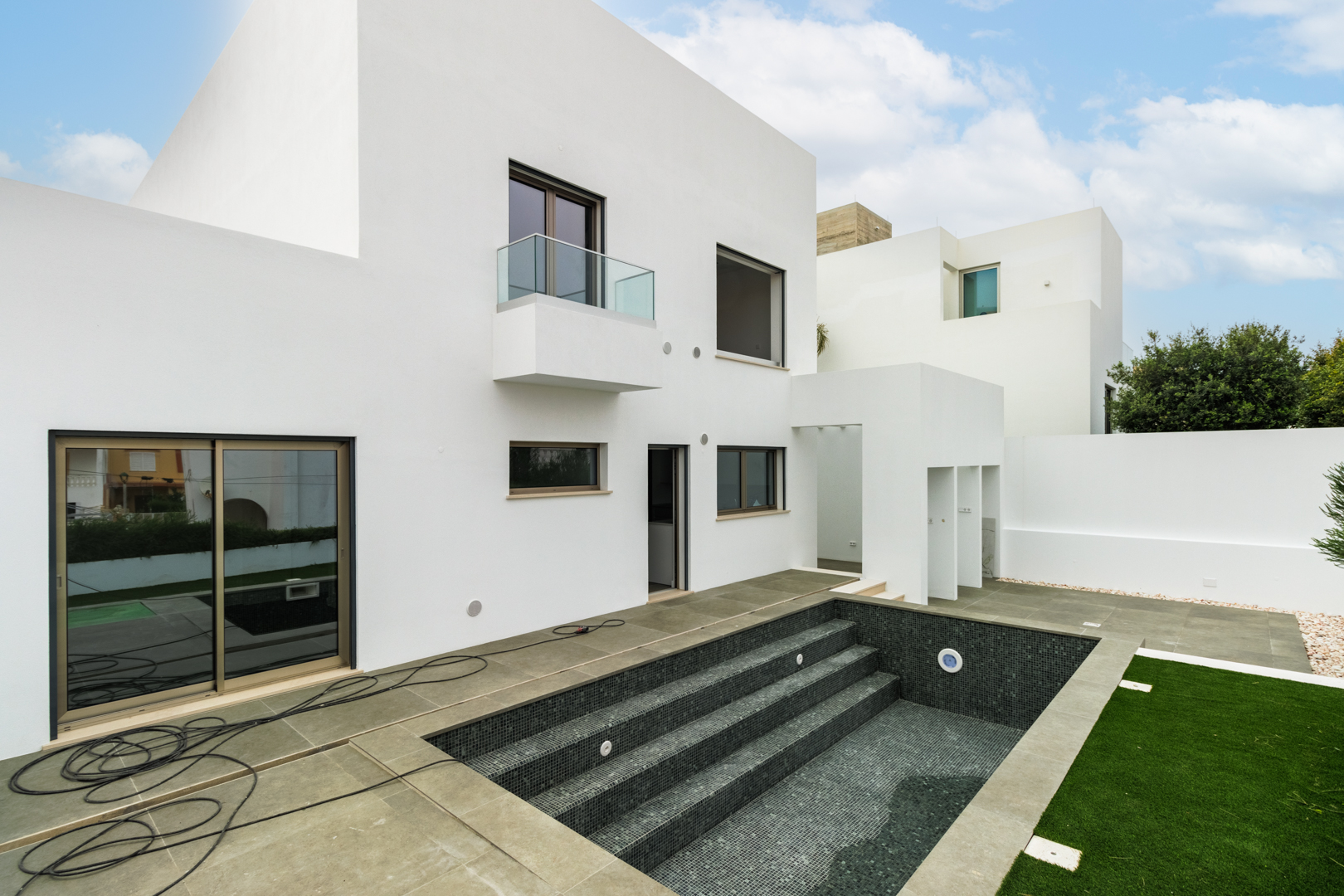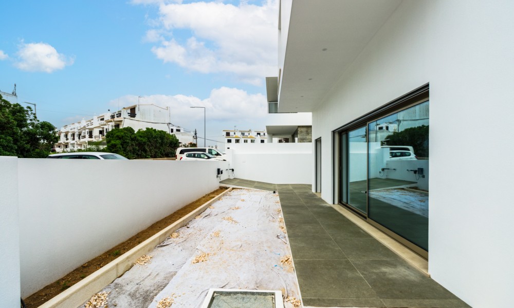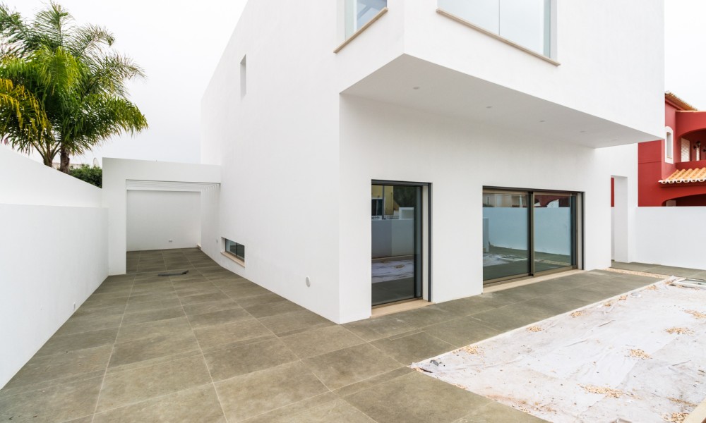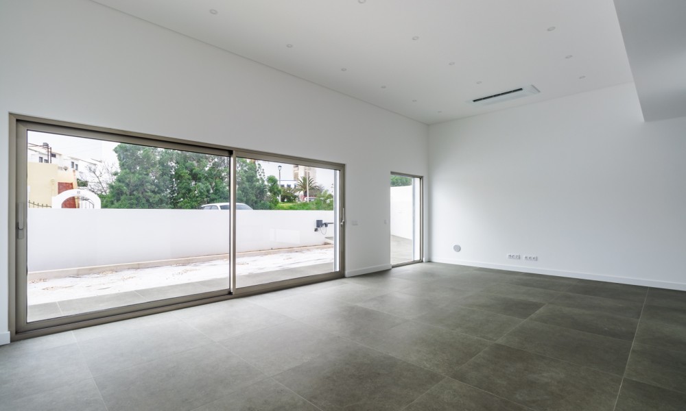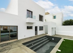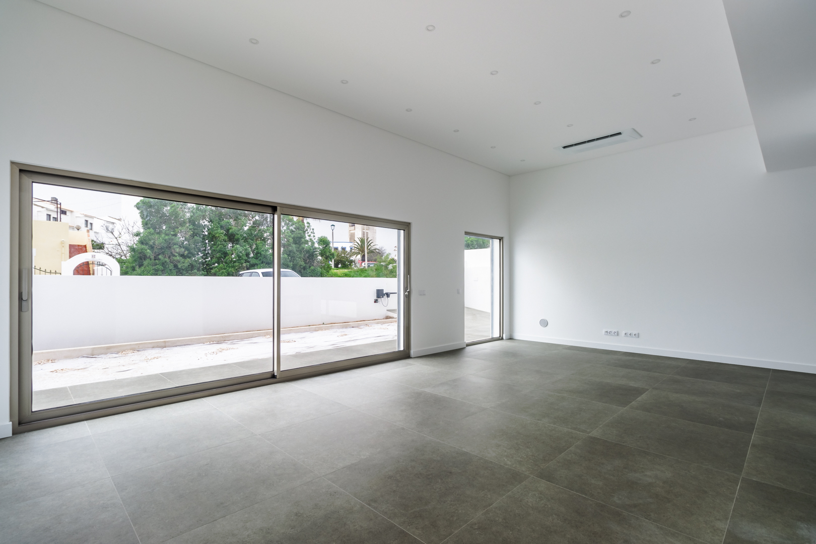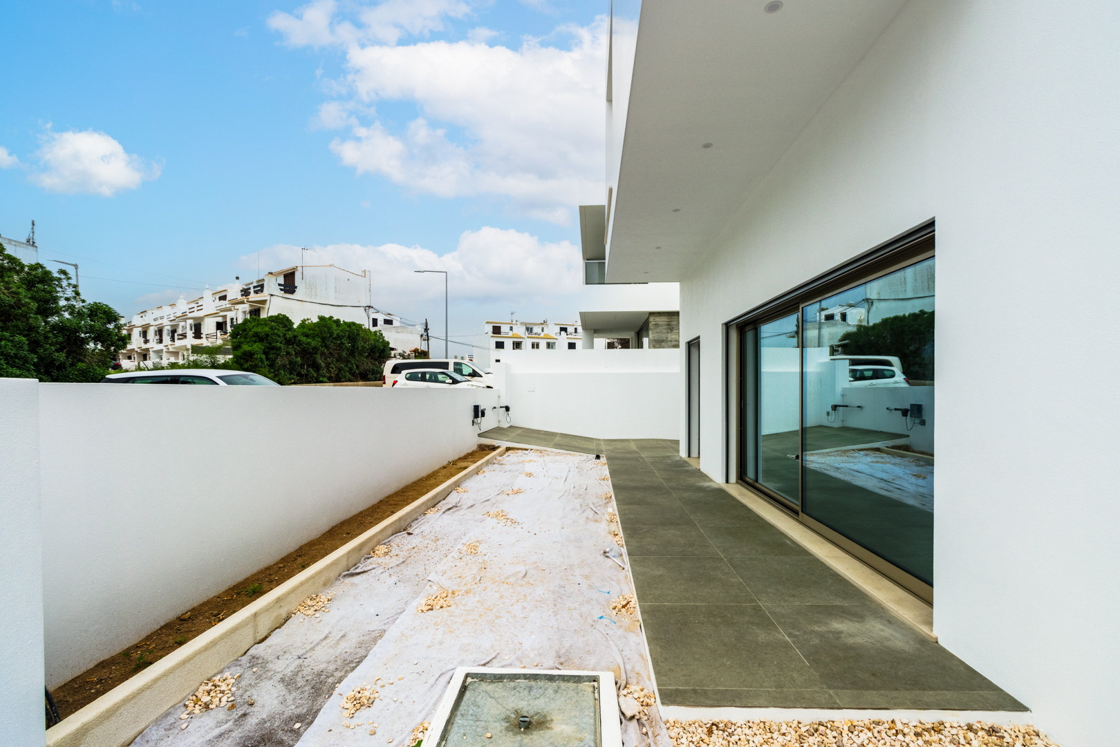 This contemporary 4 bedroom villa is situated in the Torraltinha area of Lagos, and offers stylish living just minutes from Porto de Mós beach and walking distance from all amenities.Stepping through the front garden, you enter into a bright and spacious living and dining area which features a double-sided fireplace, creating a cosy atmosphere. The fully fitted modern kitchen opens directly onto the pool area, making outdoor dining simple and convenient. This level also includes an en-suite bedroom with fitted wardrobes, a guest WC, and useful understair storage.A sleek glass and wood staircase leads up to three additional bedrooms. The master suite includes a private balcony with distant sea views; a walk-in dressing area, and a stylish en-suite bathroom.