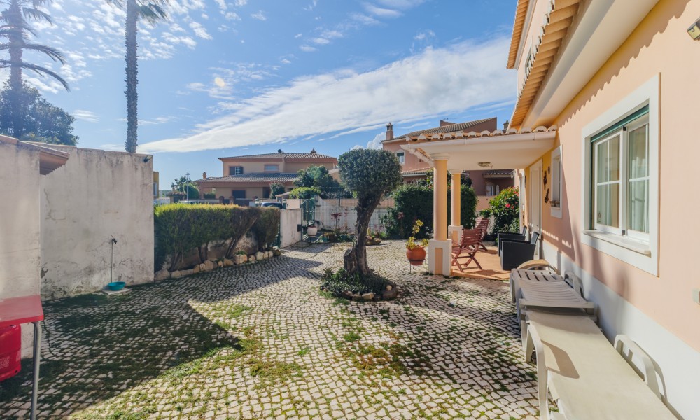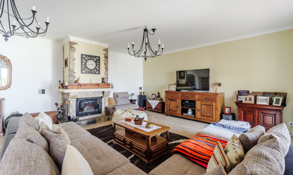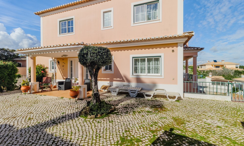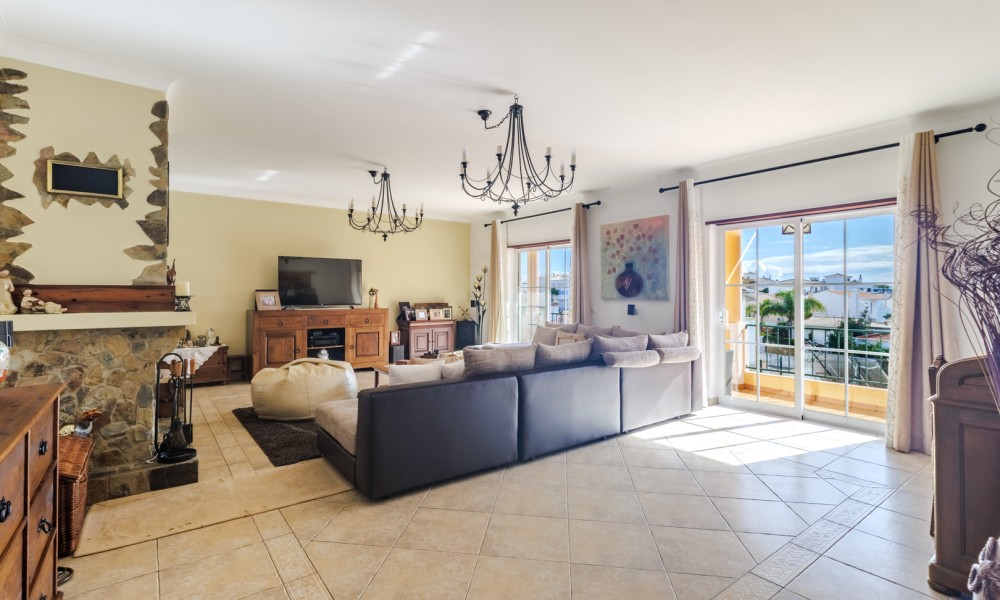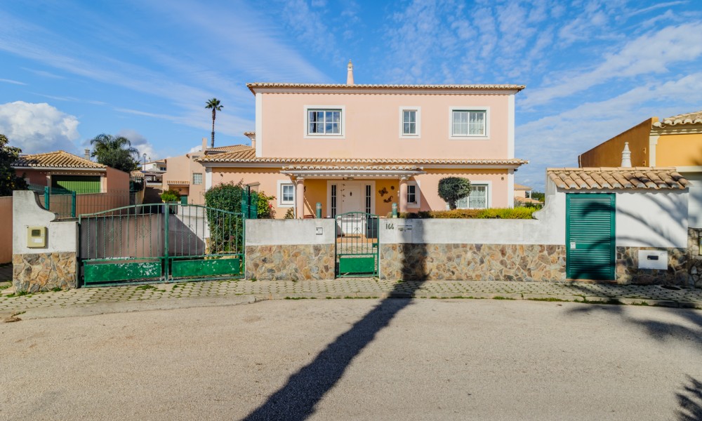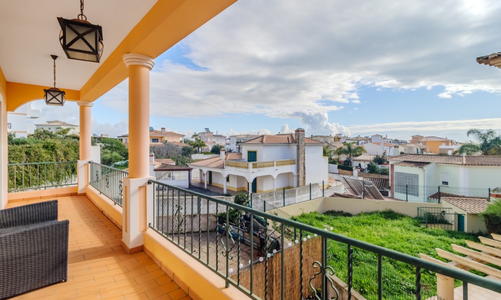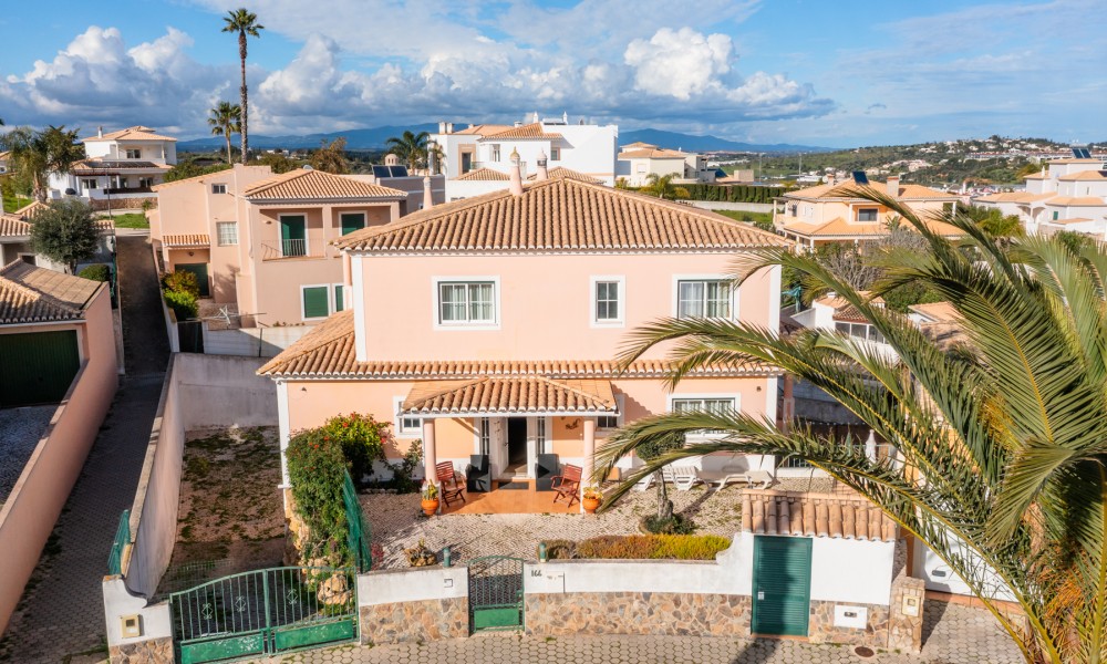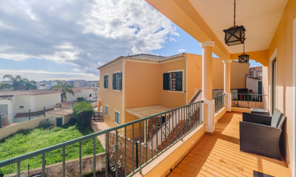 This stunning 5 bedroom villa spans across three levels and is perfectly situated in a tranquil residential area, just a 15-minute walk to Lagos Old Town and all amenities. Offering generous living spaces, multiple terraces, and incredible potential, this home is ideal as a permanent residence, a holiday retreat, or a fantastic rental investment.A charming front garden welcomes you into the home, leading to a spacious entrance hall with access to the expansive living room. A beautiful feature fireplace provides warmth throughout the ground floor and extends its cosiness to two of the upstairs bedrooms. The south-facing balcony off the living room enjoys sunshine throughout the day, making it the perfect space to relax.The fully equipped kitchen is thoughtfully designed with a large pantry and flows seamlessly into the dining area, which opens onto a spacious balcony—ideal for outdoor dining and entertaining. Also on this level is a guest bedroom, currently used as an office, and a small guest bathroom with a shower.Upstairs, you’ll find four generously sized bedrooms, all with built-in wardrobes.
