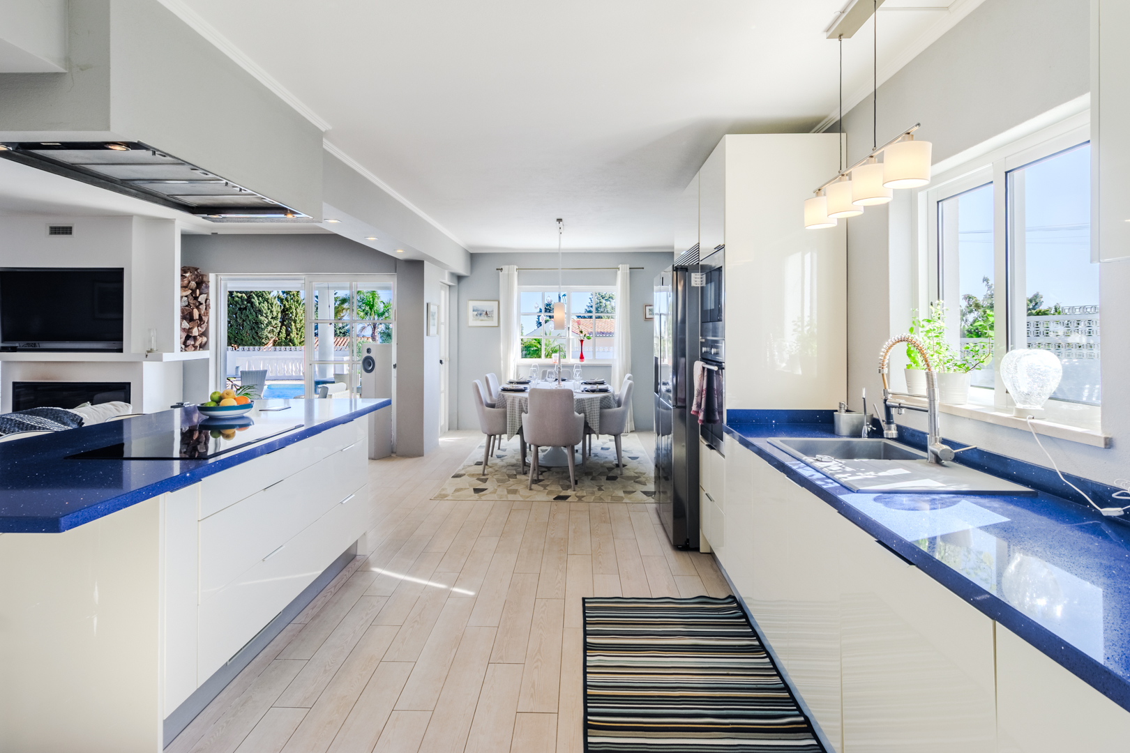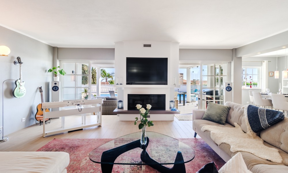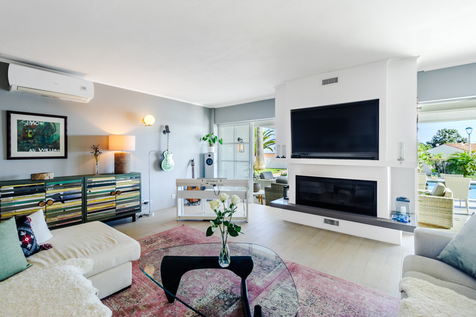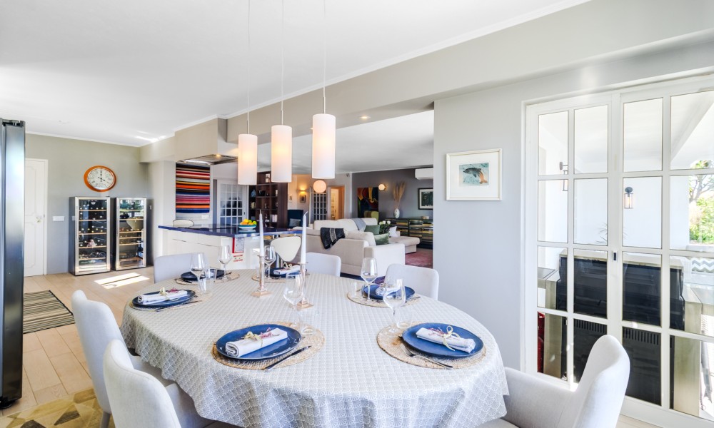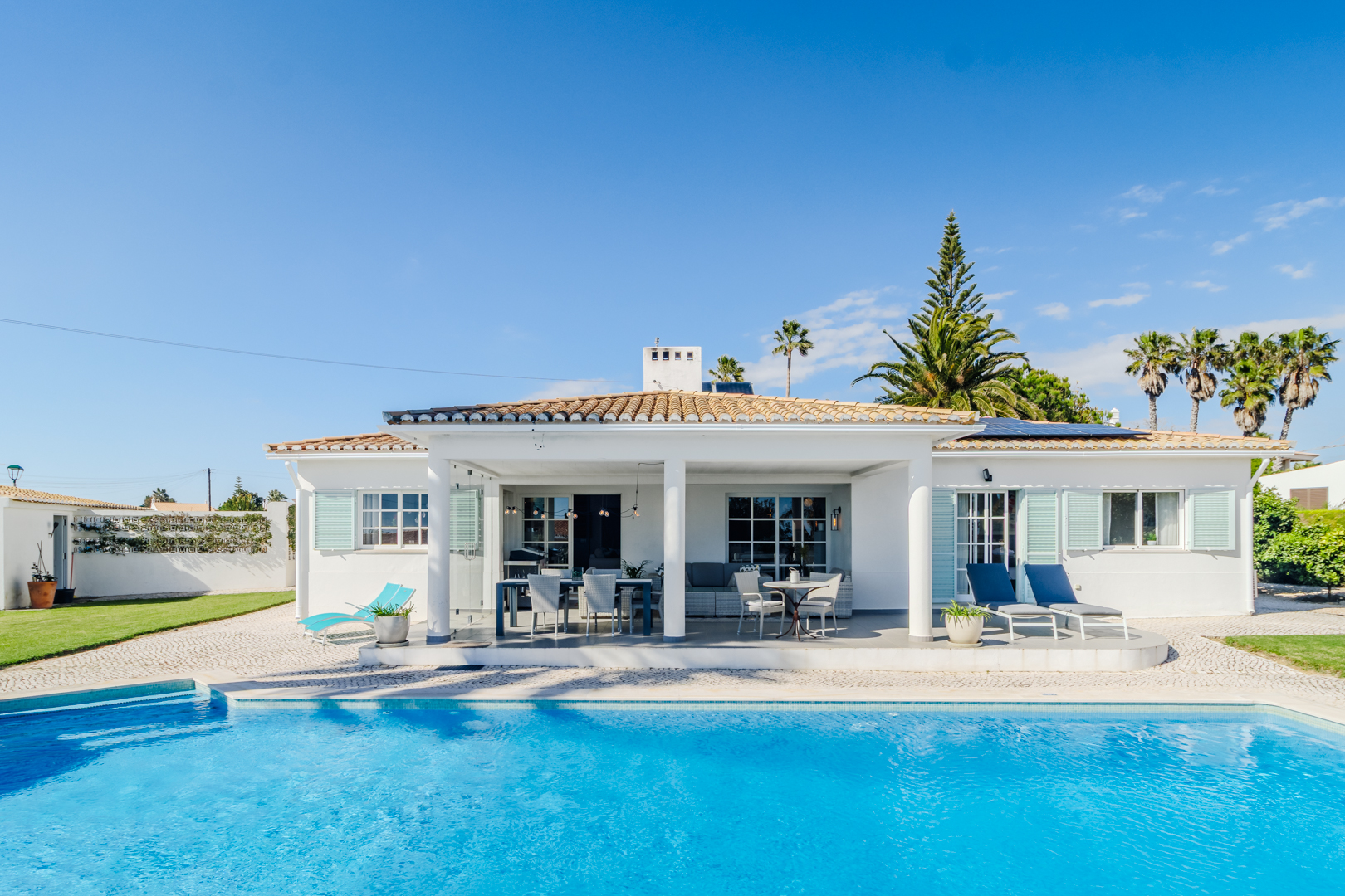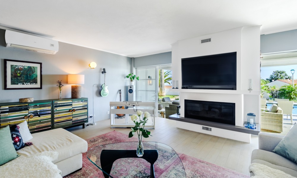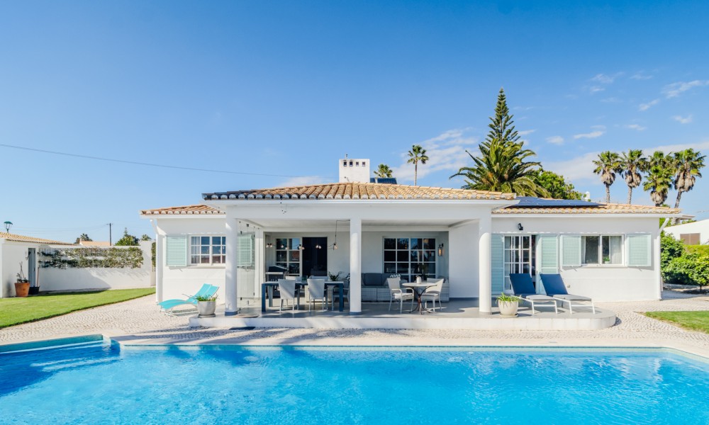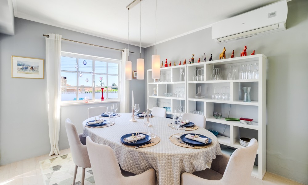 This beautifully renovated villa offers impressive spaces and a seamless blend of indoor and outdoor living. Set in a peaceful neighbourhood near Praia da Luz beach, it ensures complete privacy with no direct overlooking neighbours.A welcoming entrance hall leads into the bright, open-plan living area, where large windows frame views of the garden. The stylish kitchen features a central island with an elegant countertop, flowing into the dining and lounge spaces. A modern fireplace provides controlled heat distribution via remote control, adding both comfort and character.The living area extends onto a covered terrace, slightly elevated above the heated 12x6m swimming pool, allowing for year-round enjoyment. At the rear of the kitchen, a well-organized laundry room and a guest toilet add convenience.A sliding door separates the sleeping area, creating a private retreat. Two spacious bedrooms, both with built-in wardrobes, share a modern family bathroom.