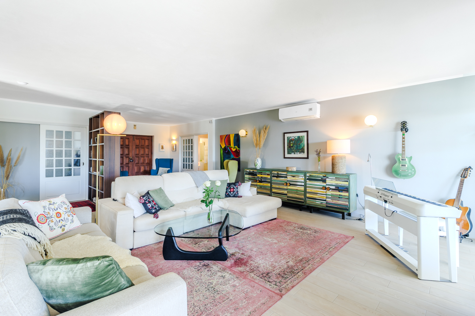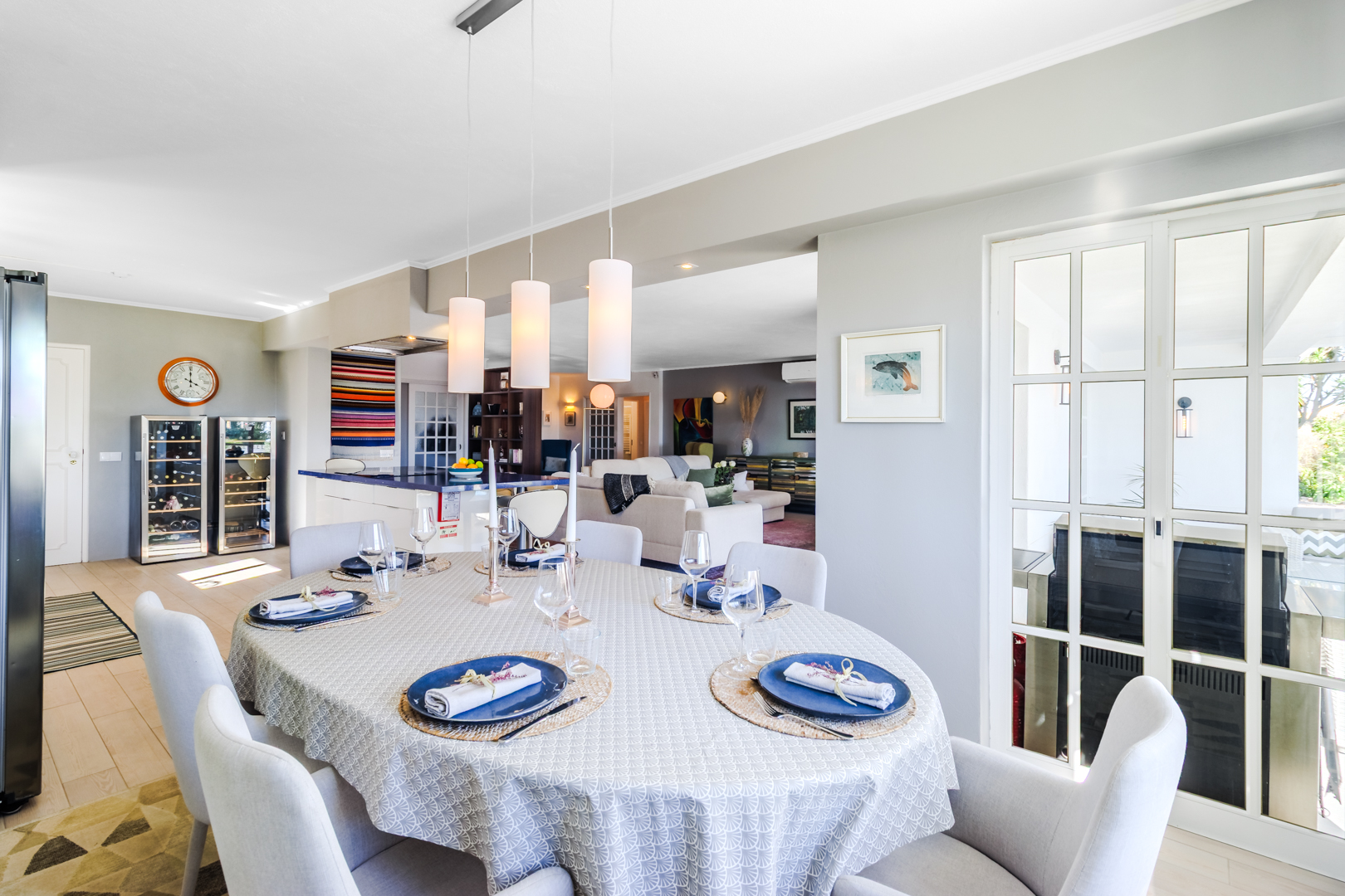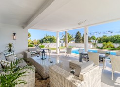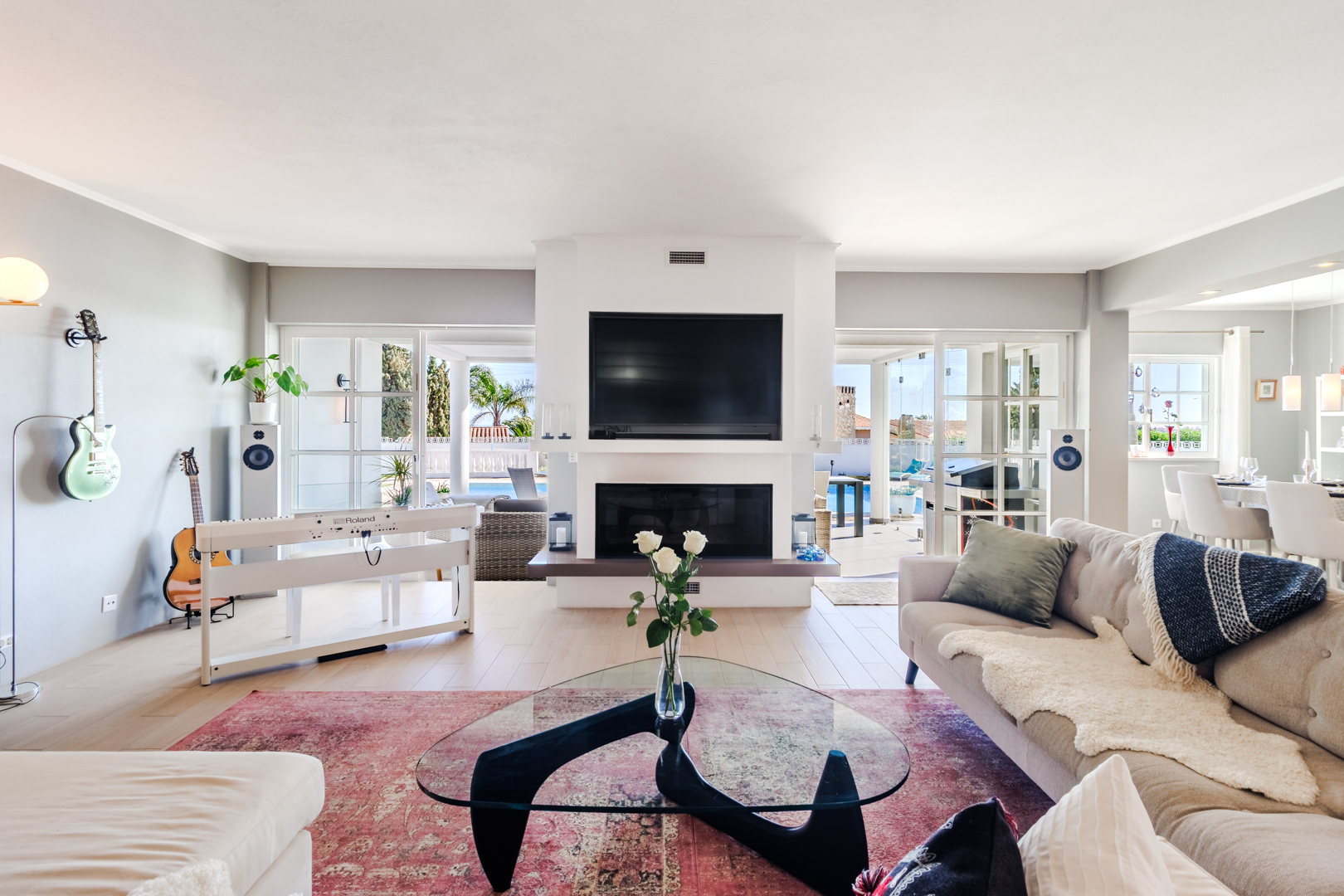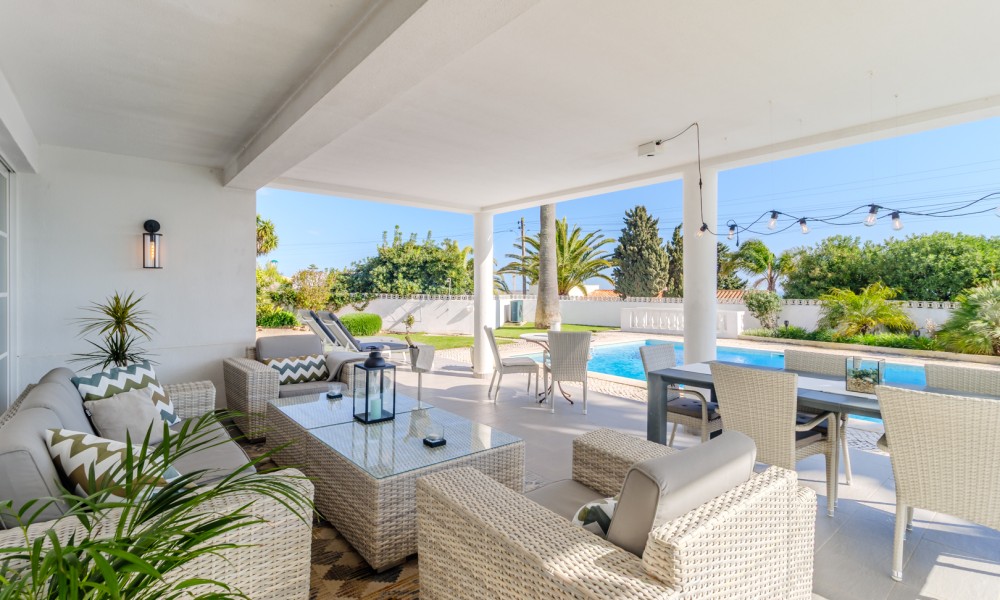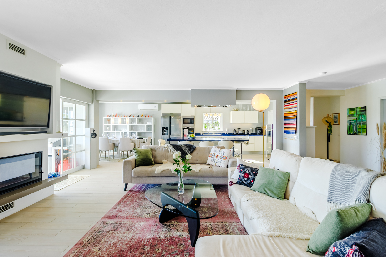 This beautifully renovated villa offers impressive spaces and a seamless blend of indoor and outdoor living. Set in a peaceful neighbourhood near Praia da Luz beach, it ensures complete privacy with no direct overlooking neighbours.A welcoming entrance hall leads into the bright, open-plan living area, where large windows frame views of the garden. The stylish kitchen features a central island with an elegant countertop, flowing into the dining and lounge spaces. A modern fireplace provides controlled heat distribution via remote control, adding both comfort and character.The living area extends onto a covered terrace, slightly elevated above the heated 12x6m swimming pool, allowing for year-round enjoyment. At the rear of the kitchen, a well-organized laundry room and a guest toilet add convenience.A sliding door separates the sleeping area, creating a private retreat. Two spacious bedrooms, both with built-in wardrobes, share a modern family bathroom.