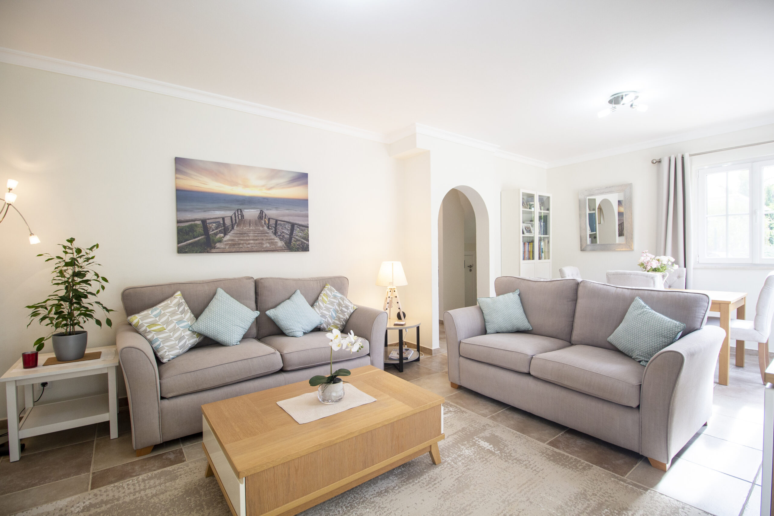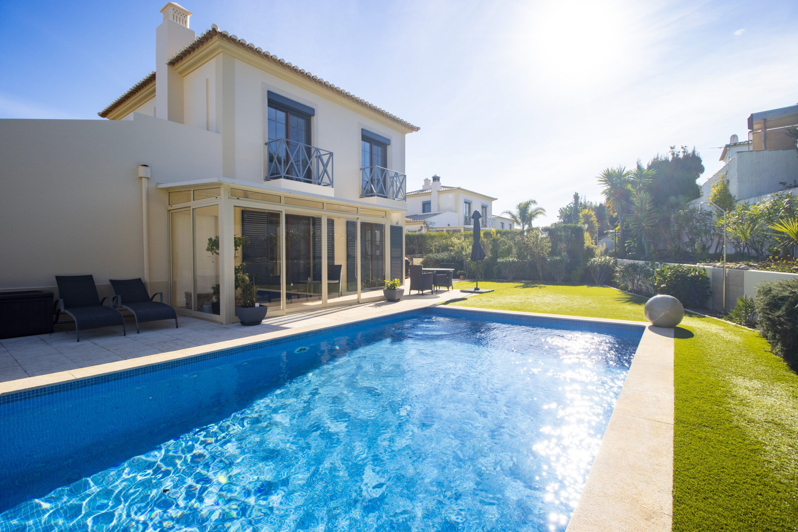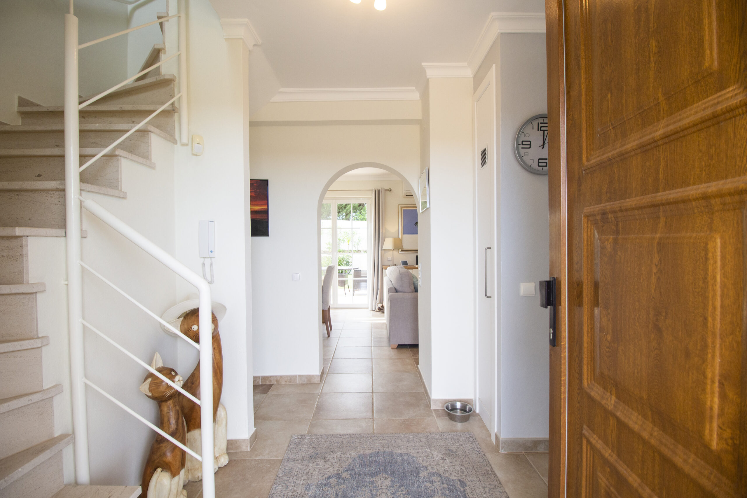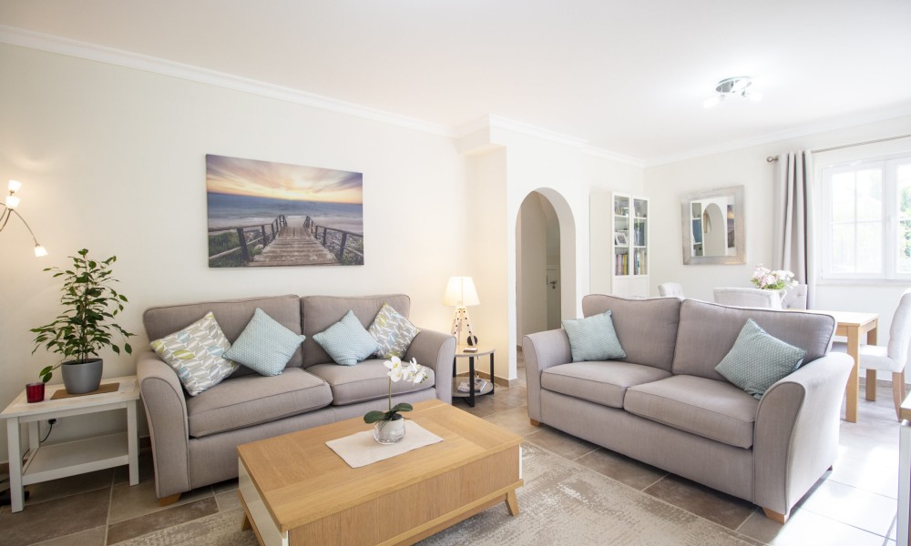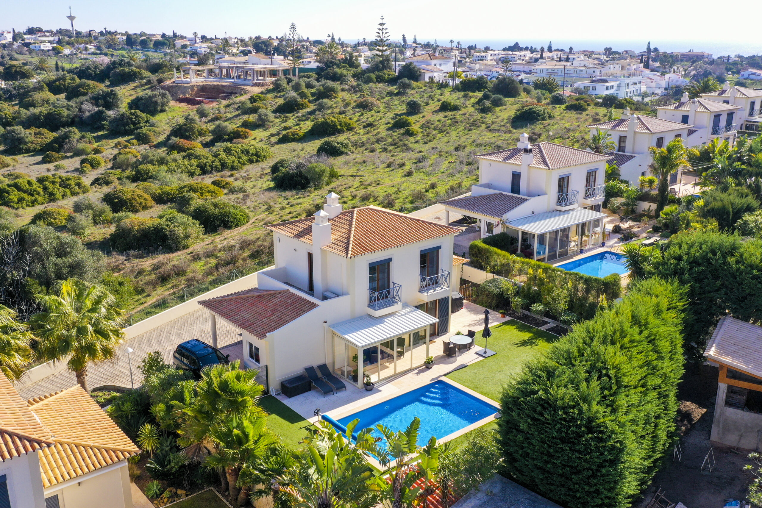 This charming and beautifully maintained 2+1 bedroom villa is situated in an elevated position in a quiet residential area of Luz. Set on two floors, it is in a small gated community and is only a 7 minute drive from the centre of the town.The hallway leads to a beautiful lounge/dining area with a wonderful view of the terrace and pool area. There is also a wood burning fireplace. There is a fully equipped kitchen just off the hallway. On this level there is also a guest bedroom which could also be used as an office. This bedroom is served by a shower and utility room next door. There is also a guest toilet. On the first floor are two further bedrooms – the master bedroom has a balcony with stunning views of the surrounding countryside. There is also a modern bathroom and separate guest toilet on this level. Outside, the villa has a beautiful terrace and well maintained garden area which is very private.