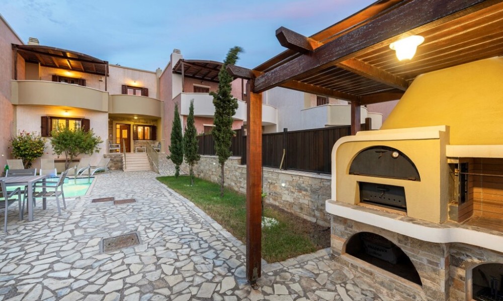 1st floor consists of 3 bedrooms, one bathroom, one shower WC. A view of the city, the sea opens up from the windows. There are: solar panels for water heating, a fireplace, air conditioning, heating, a barbecue area. The owners will be leaving the furniture with the sale. Extras included with the property: garden. The property boasts a swimming pool of private use.