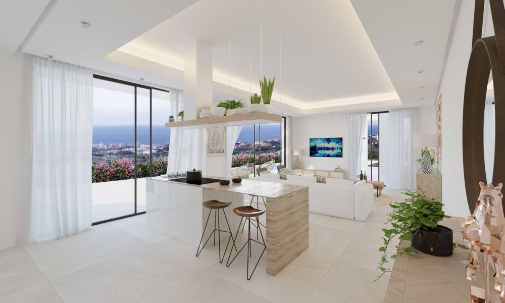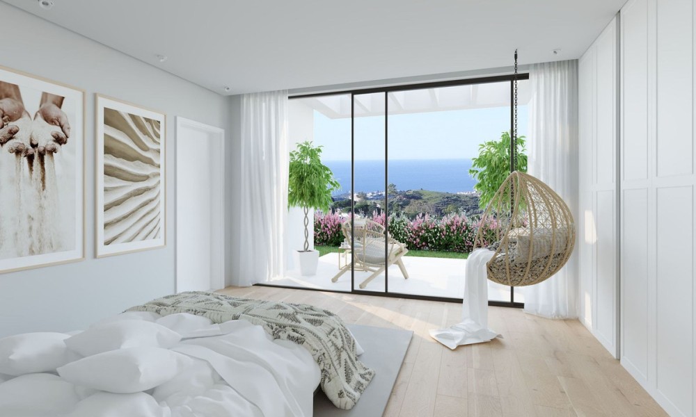 Exclusive development of four bedroom villas boasting spectacular views, contemporary designs and the latest home technology. These villas have exceptional views of the mountains and the sea. The villa have been designed to make the most of the interior living areas, with an open plan living room dining room and kitchen that have over-sized windows that open to seamlessly integrate the sunny terraces with the interior, making it a perfect place to relax and enjoy the views. On the floor you also find a guest en-suite bedroom and separate toilet.