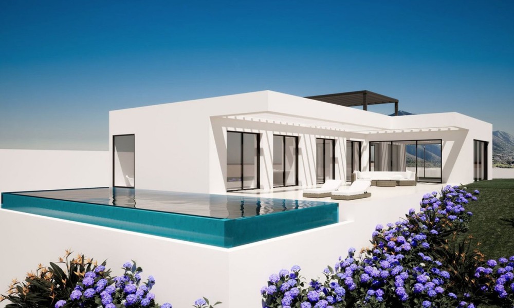 Truly stunning independent, energy-efficient and sustainably built luxury villa located within the sought-after area of Cerros del Aguila, Mijas. Built-in a unique contemporary design, featuring the highest quality fittings, this three-bedroom, two-bathroom modern, spacious, L-shaped single-level villa has a built area of 174m² plus 100m2 of sunny terraces, plus a large private car parking area. The floor-to-ceiling, energy-efficient windows allow you to enjoy the beautiful views over the Mijas mountains and the entire city of Fuengirola. You can enjoy sunlight in all three bedrooms, and a spacious open-plan living room. Each of the rooms lead directly onto the terrace, where you can enjoy a beautiful landscaped garden and your own private swimming pool.